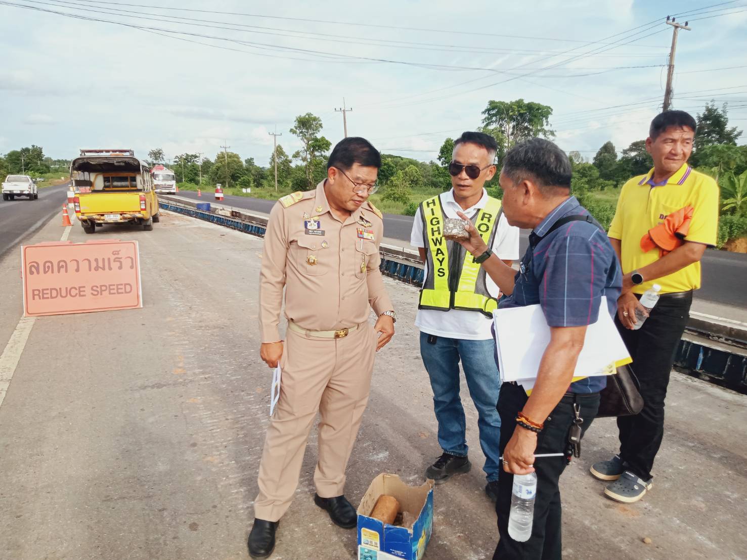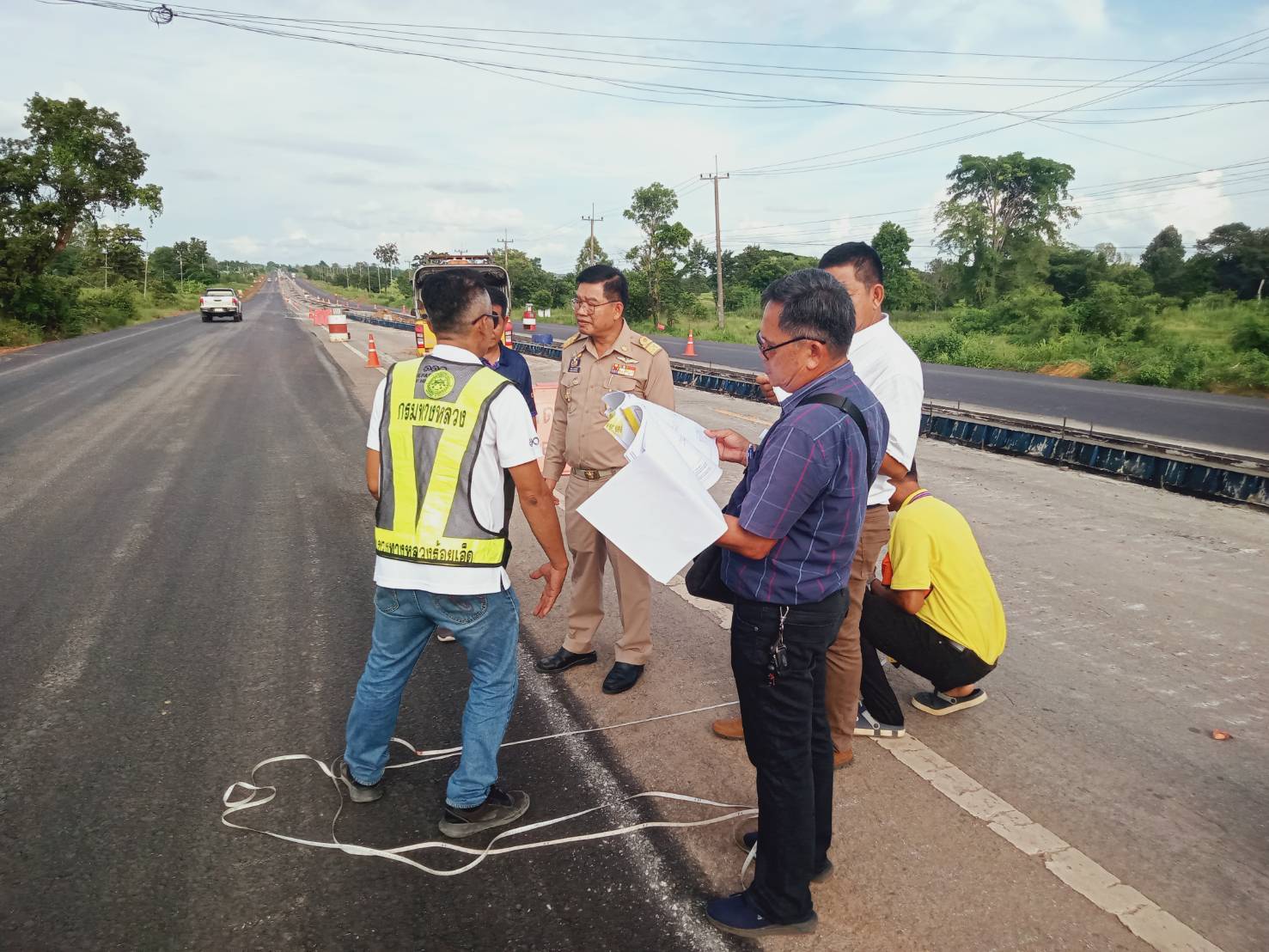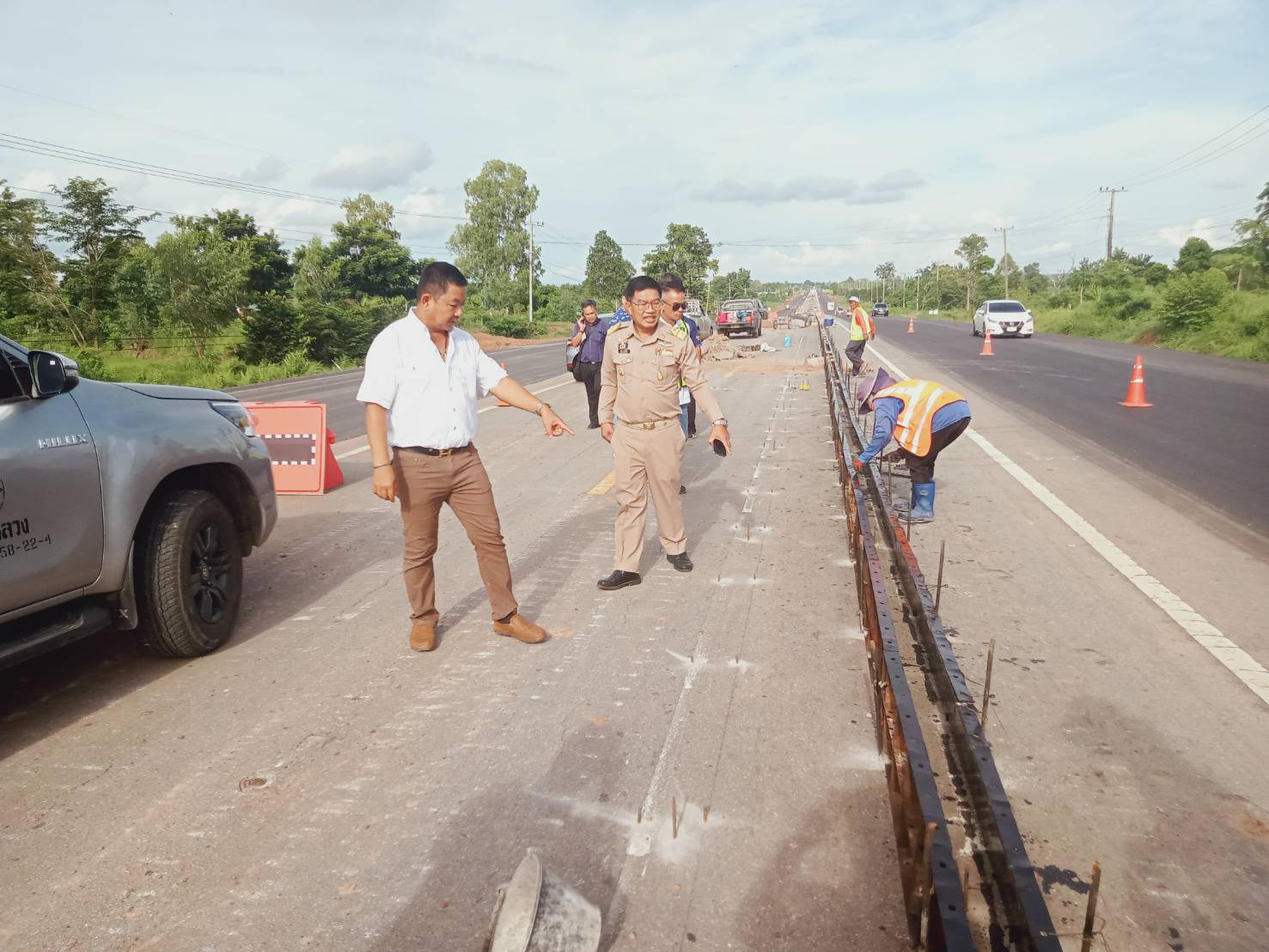 นายสนอง ดลประสิทธิ์ รองผู้ว่าราชการจังหวัดร้อยเอ็ด ประธานตรวจรับพัสดุ ,นายมงคล แสนวงษา ผู้อำนวยการแขวงทางหลวงร้อยเอ็ด กรรมการตรวจรับพัสดุ ,นายสถิต คำพิชิต รองผู้อำนวยการแขวงทางหลวงร้อยเอ็ด ฝ่ายปฏิบัติการ และนายสมัย คะนะมะ รองผู้อำนวยการแขวงทางหลวงร้อยเอ็ด ฝ่ายวิศวกรรม ผู้ควบคุมงาน ได้ร่วมลงพื้นที่ตรวจรับงาน ตามสัญญาที่ รอ.36/2566 ลงวันที่ 15 กุมภาพันธ์ 2566 ในทางหลวงหมายเลข 2116 ตอน ร่องคำ - โพนทอง ระหว่าง กม.54+150 - กม.56+000 โดยมี ห้างหุ้นส่วนจำกัด เพชรสมวงศ์การโยธา เป็นผู้รับจ้าง