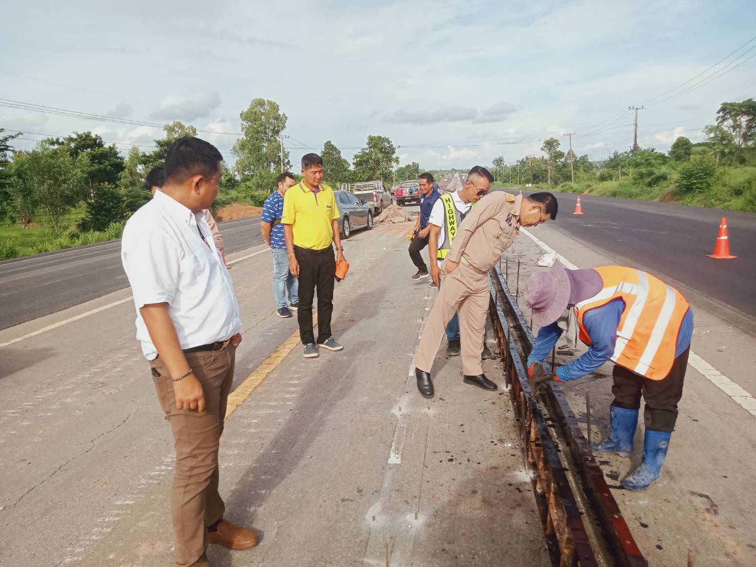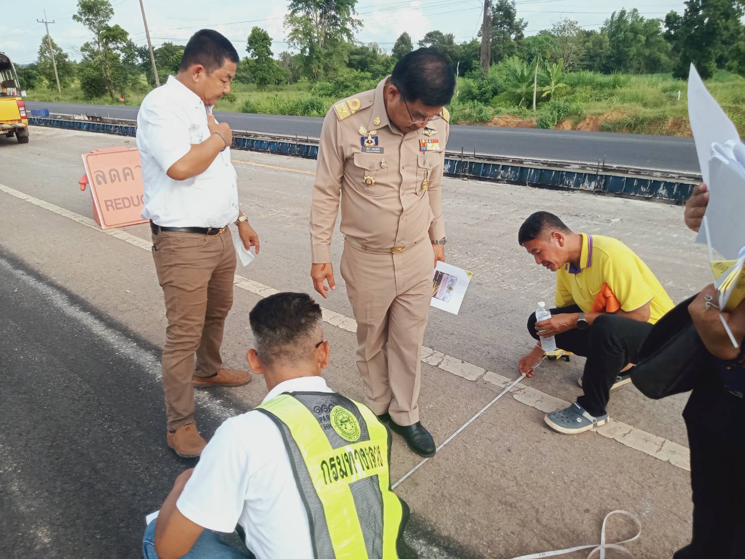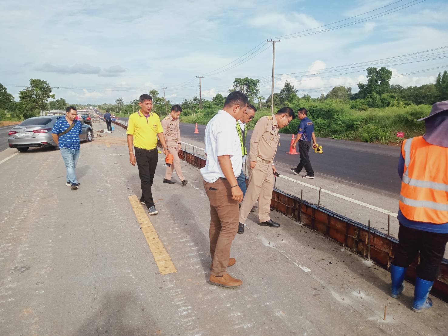 นายสนอง ดลประสิทธิ์ รองผู้ว่าราชการจังหวัดร้อยเอ็ด ประธานตรวจรับพัสดุ ,นายมงคล แสนวงษา ผู้อำนวยการแขวงทางหลวงร้อยเอ็ด กรรมการตรวจรับพัสดุ ,นายสถิต คำพิชิต รองผู้อำนวยการแขวงทางหลวงร้อยเอ็ด ฝ่ายปฏิบัติการ และนายสมัย คะนะมะ รองผู้อำนวยการแขวงทางหลวงร้อยเอ็ด ฝ่ายวิศวกรรม ผู้ควบคุมงาน ได้ร่วมลงพื้นที่ตรวจรับงาน ตามสัญญาที่ รอ.36/2566 ลงวันที่ 15 กุมภาพันธ์ 2566 ในทางหลวงหมายเลข 2116 ตอน ร่องคำ - โพนทอง ระหว่าง กม.54+150 - กม.56+000 โดยมี ห้างหุ้นส่วนจำกัด เพชรสมวงศ์การโยธา เป็นผู้รับจ้าง