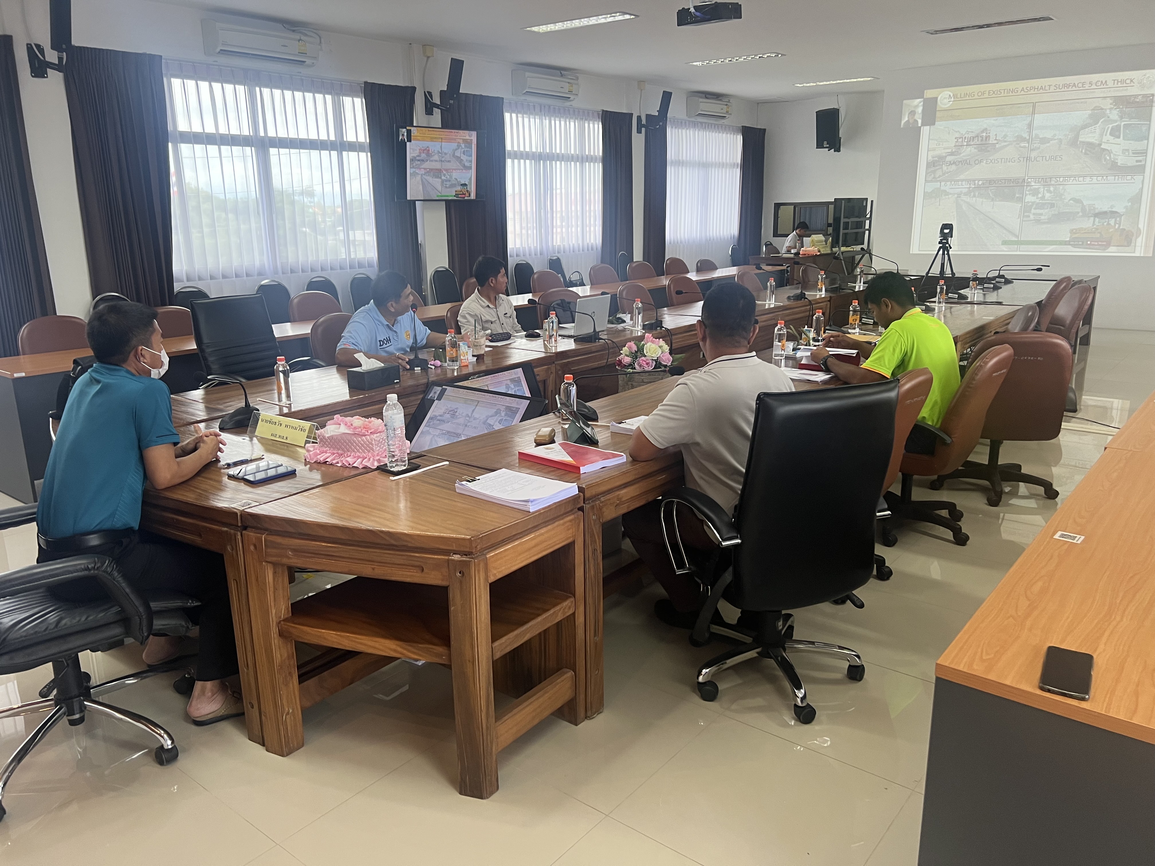 นายจิระพงศ์ เทพพิทักษ์ รองอธิบดีฝ่ายบำรุงทาง ประธานกรรมการตรวจรับพัสดุ ,นายชัยธวัช พรหมวิชัย ผู้อำนวยการสำนักงานทางหลวงที่ 8 (มหาสารคาม) กรรมการตรวจรับพัสดุ ,นายมงคล แสนวงษา ผู้อำนวยการแขวงทางหลวงร้อยเอ็ด กรรมการตรวจรับพัสดุ พร้อมด้วยคณะกรรมการฯ ร่วมตรวจรับงานก่อสร้าง งวดที่ 16 (งวดรองสุดท้าย) โครงการก่อสร้างทางหลวงหมายเลข 215 สาย ร้อยเอ็ด - สุวรรณภูมิ ตอน ร้อยเอ็ด - บ.หนองเม็ก ระหว่าง กม.4+800 - กม.17+160 และ กม.22+000 – กม.24+040 โดยมีบริษัท ยิ่งเจริญก่อสร้างบุรีรัมย์ จำกัด เป็นผู้รับจ้าง ผ่านการประชุมทางไกลด้วยระบบ Zoom Cloud Meeting ณ ห้องประชุมสำนักงานทางหลวงที่ 8 (มหาสารคาม)