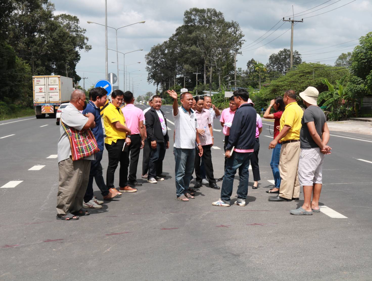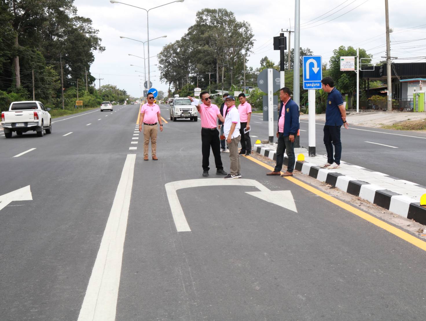 "ร่วมการจัดการมีส่วนร่วม เพื่อหาแนวทางการแก้ไขปัญหา อุบัติเหตุจากการย้อนศร และได้ร่วมลงพื้นที่ตรวจสอบกายภาพทางหลวง ทล.215 ตอน ร้อยเอ็ด - สุวรรณภูมิ ระหว่าง กม.4+800 – กม.6+000 เพื่อร่วมชี้แจงแนวทางการเปิดจุดกลับรถ"