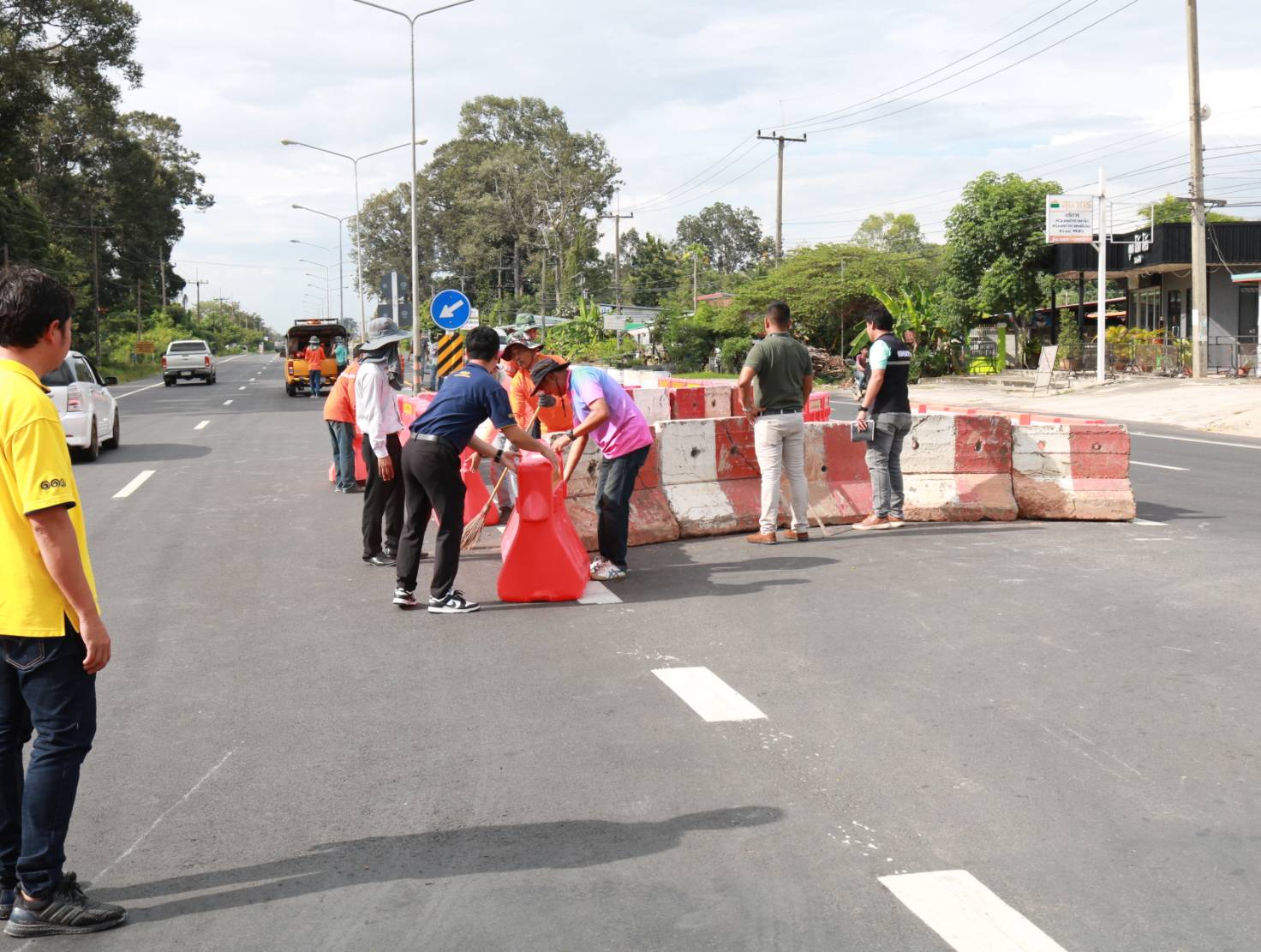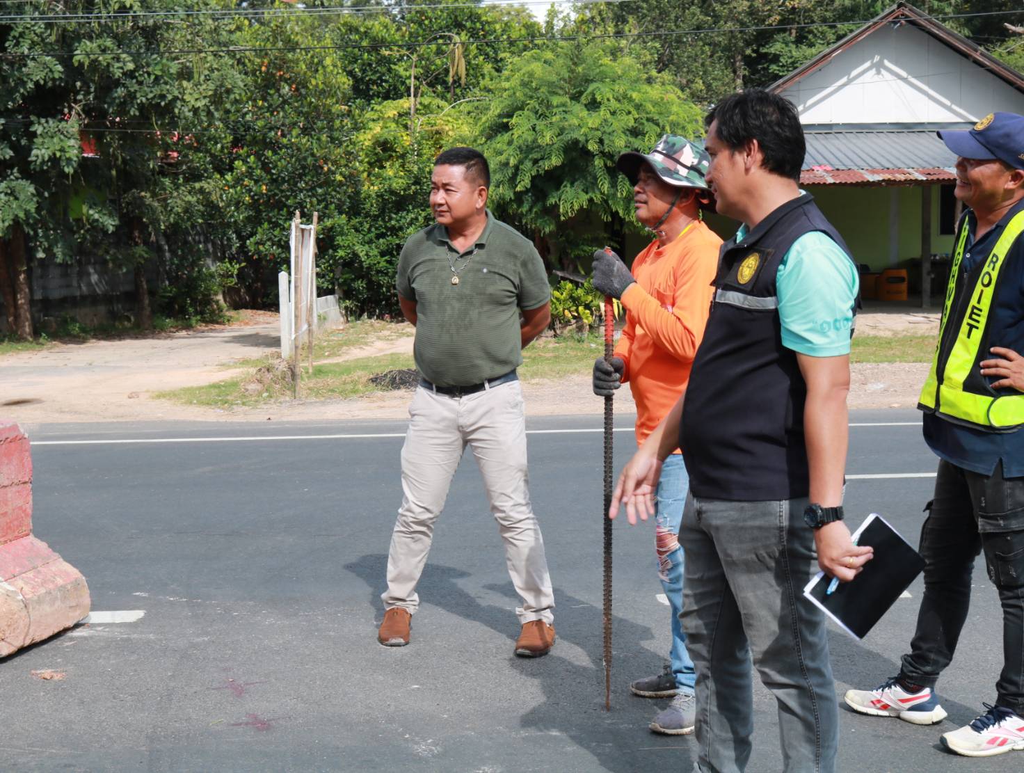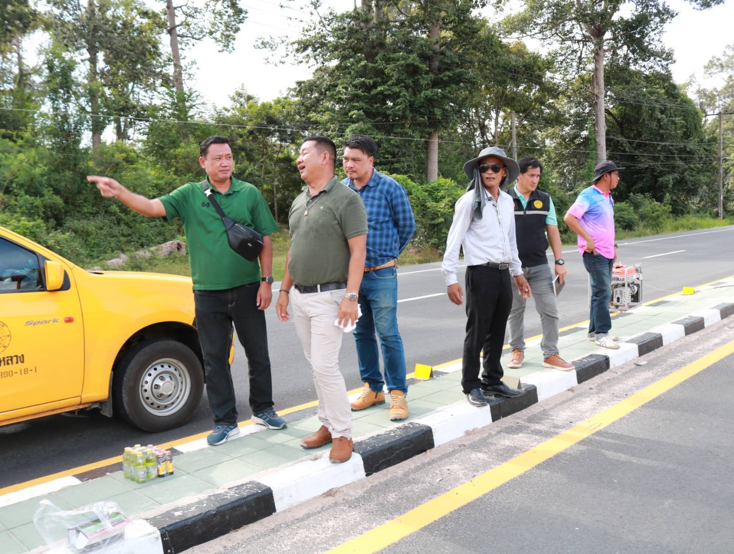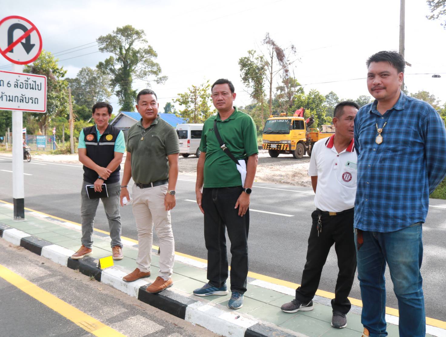 นายมงคล แสนวงษา ผู้อำนวยการแขวงทางหลวงร้อยเอ็ด พร้อมด้วยนายสถิต คำพิชิต รองผู้อำนวยการแขวงทางหลวงร้อยเอ็ด ฝ่ายปฏิบัติการ ,นายสุพรรณ ปากวิเศษ หัวหน้าหมวดทางหลวงจตุรพักพิมาน ,นายพิทักษ์ ทาตะนาม หัวหน้าหมวดทางหลวงเกษตรวิสัย ,นายศุภพรชัย ขามรัตน์ หัวหน้าหมวดทางหลวงเมืองสรวง ได้ร่วมลงพื้นที่ตรวจสอบกายภาพทางหลวง เข้าอำนวยการพร้อมแนะนำแนวทางการปฏิบัติงาน การปรับปรุงจุดเสี่ยง จุดอันตรายในทางหลวง แก้ไขปัญหาการขับรถย้อยศรบริเวณจุดกลับรถ จัดวางอุปกรณ์อำนวยความปลอดภัย และจัดระเบียบการใช้จุดกลับรถ เพื่อสะดวกและความปลอดภัยของผู้ใช้ทาง ในทางหลวงหมายเลข 215 ตอน ร้อยเอ็ด - สุวรรณภูมิ ที่ กม.4+800 (จุดกลับรถบ้านโนนรัง)
