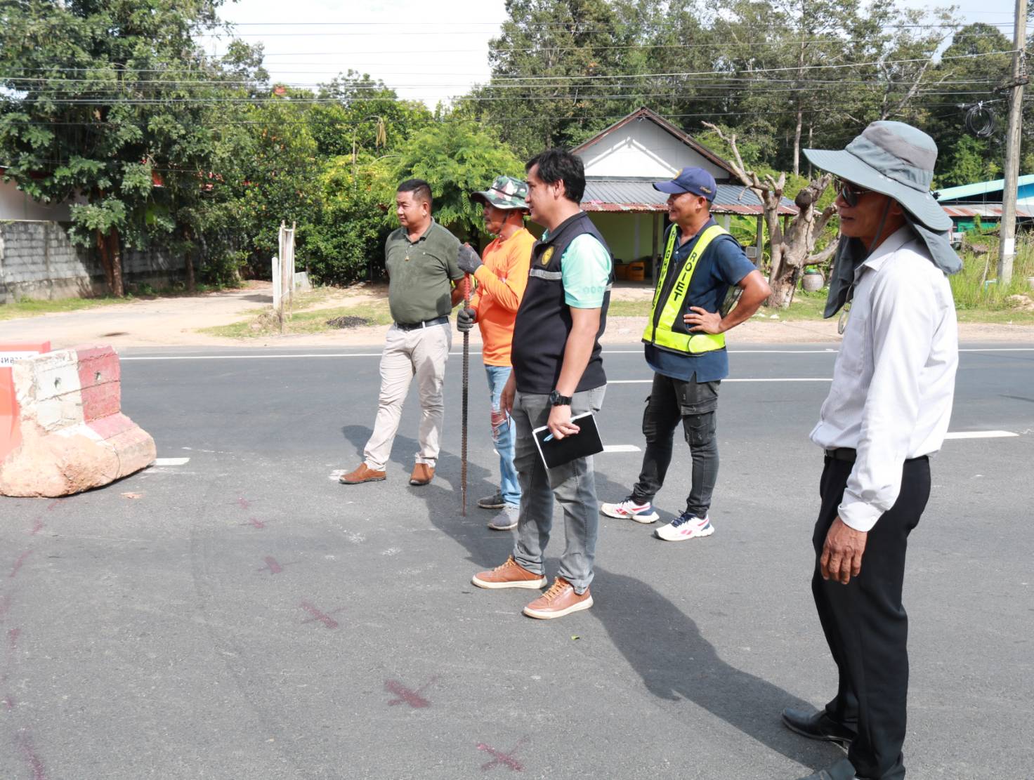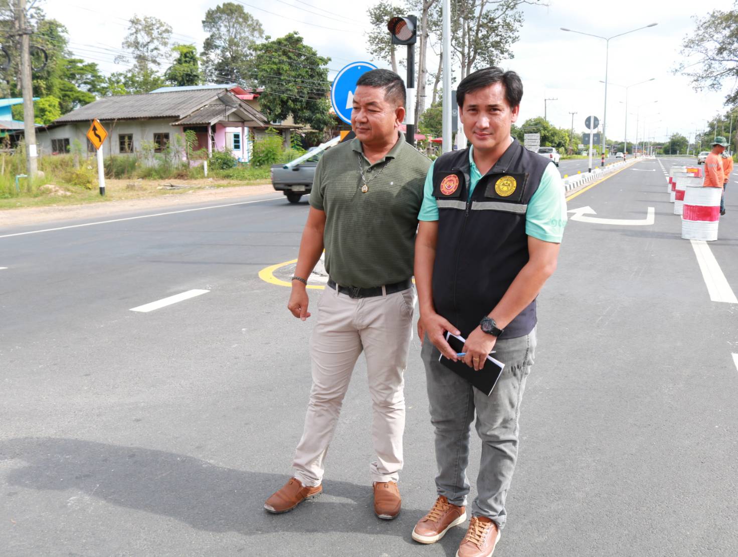 "ร่วมลงพื้นที่ตรวจสอบกายภาพทางหลวง เข้าอำนวยการพร้อมแนะนำแนวทางการปฏิบัติงาน การปรับปรุงจุดเสี่ยง จุดอันตรายในทางหลวง ทล.215 ตอน ร้อยเอ็ด - สุวรรณภูมิ ที่ กม.4+800 (จุดกลับรถบ้านโนนรัง)"