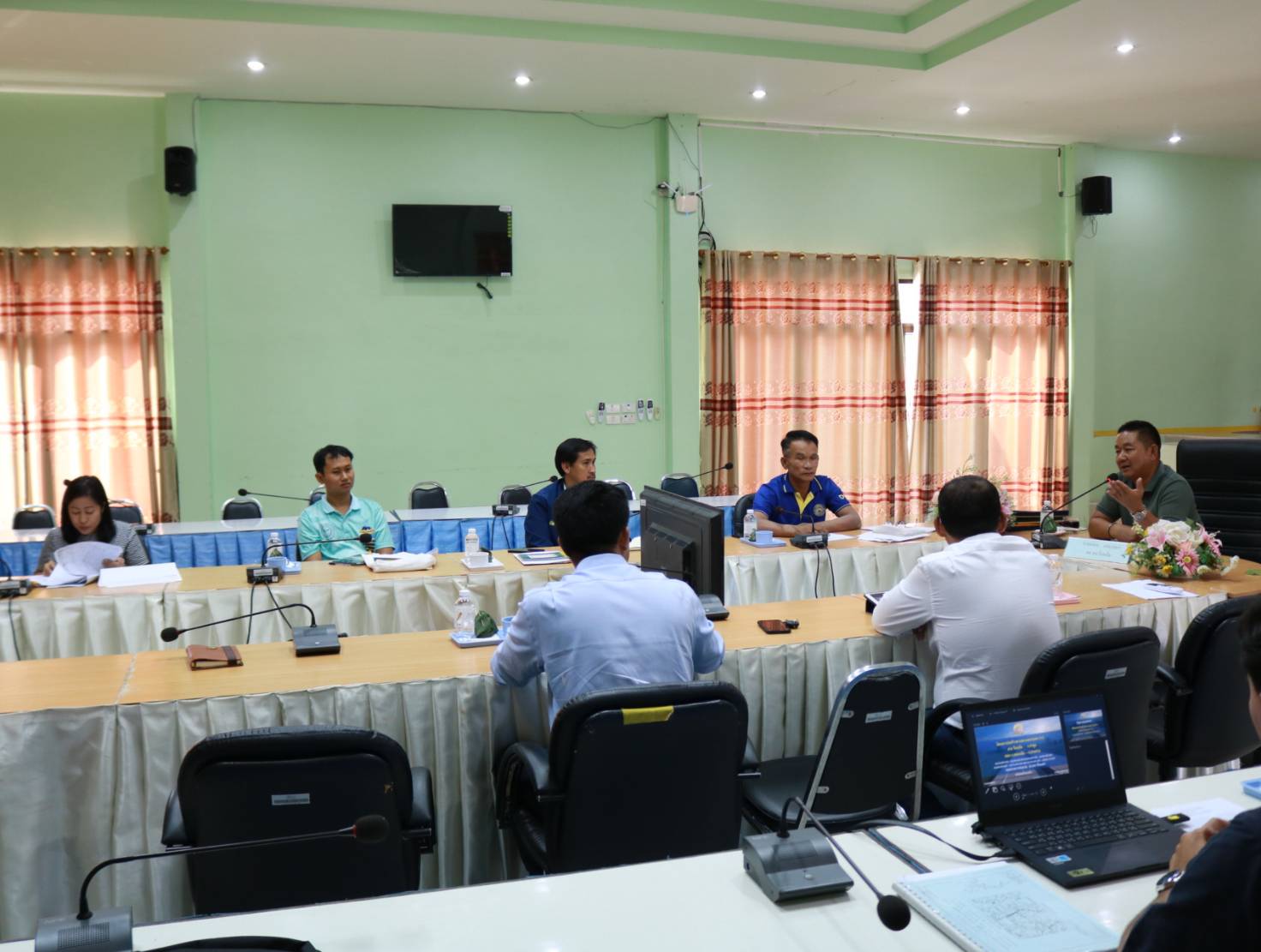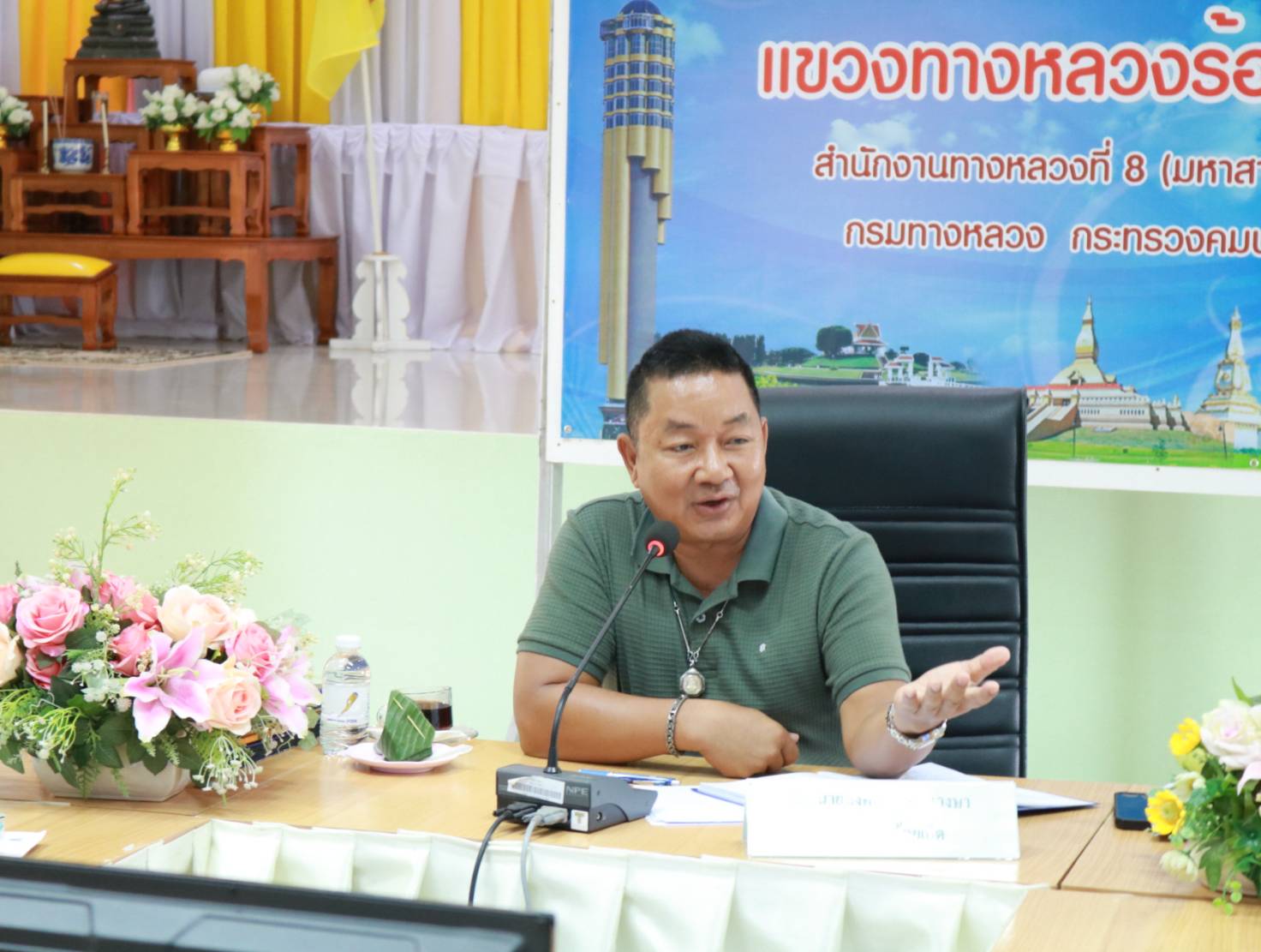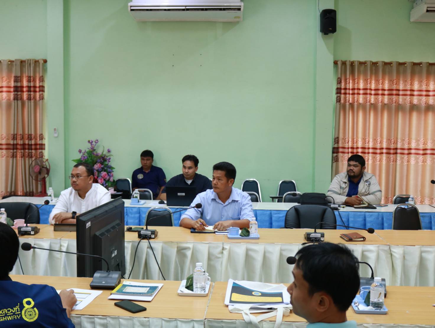 นายมงคล แสนวงษา ผู้อำนวยการแขวงทางหลวงร้อยเอ็ด ,นายสถิต คำพิชิต รองผู้อำนวยการแขวงทางหลวงร้อยเอ็ด ฝ่ายปฏิบัติการ ,นายยศธน อินทะวงศ์ เจ้าหน้าที่ฝ่ายจัดกรรมสิทธิ์ที่ดิน สำนักงานทางหลวงที่ 8 ,นายศุกภพรชัย ขามรัตน์ หัวหน้าหมวดทางหลวงเมืองสรวง พร้อมด้วยเจ้าหน้าที่โครงการก่อสร้างฯ ได้เข้าร่วมประชุมหารือที่ดินเอกชนทับซ้อนกับแนวเขตทางหลวง เพื่อแก้ไขปัญหา อุปสรรค ในระหว่างการก่อสร้าง ในทางหลวงหมายเลข 215 สาย ร้อยเอ็ด - อ.ท่าตูม ตอน บ.หนองเม็ก - บ.สายหร่าย ระหว่าง กม.42+500 - กม.46+050 ณ ห้องประชุมจุลละโพธิ แขวงทางหลวงร้อยเอ็ด