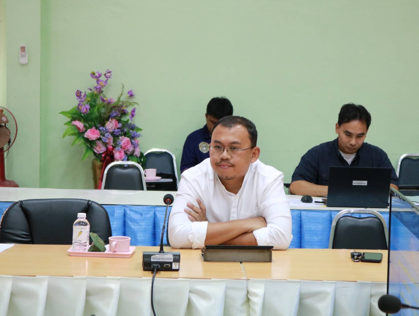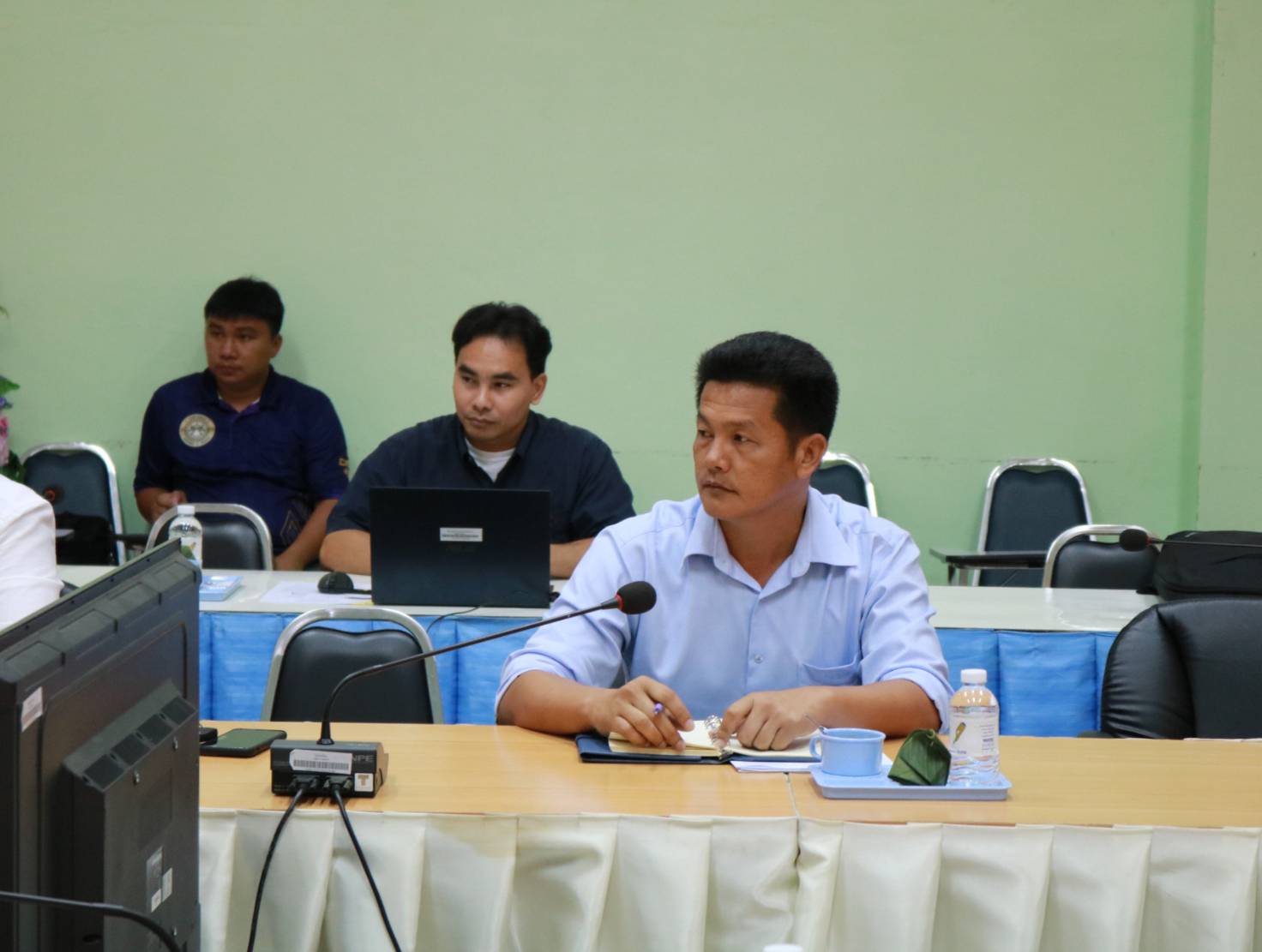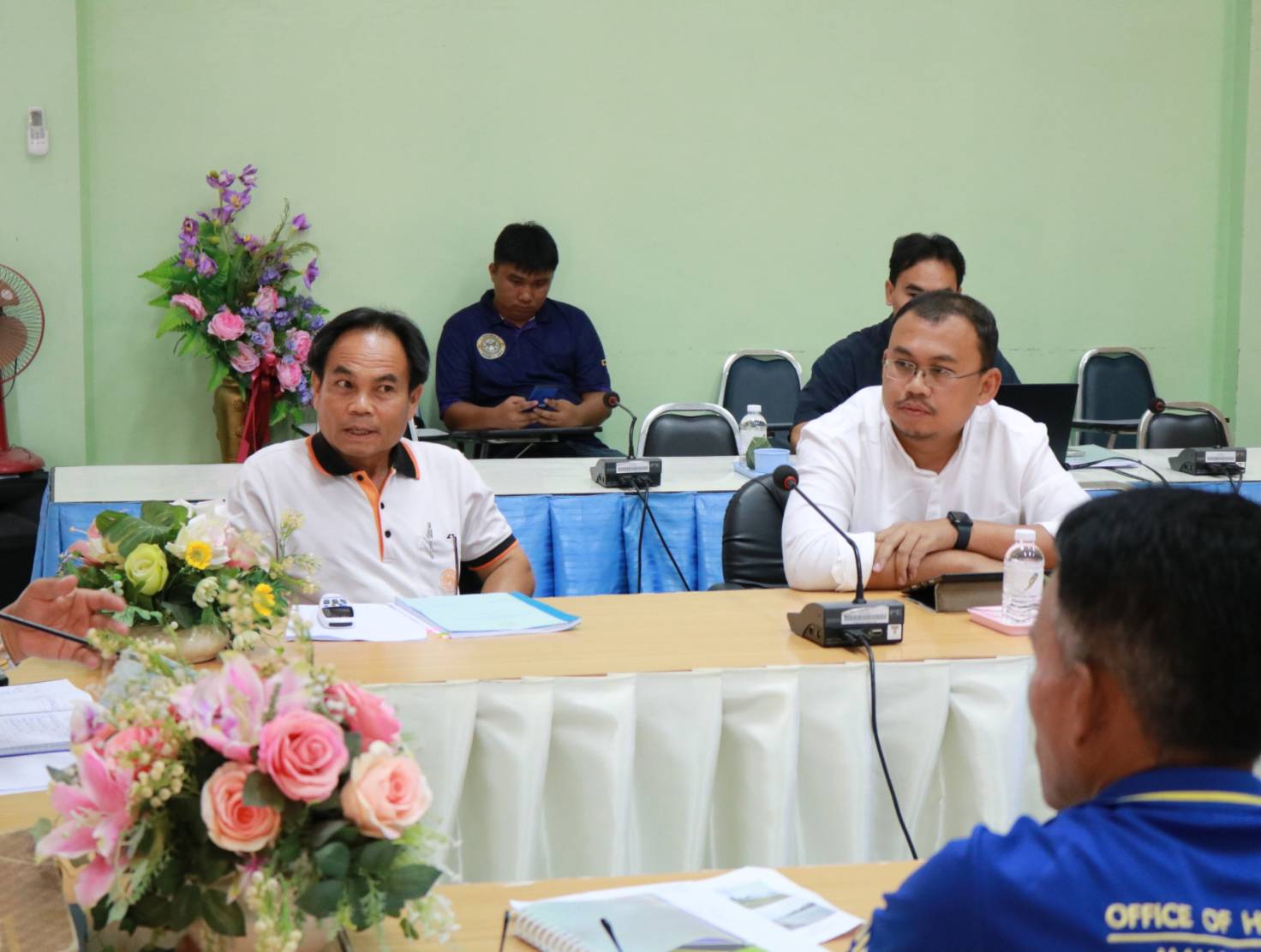 นายมงคล แสนวงษา ผู้อำนวยการแขวงทางหลวงร้อยเอ็ด ,นายสถิต คำพิชิต รองผู้อำนวยการแขวงทางหลวงร้อยเอ็ด ฝ่ายปฏิบัติการ ,นายยศธน อินทะวงศ์ เจ้าหน้าที่ฝ่ายจัดกรรมสิทธิ์ที่ดิน สำนักงานทางหลวงที่ 8 ,นายศุกภพรชัย ขามรัตน์ หัวหน้าหมวดทางหลวงเมืองสรวง พร้อมด้วยเจ้าหน้าที่โครงการก่อสร้างฯ ได้เข้าร่วมประชุมหารือที่ดินเอกชนทับซ้อนกับแนวเขตทางหลวง เพื่อแก้ไขปัญหา อุปสรรค ในระหว่างการก่อสร้าง ในทางหลวงหมายเลข 215 สาย ร้อยเอ็ด - อ.ท่าตูม ตอน บ.หนองเม็ก - บ.สายหร่าย ระหว่าง กม.42+500 - กม.46+050 ณ ห้องประชุมจุลละโพธิ แขวงทางหลวงร้อยเอ็ด