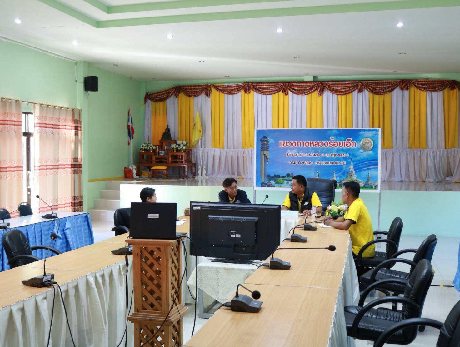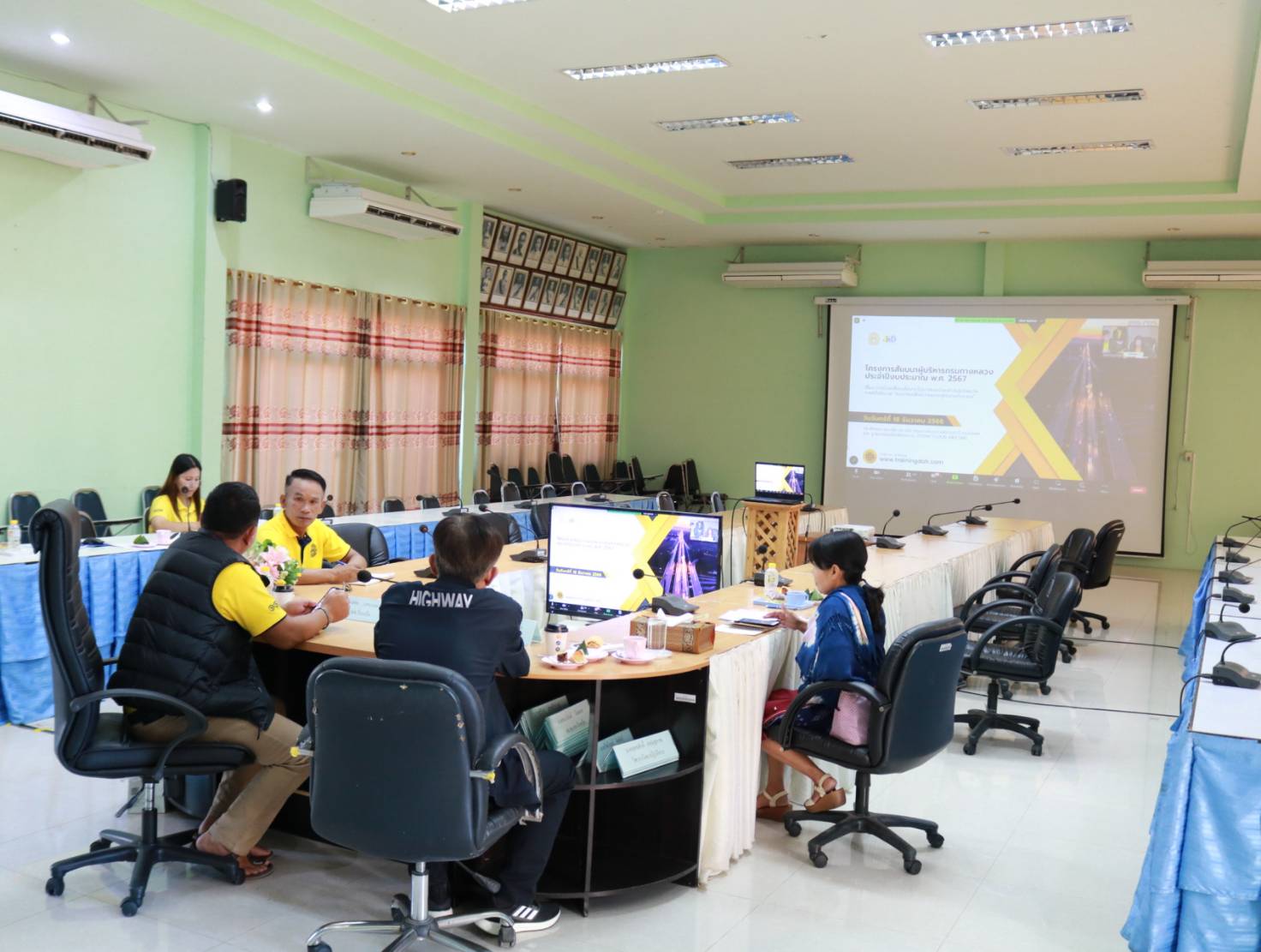 นายมงคล แสนวงษา ผู้อำนวยการแขวงทางหลวงร้อยเอ็ด ,นายเกรียงศักดิ์ ตันปิยะกุล ผู้อำนวยการแขวงทางหลวงมุกดาหาร ,นายสถิต คำพิชิต รองผู้อำนวยการแขวงทางหลวงร้อยเอ็ด ฝ่ายปฏิบัติการ และนางรฐา ชำนาญยงค์ รองผู้อำนวยการแขวงทางหลวงร้อยเอ็ด ฝ่ายบริหาร ได้เข้าร่วมประชุมโครงการสัมมนาผู้บริหารกรมทางหลวง ประจำปีงบประมาณ พ.ศ. 2567 เรื่อง การขับเคลื่อนนโยบายรัฐบาลและนำองค์กรสู่เป้าหมาย ภายใต้นโยบาย "คมนาคมเพื่อความอุดมสุขของประชาชน" ผ่านสื่ออิเล็กทรอนิกส์ (zoom cloud meeting) ณ ห้องประชุมจุลละโพธิ แขวงทางหลวงร้อยเอ็ด