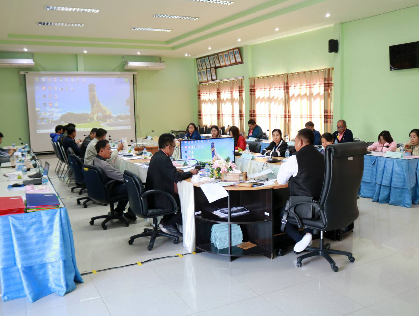 "ร่วมประชุมประจำเดือนธันวาคม 2566 เพื่อเตรียมความพร้อมในการอำนวยความสะดวกและปลอดภัยในช่วงเทศกาลปีใหม่ 2567 (ระหว่างวันที่ 29 ธันวาคม 2566 - วันที่ 4 มกราคม 2567) และสรุปผลการดำเนินงาน ปัญหาและอุปสรรค"