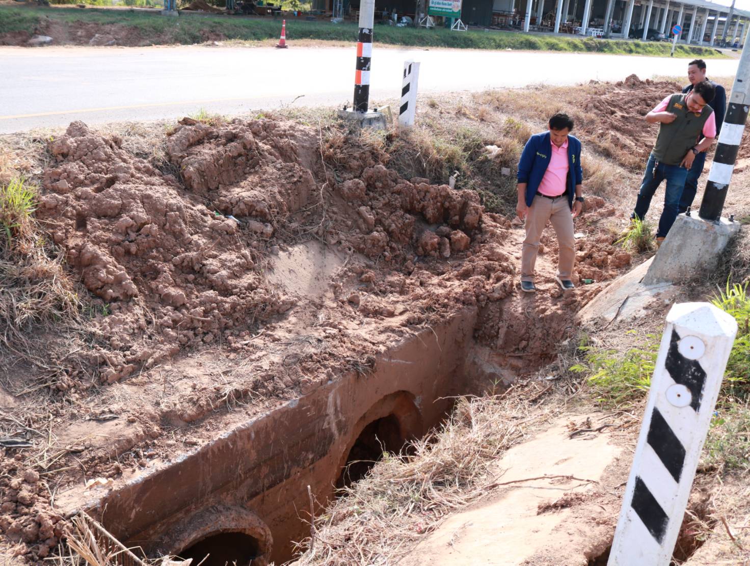 "ร่วมลงพื้นที่ตรวจสอบ แนะนำการปฏิบัติงาน ปรับปรุงแก้ไขท่อระบายน้ำและทางระบายน้ำและทางระบายน้ำ และเพิ่มช่องระบายน้ำเพื่อแก้ไขปัญหาน้ำท่วมขัง คันทางชำรุดจากการกัดเซาะ ทล.23 ตอน ร้อยเอ็ด - เสลภูมิ ที่ กม.139+500"