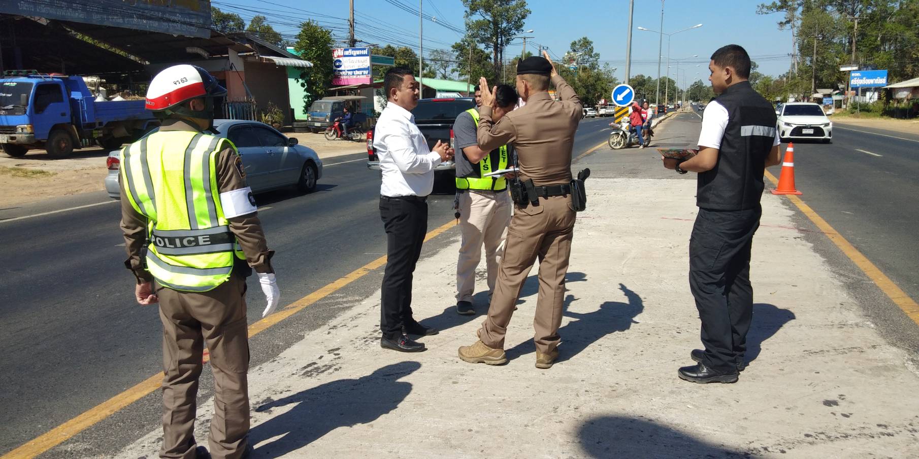 “ร่วมลงพื้นที่ตรวจสอบจุดเสี่ยงบริเวณจุดกลับรถบ้านดอกไม้ เพื่อวางแผนป้องกันและแก้ไขปัญหาอุบัติเหตุ ทล.202 ตอน เกษตรวิสัย - สุวรรณภูมิ ระหว่าง กม.209 + 250 - กม.209 + 602”