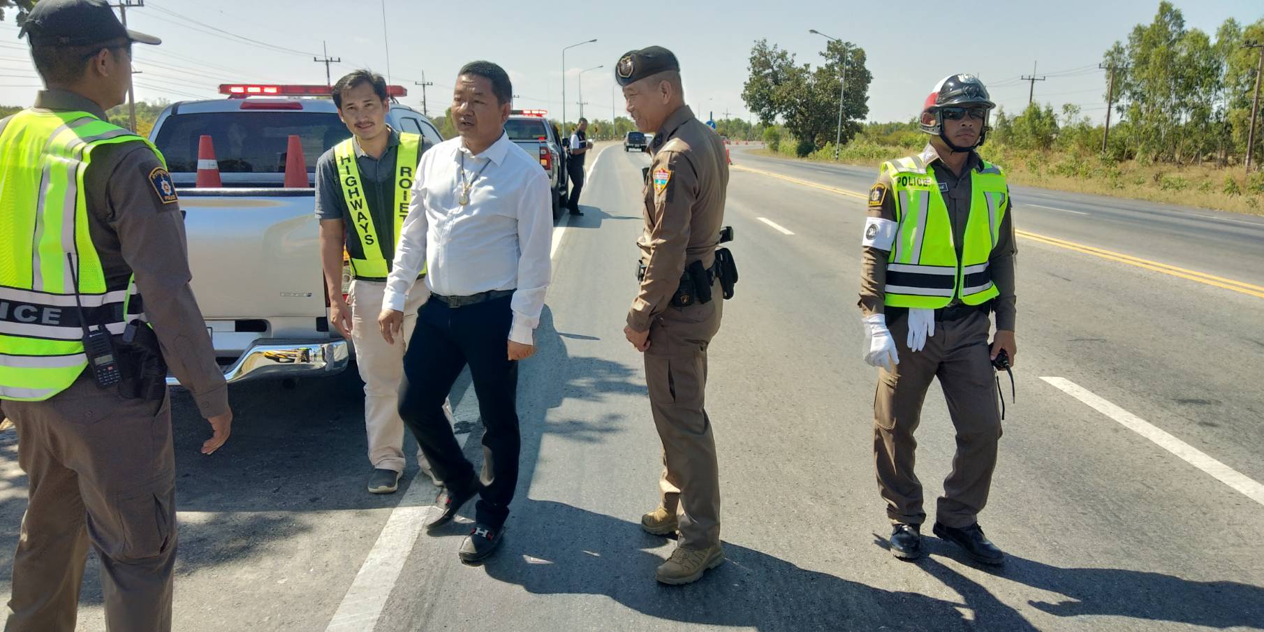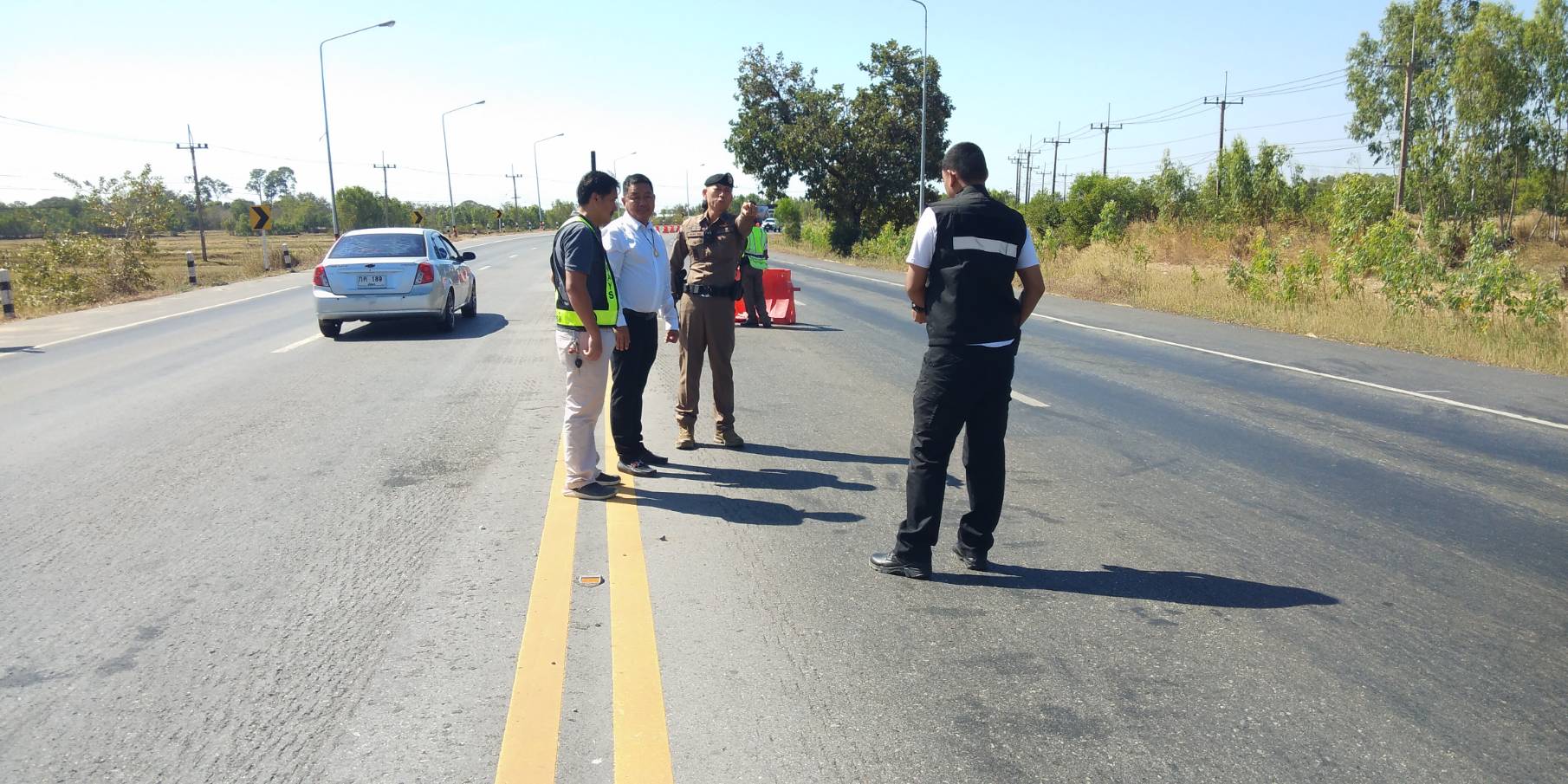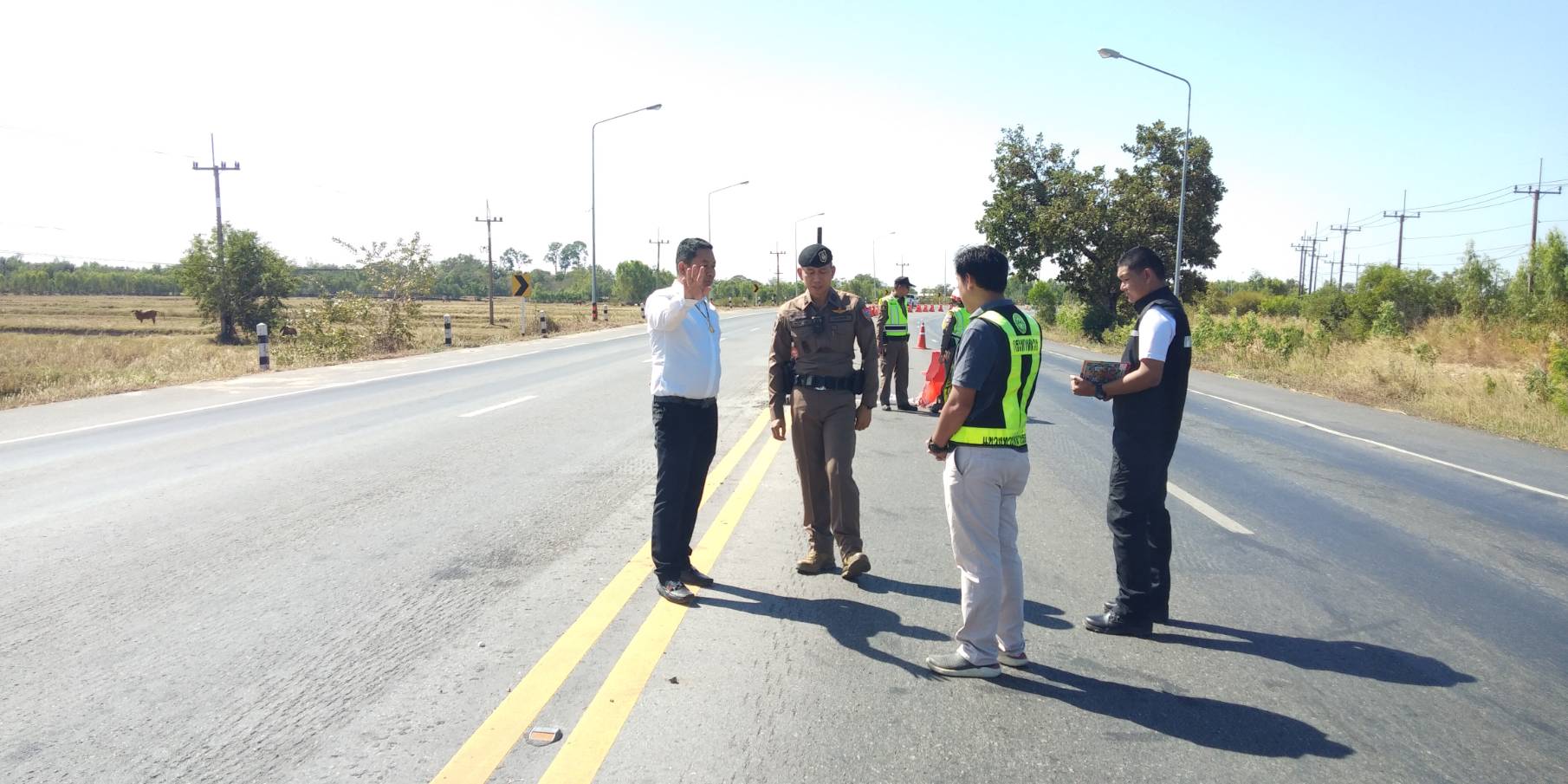 “ร่วมลงพื้นที่ตรวจสอบจุดเสี่ยงเนื่องจากเป็นทางโค้งที่เกิดอุบัติเหตุบ่อยครั้ง บริเวณโค้งบ้านสองชั้น ตำบลหินกองอำเภอสุวรรณภูมิ จังหวัดร้อยเอ็ด ทล.202 ตอน เกษตรวิสัย - สุวรรณภูมิ ระหว่าง กม.202+700 - กม.203+100 (ทางโค้งบ้านสองชั้น)”