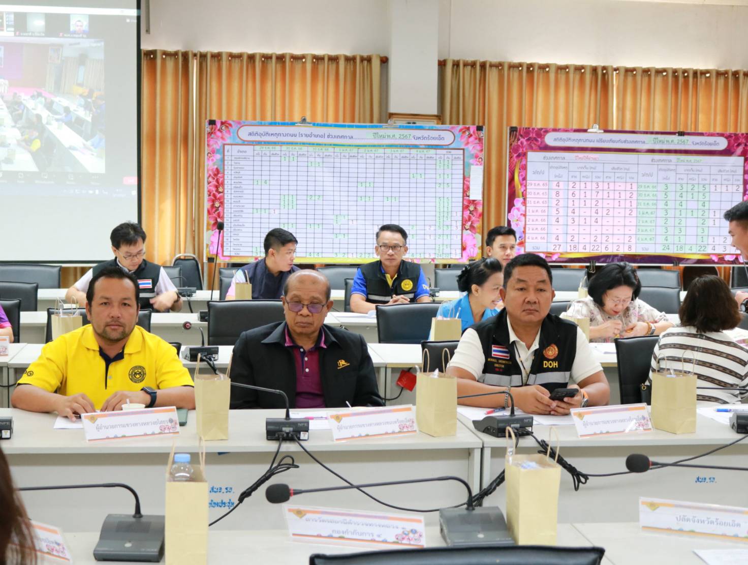 นายมงคล แสนวงษา ผู้อำนวยการแขวงทางหลวงร้อยเอ็ด พร้อมด้วยนายสถิต คำพิชิต รองผู้อำนวยการแขวงทางหลวงร้อยเอ็ด ฝ่ายปฏิบัติการ เข้าร่วมประชุมและแถลงข่าวสรุปผลการดำเนินการป้องกันและลดอุบัติเหตุทางถนนช่วงเทศกาลปีใหม่ พ.ศ. 2567 ร่วมกับหัวหน้าส่วนราชการในจังหวัดร้อยเอ็ด โดยมีนายทรงพล ใจกริ่ม ผู้ว่าราชการจังหวัดร้อยเอ็ด เป็นประธานในการแถลงข่าวฯ ณ ศูนย์ปฏิบัติการป้องกันและลดอุบัติเหตุช่วงเทศกาลปีใหม่ พ.ศ.2567 ห้องประชุมพระมหาเจดีย์ชัยมงคล ชั้น 5 ศาลากลางจังหวัดร้อยเอ็ด