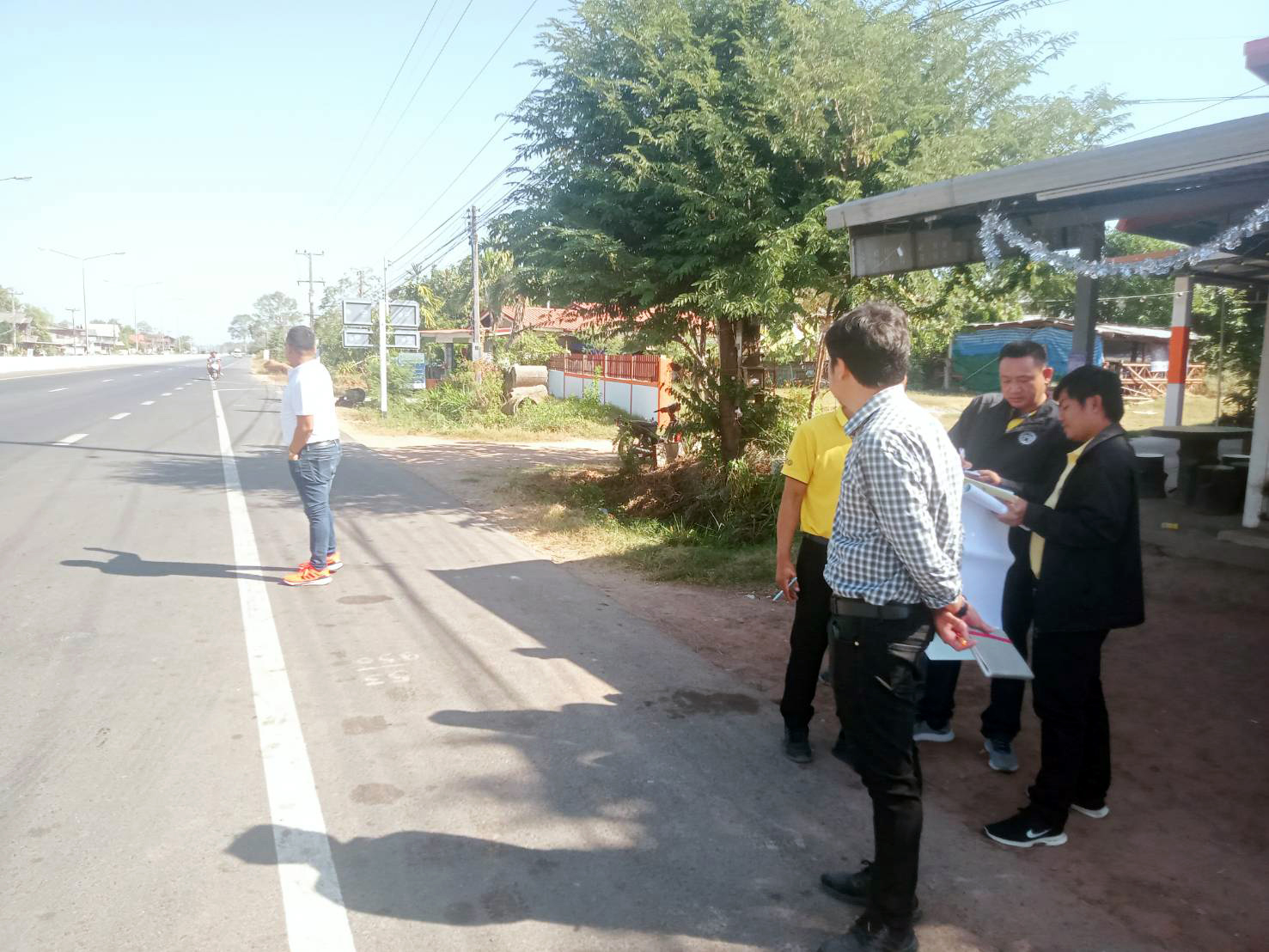 "ร่วมลงพื้นที่ตรวจสอบกายภาพทางหลวง เพื่อวางแผนในการปฏิบัติงาน ทดลองเปิดจุดกลับรถ เพื่อป้องกันปัญหาการขับขี่ย้อนศร ทล.214 ตอน ร้อยเอ็ด - จตุรพักตรพิมาน ที่กม.53+800"