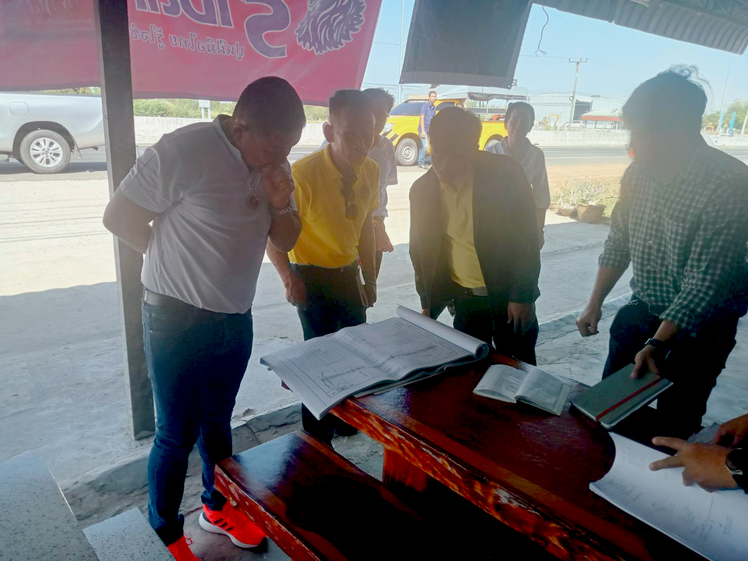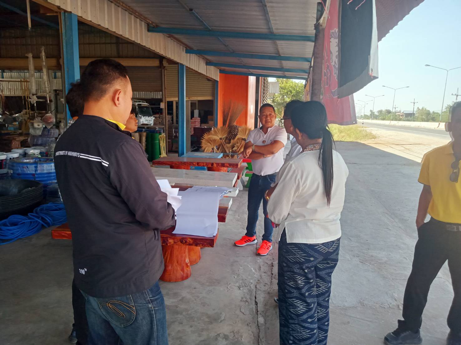 "ร่วมลงพื้นที่ตรวจสอบกายภาพทางหลวง เพื่อวางแผนในการปฏิบัติงาน ทดลองเปิดจุดกลับรถ เพื่อป้องกันปัญหาการขับขี่ย้อนศร ทล.214 ตอน ร้อยเอ็ด - จตุรพักตรพิมาน ที่กม.63+300"