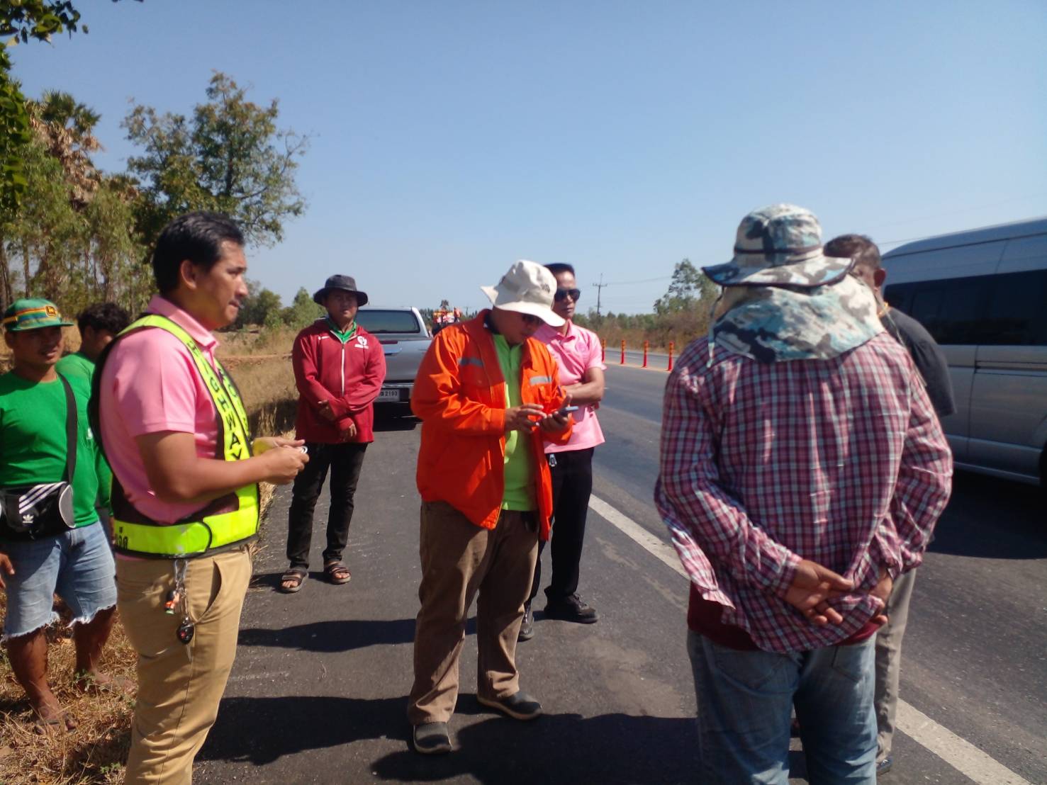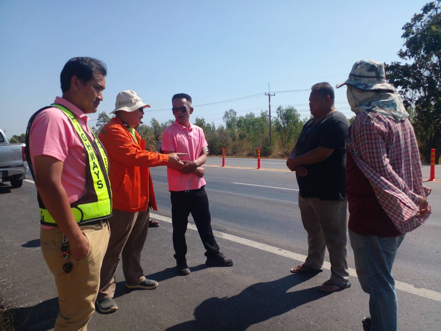 ลงพื้นที่ตรวจสอบปริมาณงาน เตรียมวางแผนปรับปรุงแก้ไข งานแก้ไขปัญหาจุดเสี่ยงที่มีการเกิดอุบัติเหตุบ่อยครั้ง ในทางหลวงหมายเลข 202 ตอน เกษตรวิสัย - สุวรรณภูมิ ระหว่าง กม. 202+500 - กม.203+100 (โค้งบ้านสองชั้น)