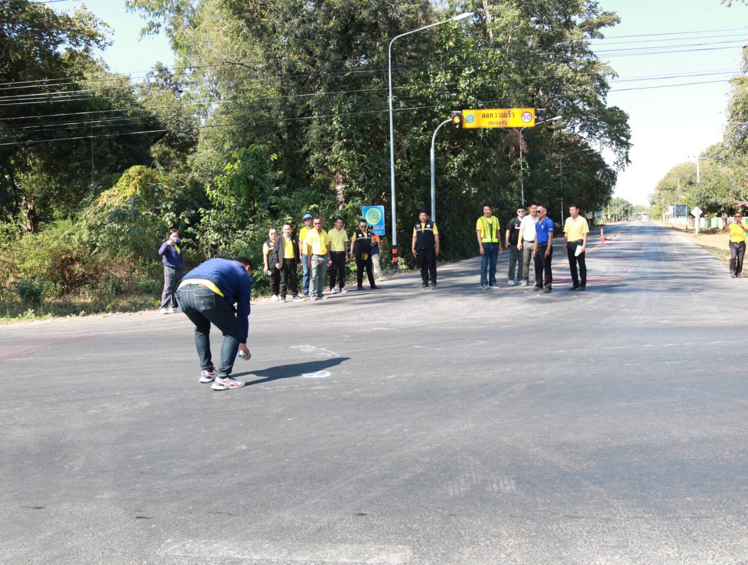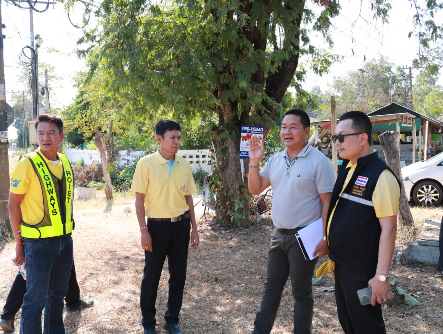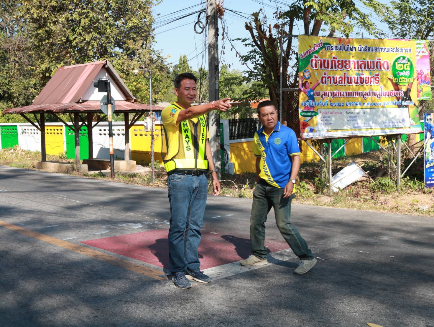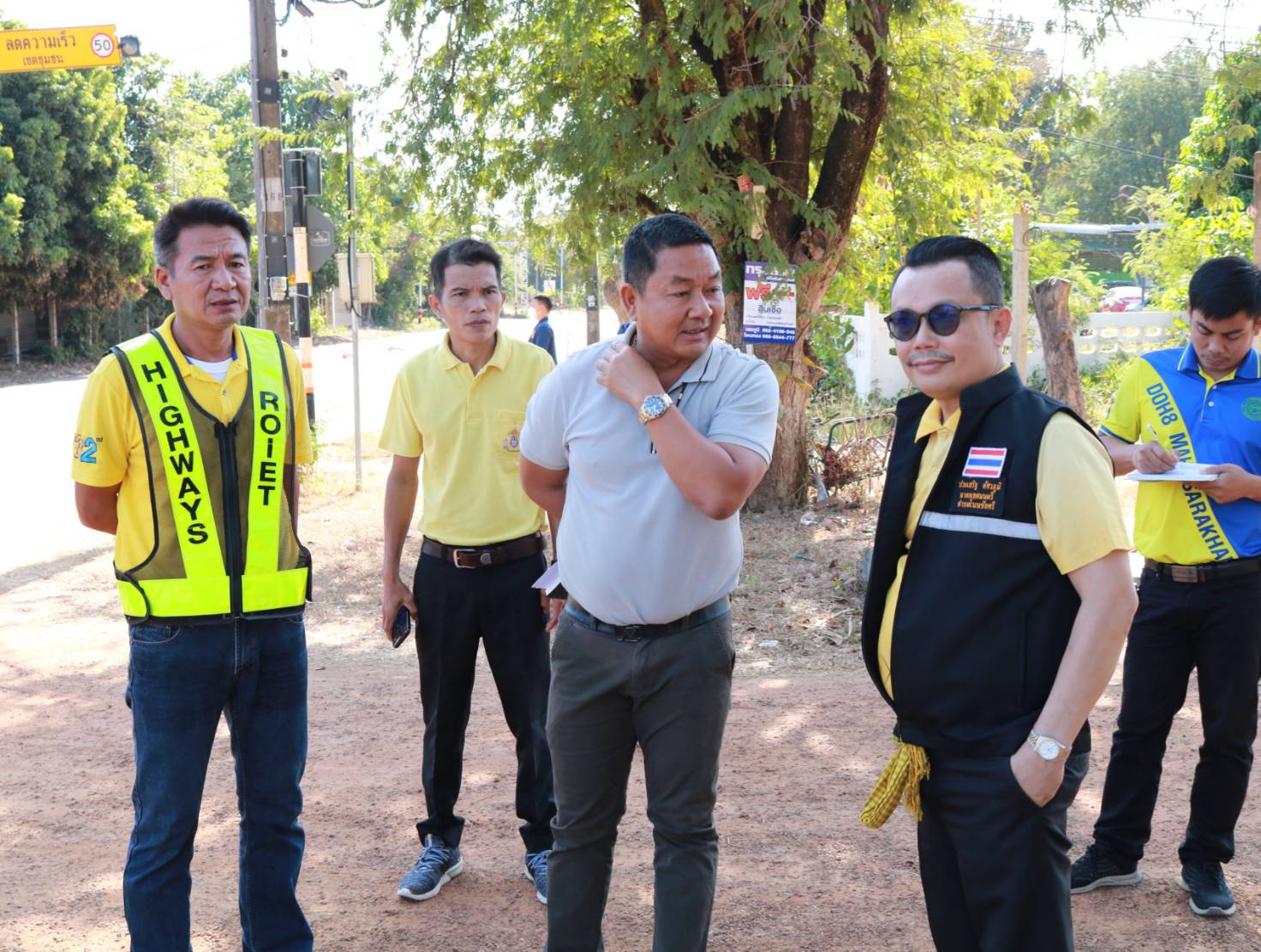 นายมงคล แสนวงษา ผู้อำนวยการแขวงทางหลวงร้อยเอ็ด ,พันจ่าโทคนึง พูลพิพิธ นายอำเภอโพนทอง ,นายประเสร็ฐ อัศวภูมิ นายกเทศบาลโนนชัยศรี ,นายสถิต คำพิชิต รองผู้อำนวยการแขวงทางหลวงร้อยเอ็ด ฝ่ายปฏิบัติการ และนายสุขสันต์ ปากวิเศษ หัวหน้าหมวดทางหลวงโพนทอง ได้ร่วมลงพื้นที่ตรวจสอบกายภาพทางหลวง เพื่อวางแผนในการปฏิบัติงานทดลองเปิดวงเวียนชั่วคราว เพื่อป้องกันปัญหาการจราจรทางแยก เพื่อความสะดวกและความปลอดภัยของผู้ใช้ทาง ในทางหลวงหมายเลข 2046 ตอน บ้านงิ้ว – ลำน้ำยัง ที่กม.18+050 (สี่แยกบ้านโนนชัยศรี) บริเวณที่้เกิดอุบัติเหตุบ่อยครั้ง