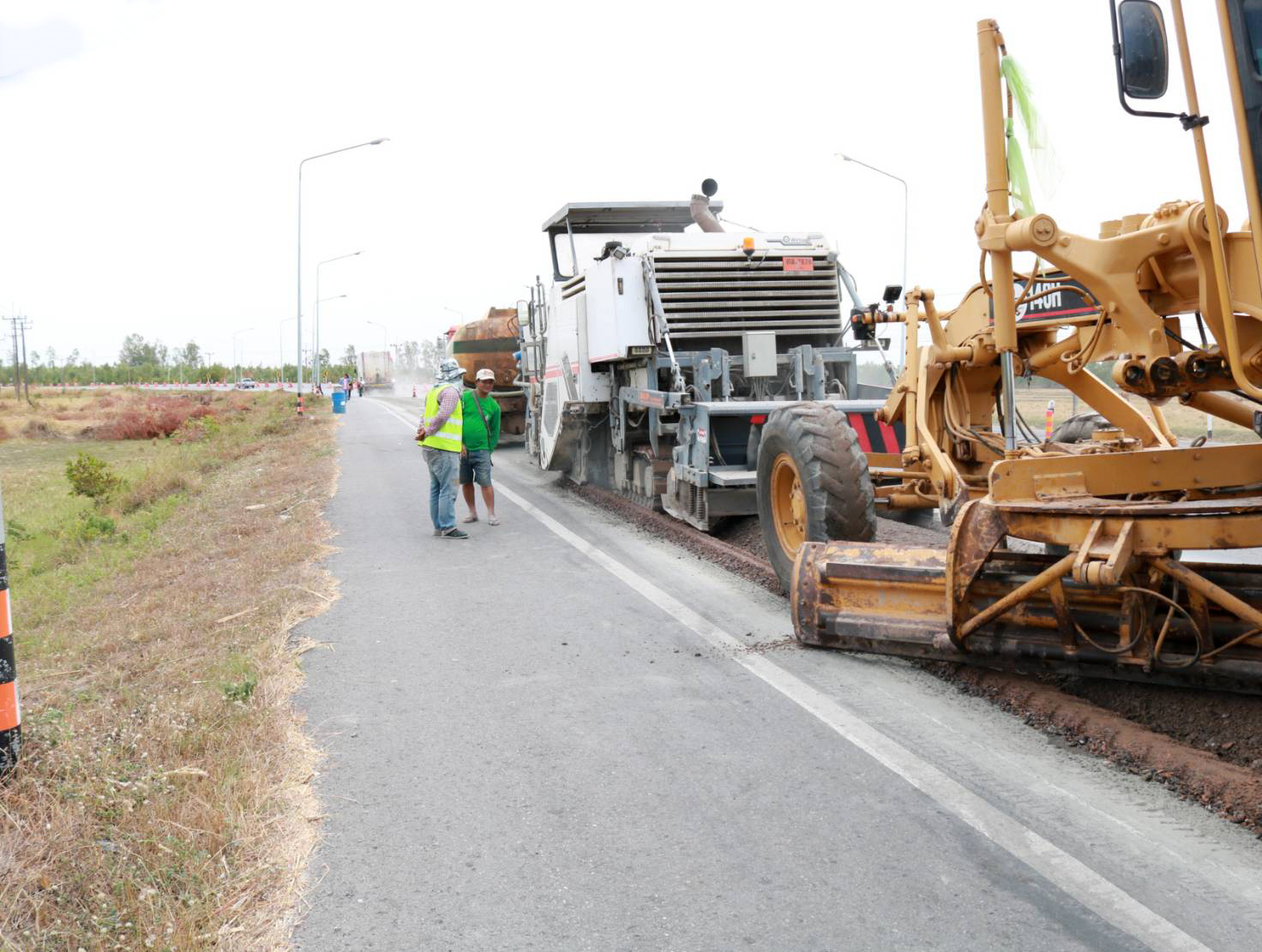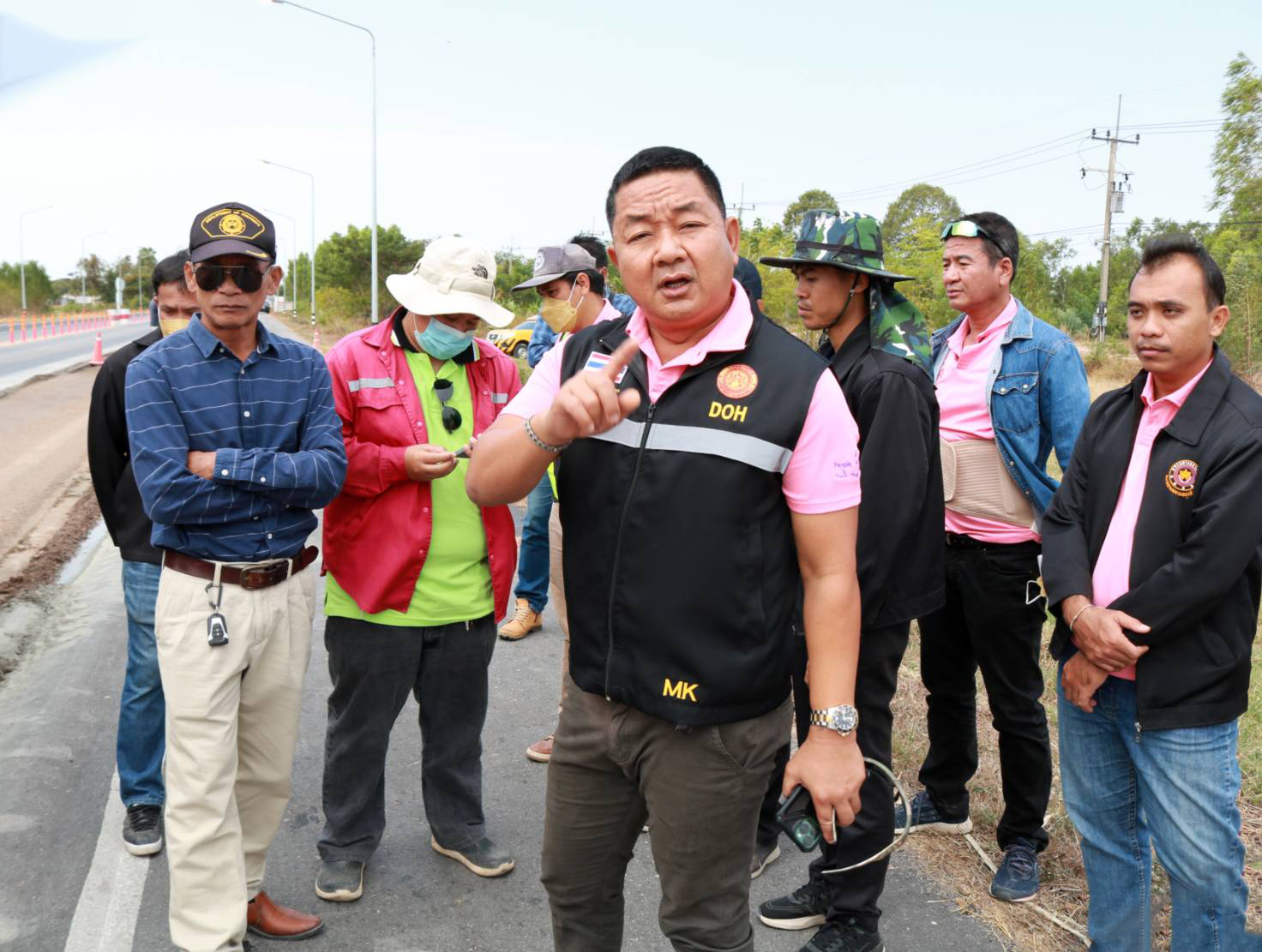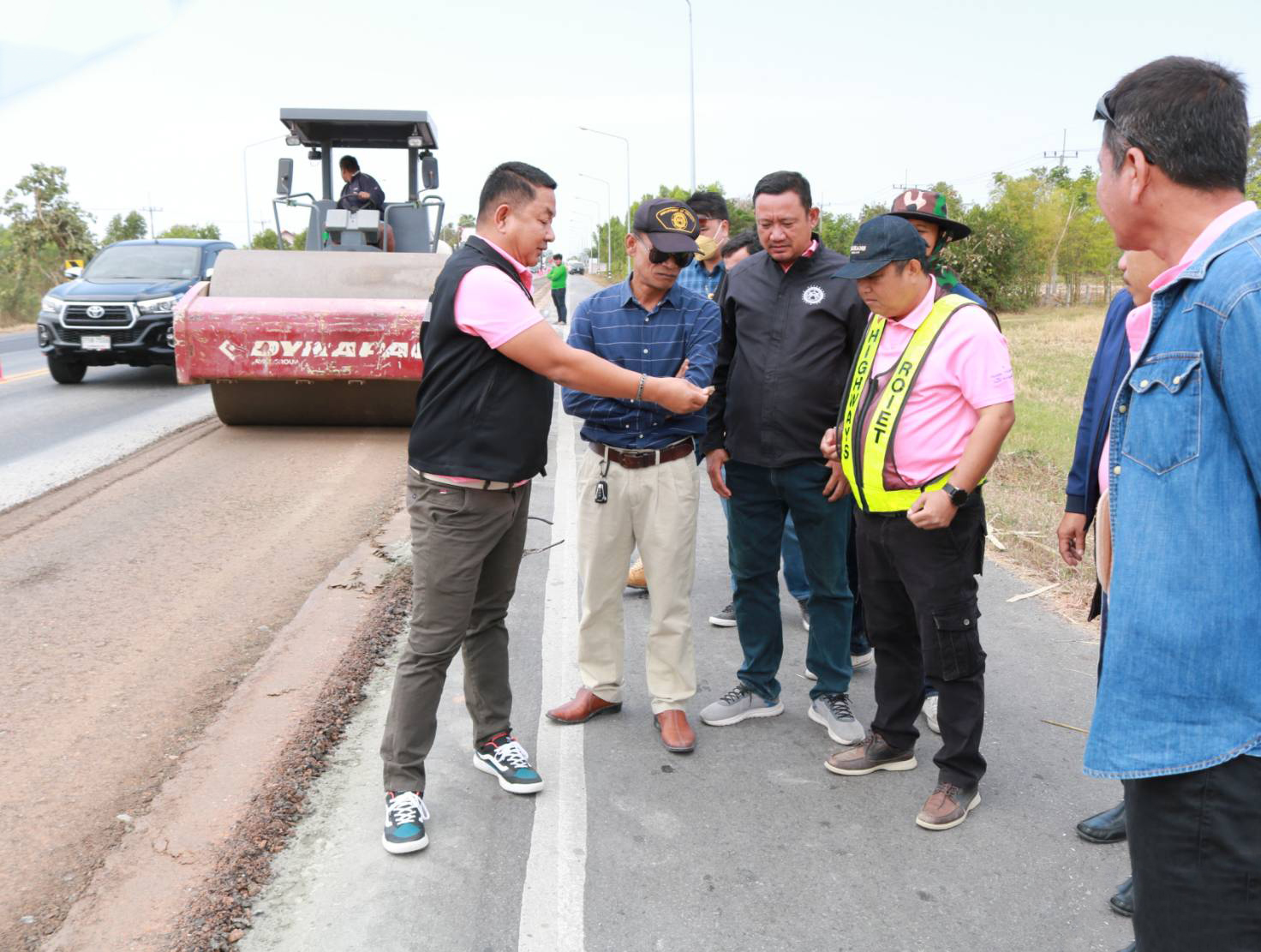 "ร่วมลงพื้นที่ตรวจสอบแนะนำการปฏิบัติงาน การปรับปรุงจุดเสี่ยงจากทางโค้ง แก้ไขปัญหาร่องล้อ(Rutting) ในผิวทาง ทล.202 ตอน เกษตรวิสัย - สุวรรณภูมิ ระหว่าง กม.202+600 - กม. 203+100 (ทางโค้งบ้านสองชั้น)"