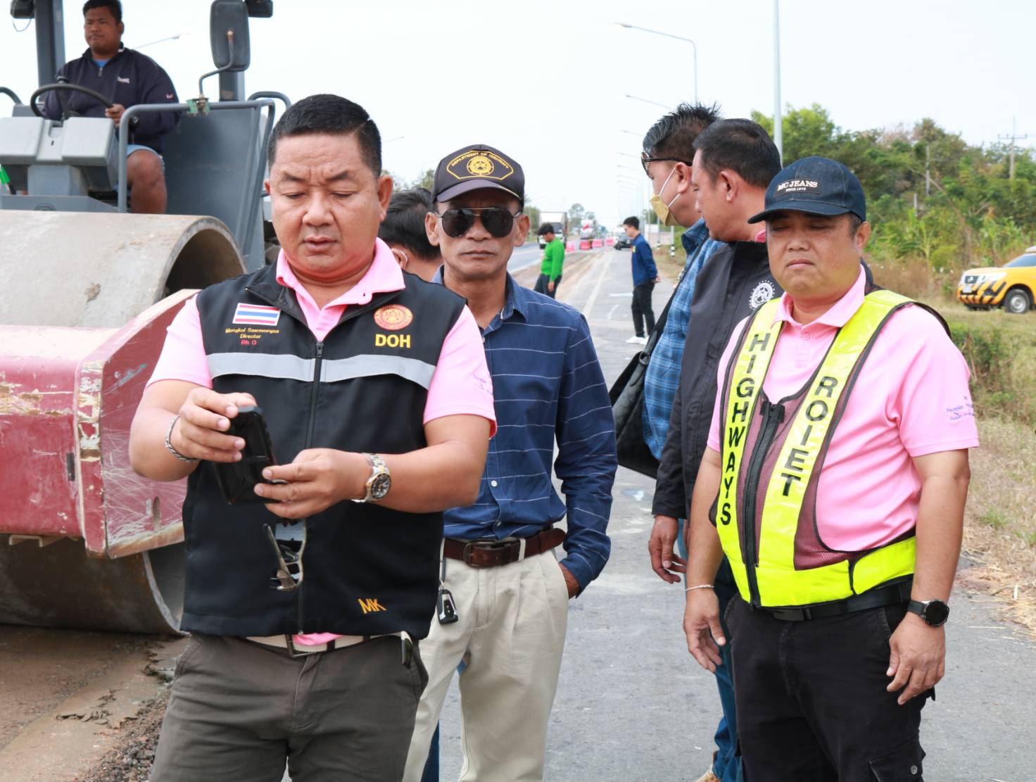 นายมงคล แสนวงษา ผู้อำนวยการแขวงทางหลวงร้อยเอ็ด ,นายสถิต คำพิชิต รองผู้อำนวยการแขวงทางหลวงร้อยเอ็ด ฝ่ายปฏิบัติการ พร้อมด้วยหัวหน้าหมวดในสังกัดและฝ่ายวิศวกรรม ได้ร่วมลงพื้นที่ตรวจสอบแนะนำการปฏิบัติงาน การปรับปรุงจุดเสี่ยงจากทางโค้ง แก้ไขปัญหาร่องล้อ(Rutting) ในผิวทาง เพื่อความสะดวกและความปลอดภัยของผู้ใช้ทาง ในทางหลวงหมายเลข 202 ตอน เกษตรวิสัย - สุวรรณภูมิ ระหว่าง กม.202+600 - กม. 203+100 (ทางโค้งบ้านสองชั้น)