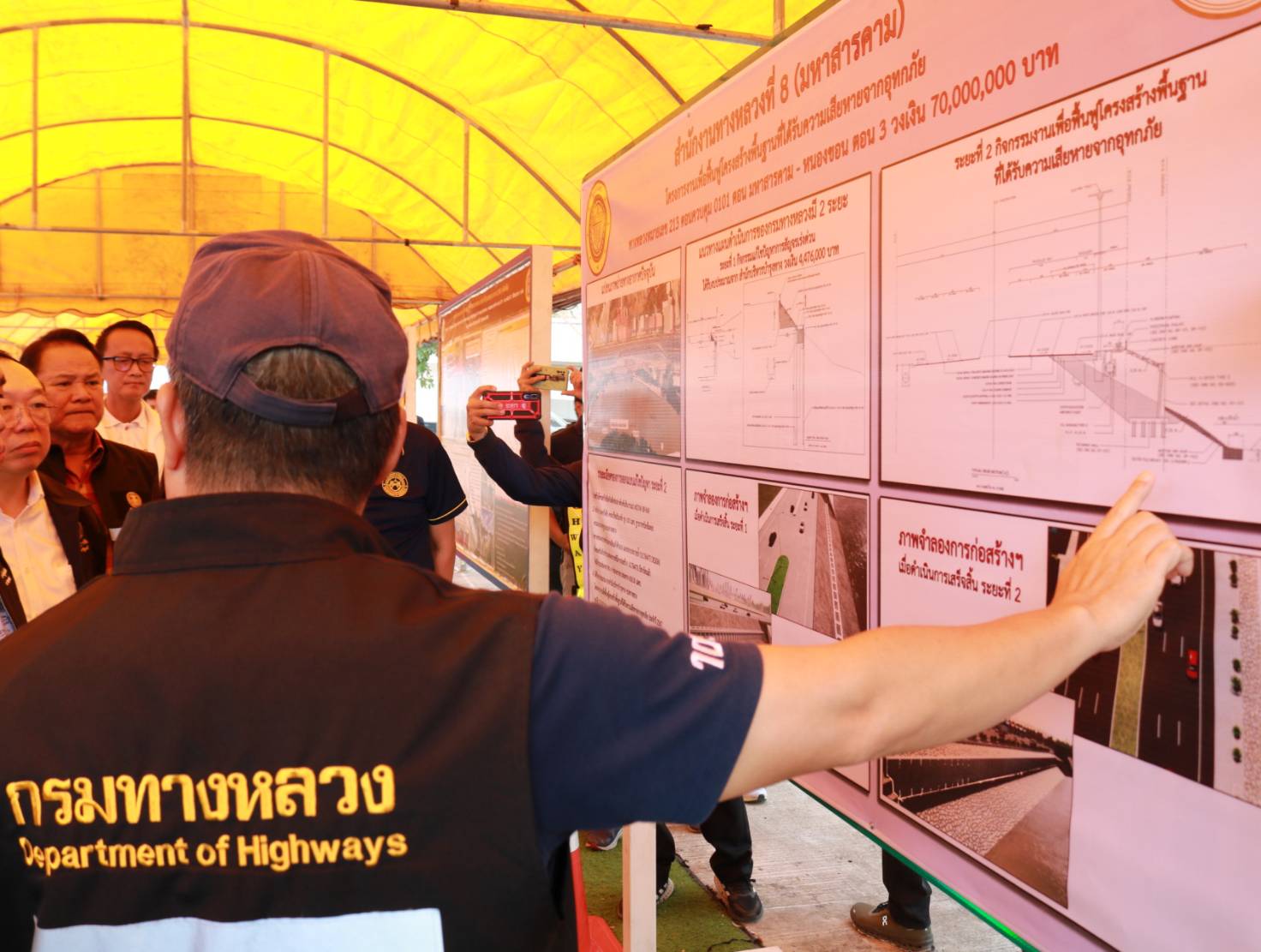 นายสราวุธ ทรงศิวิไล อธิบดีกรมทางหลวง ,นายชัยธวัช พรหมวิชัย ผู้อำนวยการสำนักงานทางหลวงที่ 8,นายมงคล แสนวงษา ผู้อำนวยการแขวงทางหลวงร้อยเอ็ด และเจ้าหน้าที่แขวงทางหลวงร้อยเอ็ด ร่วมให้การต้อนรับ นายสุริยะ จึงรุ่งเรืองกิจ รัฐมนตรีว่าการกระทรวงคมนาคม ,นางมนพร เจริญศรี รัฐมนตรีช่วยว่าการกระทรวงคมนาคม และคณะฯ ในโอกาสตรวจราชการพื้นที่จังหวัดร้อยเอ็ด จังหวัดกาฬสินธุ์ และจังหวัดมหาสารคาม และลงพื้นที่ตรวจติดตามการแก้ไขปัญหาตลิ่งริมแม่น้ำชีทรุดตัว ทางหลวงหมายเลข 213 (ตู้ยามบ้านดินดำ) อำเภอเมือง จังหวัดมหาสารคาม