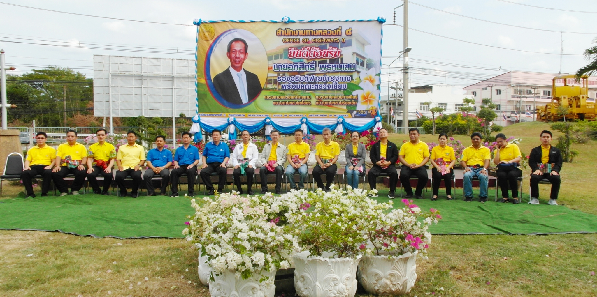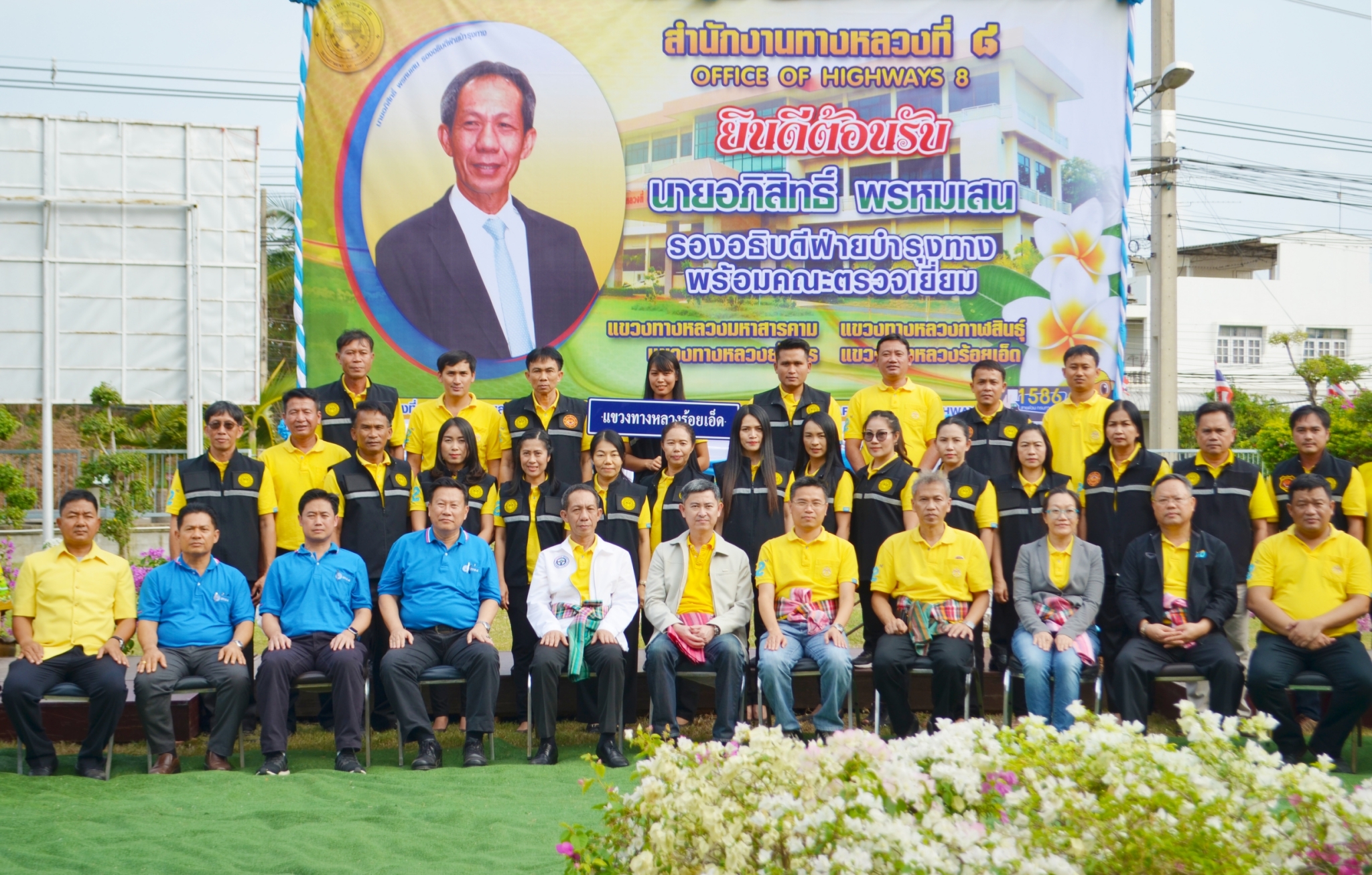 นายอภิสิทธิ์ พรหมเสน รองอธิบดีฝ่ายบำรุงทาง(รทร.) พร้อมคณะฯ ตรวจเยี่ยมและสร้างขวัญ กำลังใจให้กับผู้ปฏิบัติงาน ประจำปี 2562 โดยมี นายบัญชา สุทัยบำรุง ผู้อำนวยการสำนักงานทางหลวงที่ 8 (มหาสารคาม) , นายพงศกร จุลละโพธิ ผู้อำนวยการแขวงทางหลวงร้อยเอ็ด พร้อมด้วยคณะเจ้าหน้าที่ในสังกัดสำนักงานทางหลวงที่ 8 (มหาสารคาม) ร่วมให้การต้อนรับ ณ สำนักงานทางหลวงที่ 8 (มหาสารคาม)