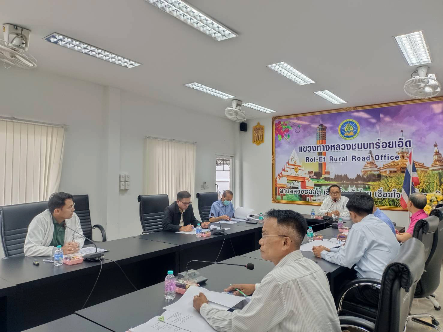 นายมงคล แสนวงษา ผู้อำนวยการแขวงทางหลวงร้อยเอ็ด มอบหมายให้นายสถิต คำพิชิต รองผู้อำนวยการแขวงทางหลวงร้อยเอ็ด ฝ่ายปฏิบัติการ พร้อมด้วยนายศุภพรชัย ขามรัตน์ หัวหน้าหมวดทางหลวงเมืองสรวง เข้าร่วมประชุมหารือ การเปลี่ยนท่อระบายน้ำ จาก 1.00 เมตร เป็น 1.20 เมตร โครงการก่อสร้างถนนสาย ง2 ผังเมืองรวมร้อยเอ็ด ณ ห้องประชุมแขวงทางหลวงชนบทร้อยเอ็ด