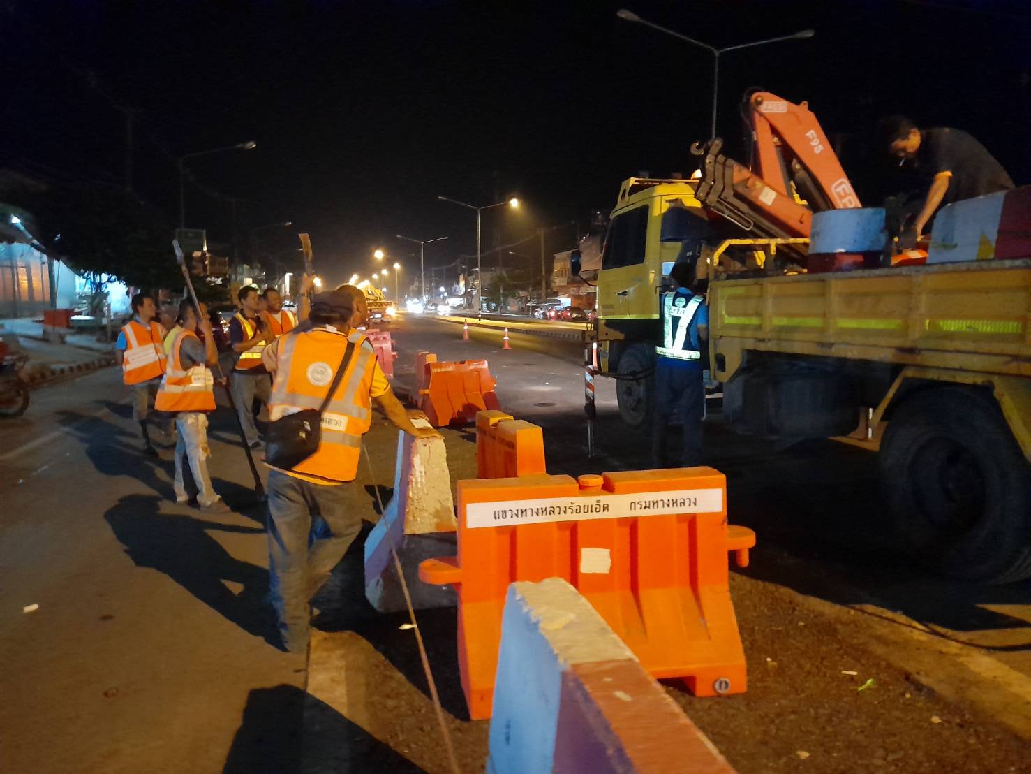 นายมงคล แสนวงษา ผู้อำนวยการแขวงทางหลวงร้อยเอ็ด พร้อมด้วยนายสถิต คำพิชิต รองผู้อำนวยการแขวงทางหลวงร้อยเอ็ด ฝ่ายปฏิบัติการ และว่าที่ รต.ธีระศักดิ์ ไค่นุ่นโพธิ์ ผู้อำนวยการหมวดทางหลวงอาวุโสร้อยเอ็ด ได้ร่วมเข้าอำนวยการ แนะนำการปฏิบัติงาน การดำเนินการ วางอุปกรณ์ อำนวยความปลอดภัย Concrete Barrier และ Plastic Barrier ป้องกันการจอดในที่ห้ามจอด จัดระเบียบการจราจรบริเวณด้านหน้าตลาดจังหาร เพื่อความสะดวกและความปลอดภัยแก่ผู้ใช้ทางและผู้อาศัยสองข้างทาง บริเวณตลาดจังหาร ในทางหลวงหมายเลข 214 ตอน ลำชี – ร้อยเอ็ด ระหว่าง กม.37+800 - กม.38+500 ด้านขวาทาง
