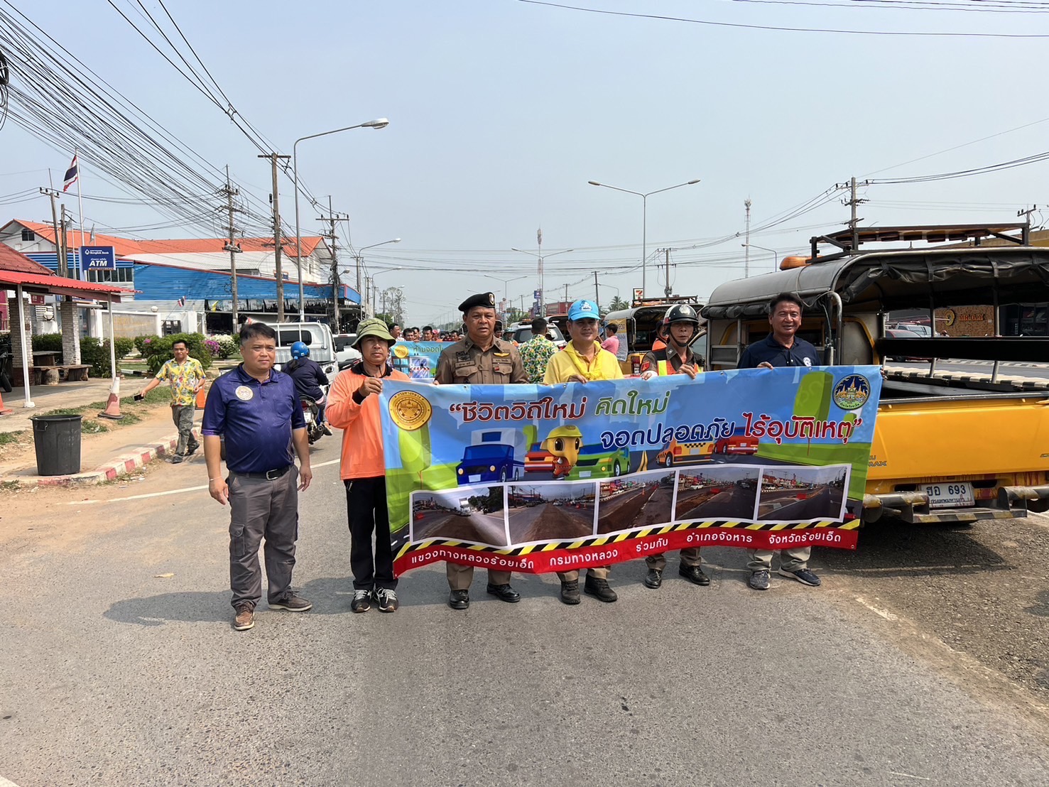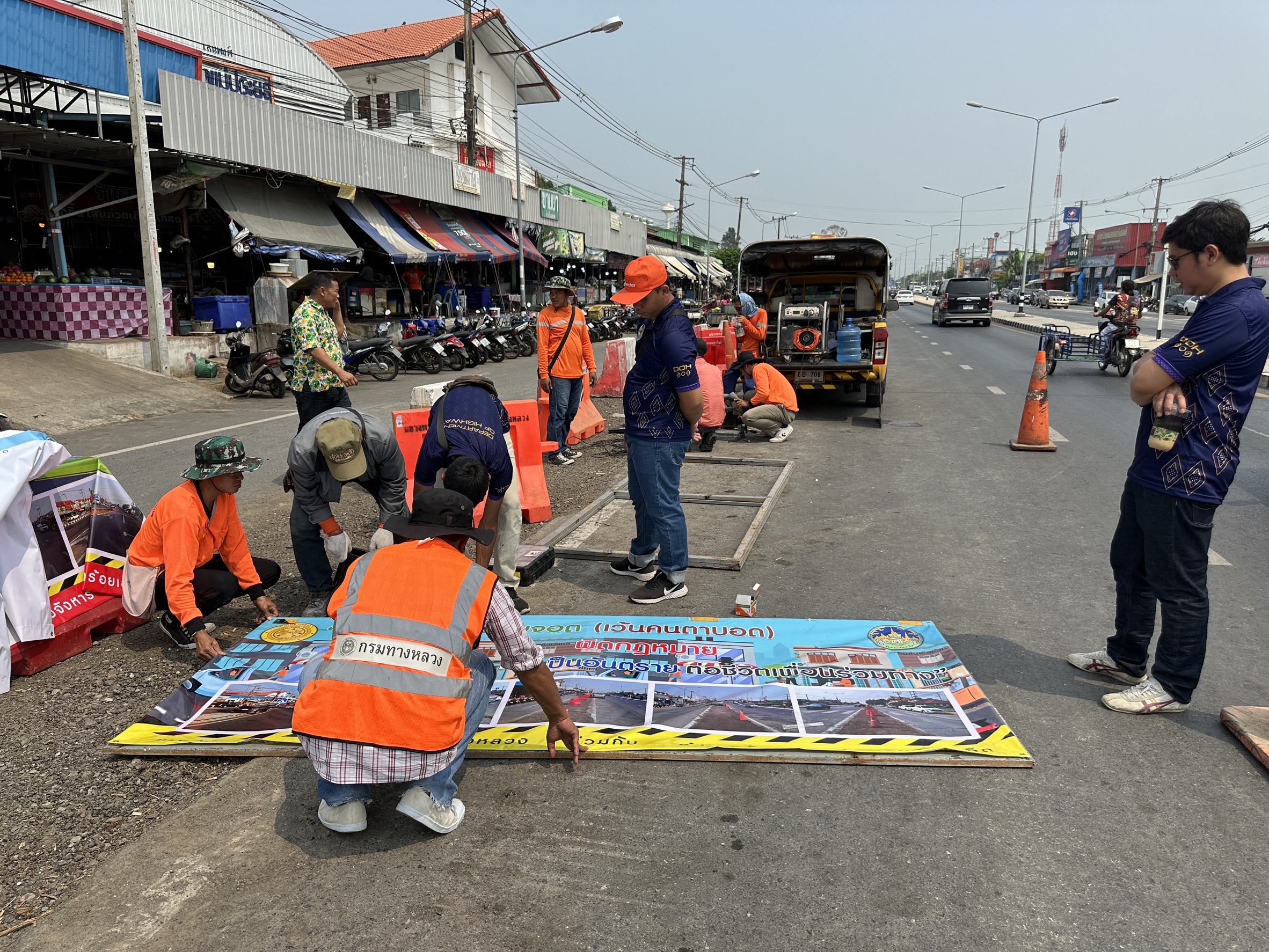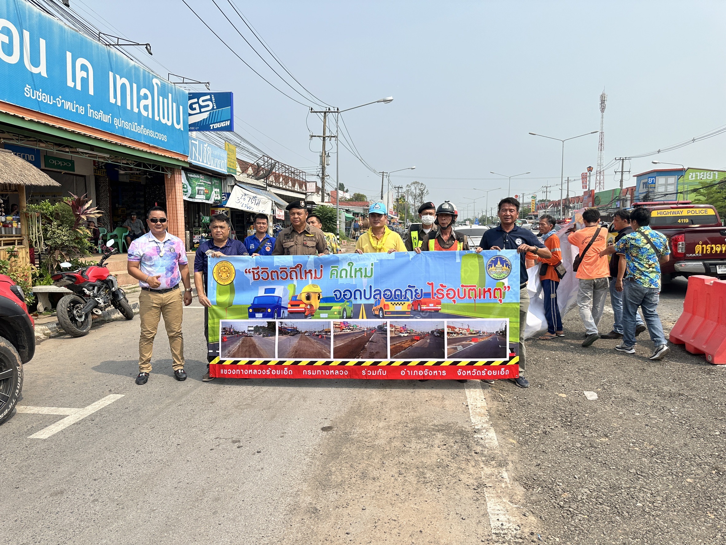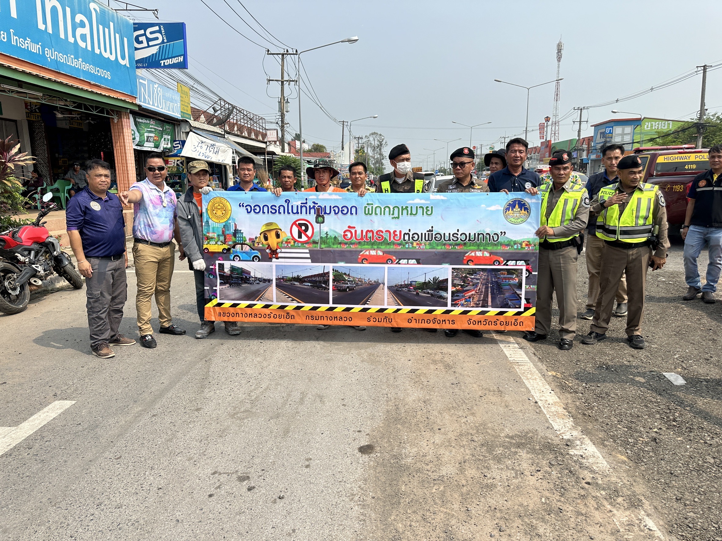 "ร่วมรณรงค์การปฏิบัติตามกฎหมาย ห้ามจอดในที่ห้ามจอด การจัดระเบียบการจราจร หน้าตลาดจังหาร ในทางหลวงหมายเลข 214 ตอน ลำชี – ร้อยเอ็ด ระหว่าง กม.37+500 - กม.38+300 ด้านขวาทาง"