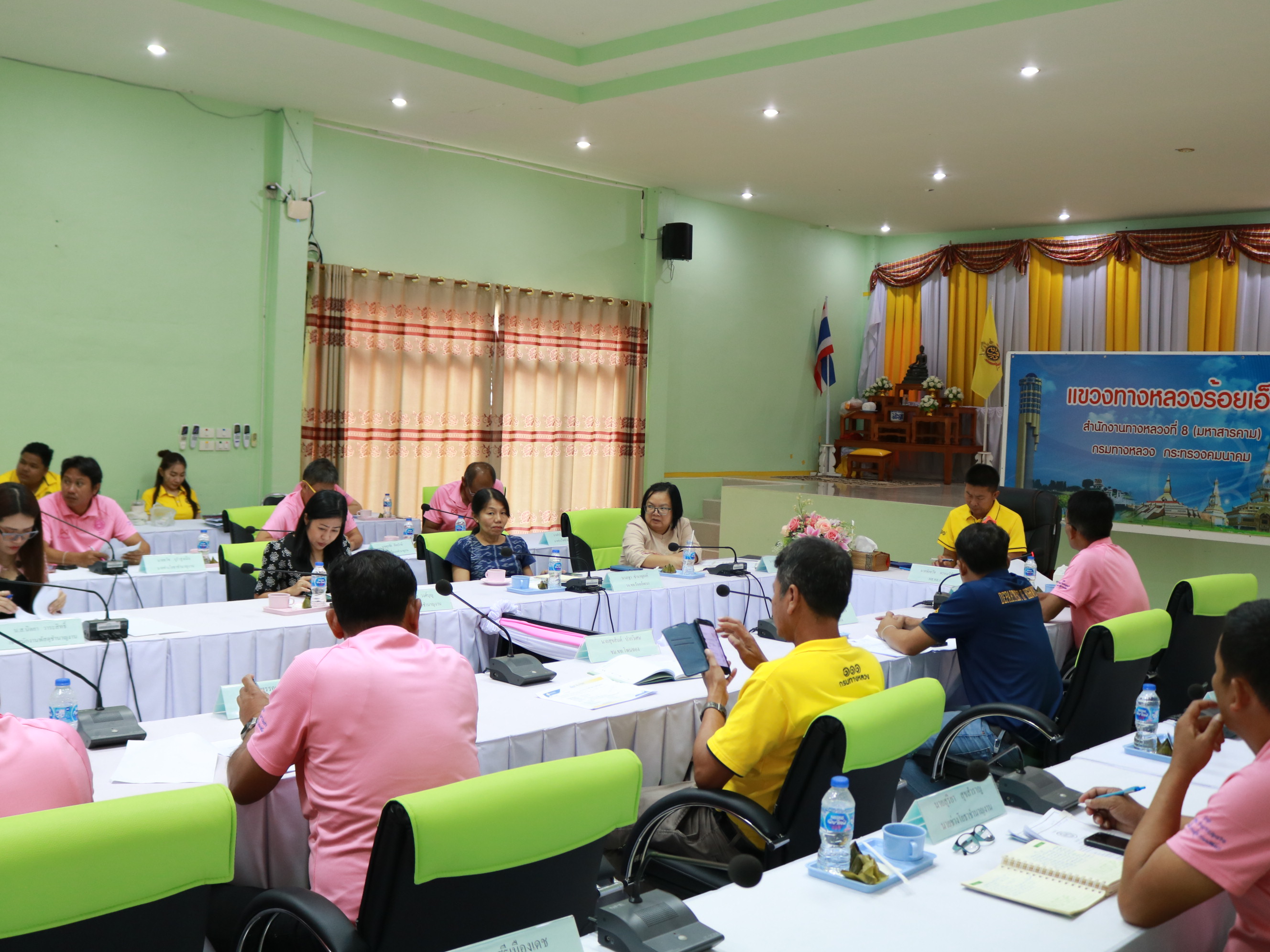 นายชัยธวัช พรหมวิชัย ผู้อำนวยการสำนักงานทางหลวงที่ 8 (มหาสารคาม) รักษาราชการแทน ผู้อำนวยการแขวงทางหลวงร้อยเอ็ด พร้อมด้วยนายสถิต คำพิชิต รองผู้อำนวยการแขวงทางหลวงร้อยเอ็ด ฝ่ายปฏิบัติการ ,นางสาวศิวพร เหมือนสีเลา รองผู้อำนวยการแขวงทางหลวงร้อยเอ็ด ฝ่ายวิศวกรรม ,นางรฐา ชำนาญยงค์ รองผู้อำนวยการแขวงทางหลวงร้อยเอ็ด ฝ่ายบริหาร และคณะเจ้าหน้าที่แขวงทางหลวงร้อยเอ็ด ร่วมประชุมเพื่อติดตามความก้าวหน้างานโครงการฯ ปี 67 ,งานโครงการฯ ปี 68 ปี 69 และสรุปผลการดำเนินงาน ปัญหาและอุปสรรค ณ ห้องประชุมจุลละโพธิ แขวงทางหลวงร้อยเอ็ด