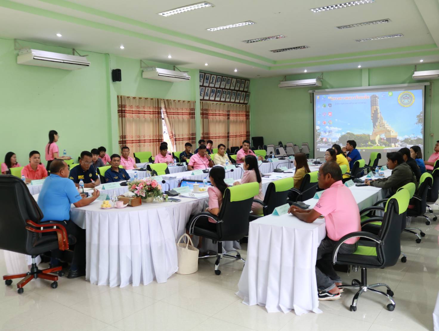 นายวุฒิพงศ์ คำภูแสน ผู้อำนวยการแขวงทางหลวงร้อยเอ็ด ,นายสถิต คำพิชิต รองผู้อำนวยการแขวงทางหลวงร้อยเอ็ด ฝ่ายปฏิบัติการ ,นางรฐา ชำนาญยงค์ รองผู้อำนวยการแขวงทางหลวงร้อยเอ็ด ฝ่ายบริหาร พร้อมคณะเจ้าหน้าที่ ทุกส่วน/ฝ่าย ร่วมประชุมเพื่อมอบนโยบายในการปฏิบัติงานในโอกาสเข้ารับตำแหน่งใหม่ ณ ห้องประชุมจุลละโพธิ แขวงทางหลวงร้อยเอ็ด