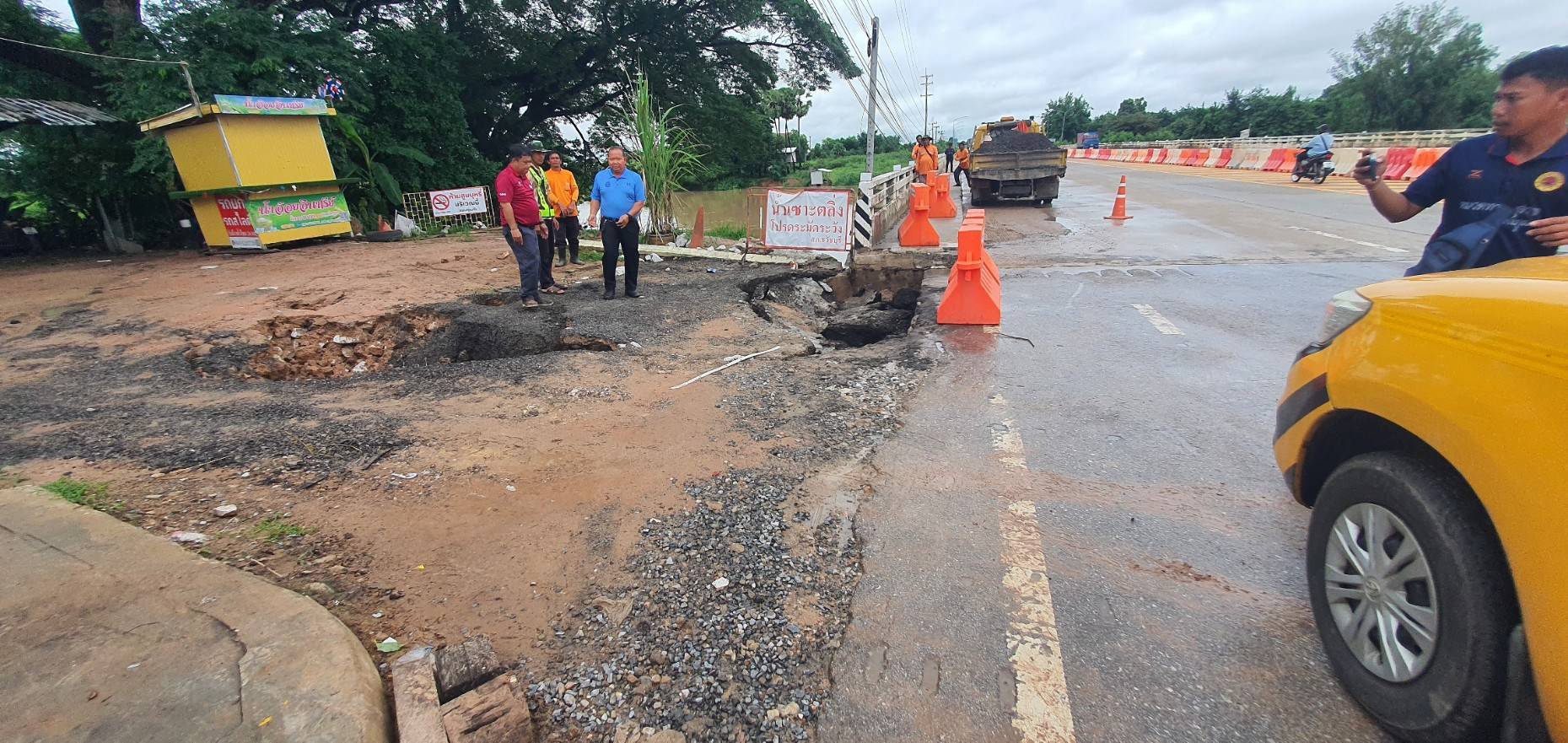 นายวุฒิพงศ์ คำภูแสน ผู้อำนวยการแขวงทางหลวงร้อยเอ็ด พร้อมด้วยนายณัฐพล เยี่ยมชัยภูมิ หัวหน้าหมวดทางหลวงเสลภูมิ ได้ร่วมลงพื้นที่ตรวจสอบแนะนำแก้ไขปัญหา น้ำจากท่อระบายไหลกัดเซาะคอสะพานแม่น้ำชีเกิดทรุดตัว ในทางหลวงหมายเลข 2044 ตอน ร้อยเอ็ด – หนองดง ที่ กม.21+500 ด้านซ้ายทาง