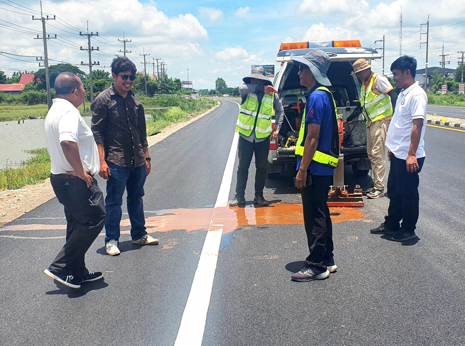 นายวุฒิพงศ์ คำภูแสน ผู้อำนวยการแขวงทางหลวงร้อยเอ็ด ประธานกรรมการตรวจรับพัสดุ พร้อมด้วยคณะกรรมการตรวจรับพัสดุ นายภูวสิษฎ์ เชื่อมชัยตระกูล ผู้อำนวยการส่วนแผนงาน สำนักงานทางหลวงที่ 8 ,นายสถิต คำพิชิต รองผู้อำนวยการแขวงทางหลวงร้อยเอ็ด ฝ่ายปฏิบัติการ ,นายยุทธศักดิ์ สอนสุภาพ วิศวกรโยธาปฏิบัติการ และนายพิทักษ์ ทาตะนาม นายช่างโยธาชำนาญงาน ผู้ควบคุมงาน ร่วมตรวจรับงานก่อสร้าง ตามสัญญา ที่ รอ.44/2567 (งวดสุดท้าย) ลงวันที่ 13 พฤษภาคม 2567 กิจกรรมบำรุงรักษาทางหลวง ปี 2567 งานบูรณะทางผิวแอสฟัลด์ ในทางหลวงหมายเลข 202 ตอน ห้วยลำเตา - เกษตรวิสัย ตอน 2 ระหว่าง กม.186+950 - กม.188+200 โดยมี ห้างหุ้นส่วนจำกัด อึ้งสุวรรณ เป็นผู้รับจ้าง
