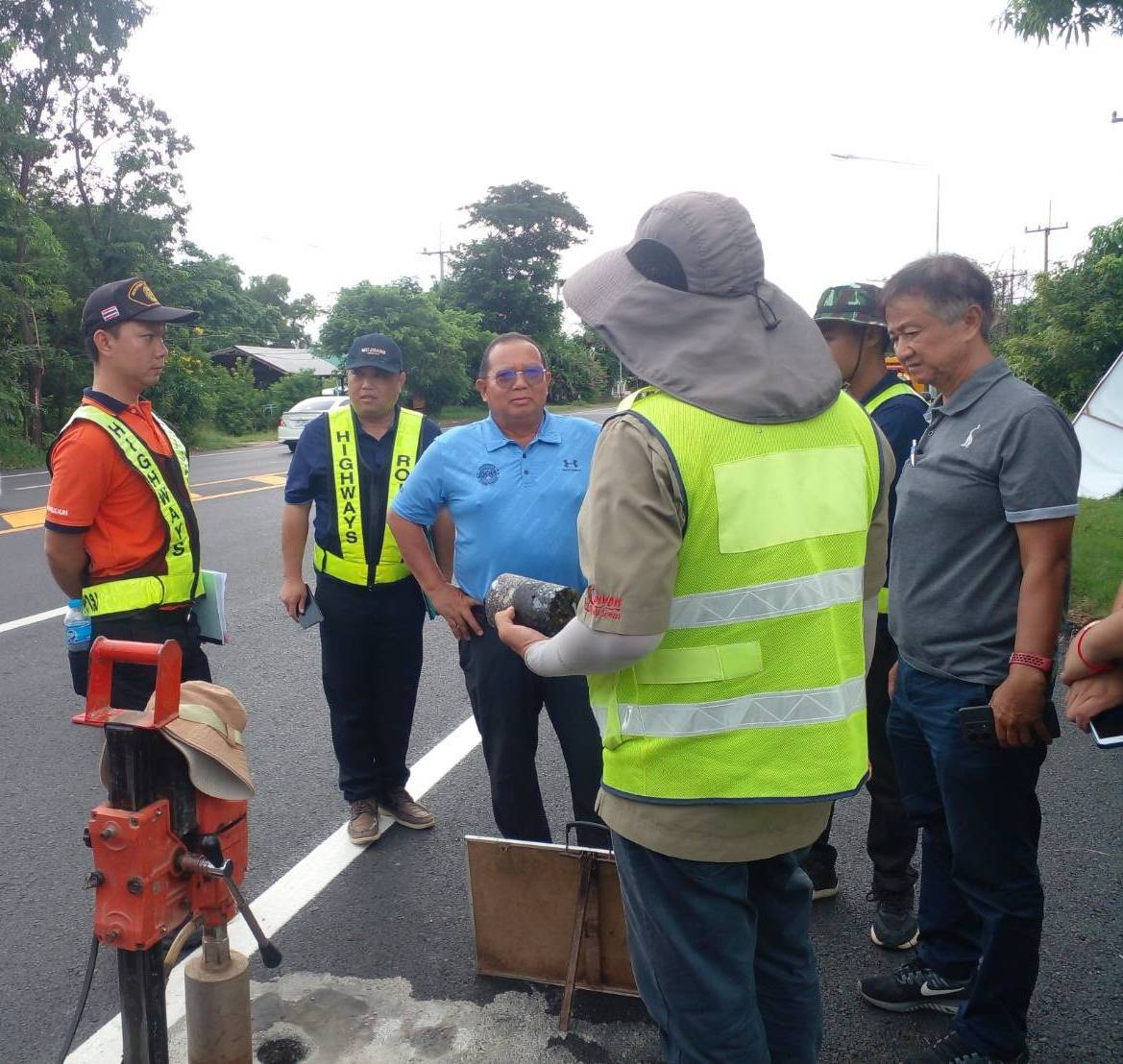 นายวุฒิพงศ์ คำภูแสน ผู้อำนวยการแขวงทางหลวงร้อยเอ็ด ประธานกรรมการตรวจรับพัสดุ พร้อมด้วยคณะกรรมการตรวจรับพัสดุ นายภูวสิษฏ์ เชื่อมชัยตระกูล ผู้อำนวยการส่วนแผนงาน สำนักงานทางหลวงที่ 8 ,นายวริทธิ์ธร สุทธมาตย์ วิศวกรโยธาปฏิบัติการ และนายณัฐพล เยี่ยมชัยภูมิ นายช่างโยธาชำนาญงาน ผู้ควบคุมงาน ร่วมตรวจรับงานก่อสร้าง ตามสัญญา ที่ รอ.48/2567 กิจกรรมบำรุงรักษาทางหลวง ปี 2567 งานปรับปรุงผิวทางแอสฟัลต์คอนกรีตเดิม นำกลับมาใช้ใหม่ ในทางหลวงหมายเลข 2044 ตอน ร้อยเอ็ด - หนองดง ตอน 1 ระหว่าง กม.9+585 - กม.9+840 และ กม.10+850 - กม.12+510 โดยมีห้างหุ้นส่วนจำกัด เซ่งฮวดโพนทอง เป็นผู้รับจ้าง