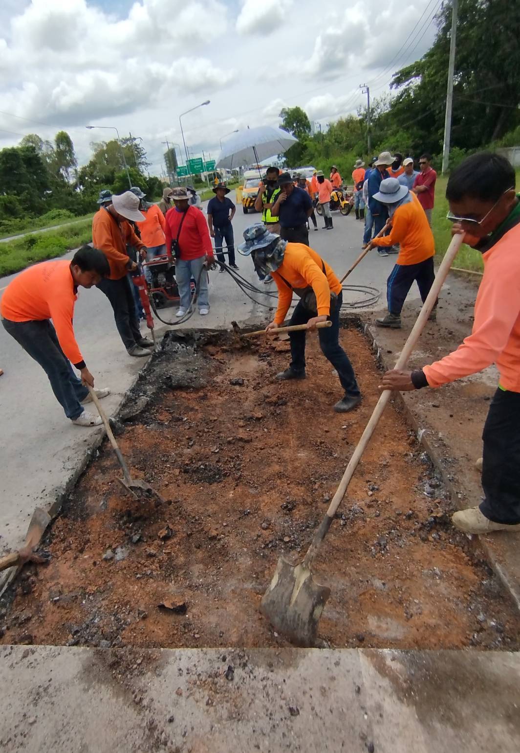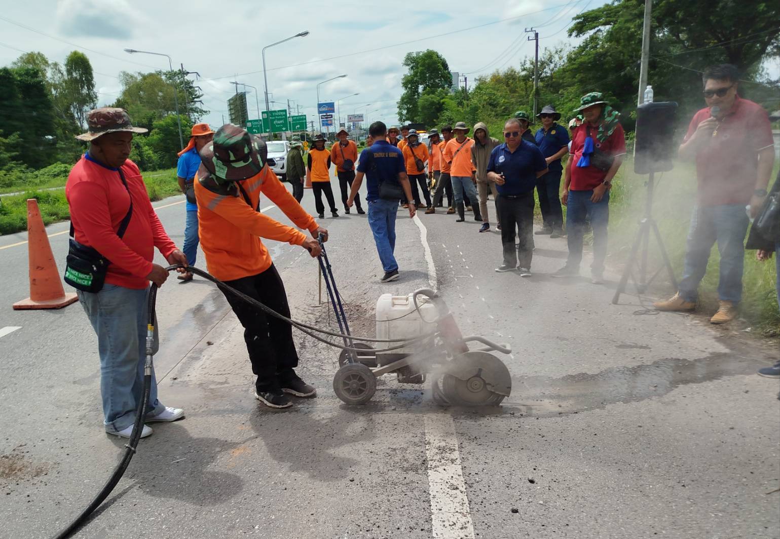 นายวุฒิพงศ์ คำภูแสน ผู้อำนวยการแขวงทางหลวงร้อยเอ็ด พร้อมด้วยนายสถิต คำพิชิต รองผู้อำนวยการแขวงทางหลวงร้อยเอ็ด ฝ่ายปฏิบัติการ และหัวหน้าหมวดทางหลวงในสังกัดแขวงทางหลวงร้อยเอ็ด ได้ร่วมลงพื้นที่จัดโครงการชุมชนนักปฏิบัติ (COP) สำนักงานทางหลวงที่ 8 แขวงทางหลวงร้อยเอ็ด งานบำรุงรักษาทางหลวง ด้วยวิธีการขุดซ่อมผิวทาง (Deep Patching) ครั้งที่ 1 ในทางหลวงหมายเลข 232 ตอน ถนนวงแหวนรอบเมืองร้อยเอ็ด ที่ กม.0+200 เพื่อร่วมกันเรียนรู้รูปแบบและวิธีการที่ดีที่สุด สามารถนำไปถ่ายทอดสู่ผู้ปฏิบัติ เพื่อเพิ่มประสิทธิภาพในการบำรุงทาง
