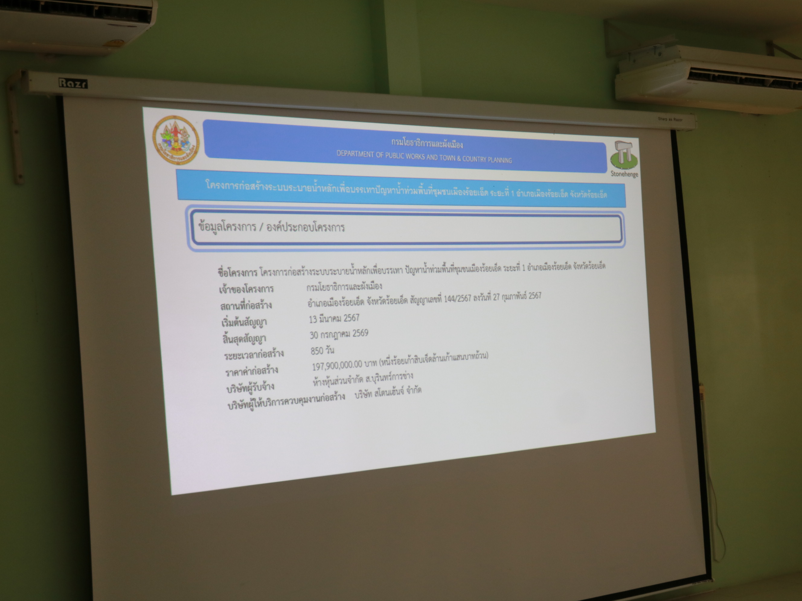 นายวุฒิพงศ์ คำภูแสน ผู้อำนวยการแขวงทางหลวงร้อยเอ็ด มอบหมายให้ นายสถิต คำพิชิต รองผู้อำนวยการแขวงทางหลวงร้อยเอ็ด ฝ่ายปฏิบัติการ ,นายศุภพรชัย ขามรัตน์ หัวหน้าหมวดทางหลวงเมืองสรวง ร่วมกับเทศบาลเมืองร้อยเอ็ด และสำนักงานโยธาธิการและผังเมืองจังหวัดร้อยเอ็ด ได้เข้าร่วมประชุมหารือแนวทางการดำเนินงาน โครงการก่อสร้างระบบระบายน้ำ เพื่อบรรเทาปัญหาน้ำท่วมพื้นที่ชุมชนเมืองร้อยเอ็ด โดย สำนักงานโยธาธิการและผังเมืองจังหวัดร้อยเอ็ด เป็นผู้รับจ้างฯ ณ ห้องประชุมจุลละโพธิ แขวงทางหลวงร้อยเอ็ด