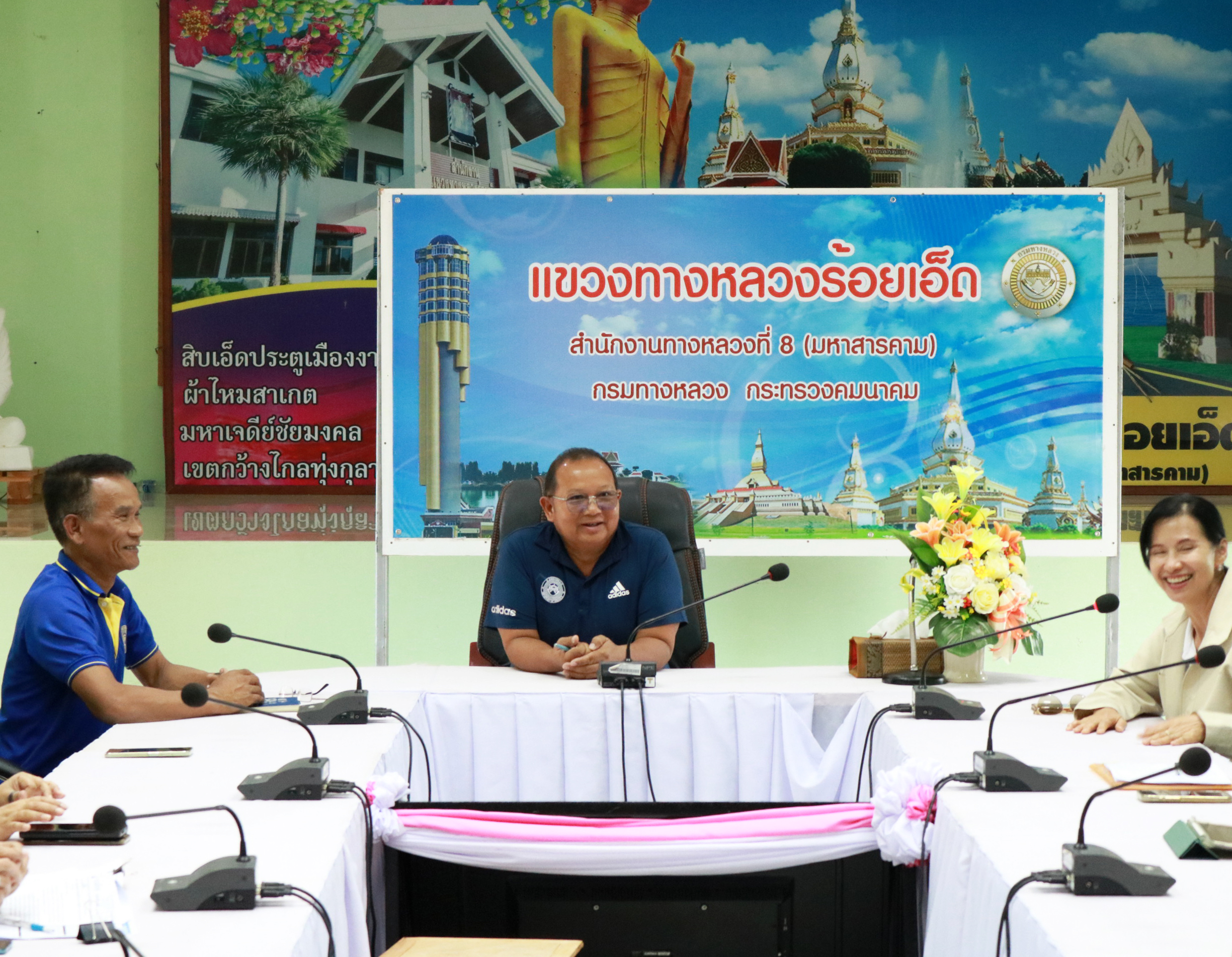 นายวุฒิพงศ์ คำภูแสน ผู้อำนวยการแขวงทางหลวงร้อยเอ็ด ,นายสถิต คำพิชิต รองผู้อำนวยแขวงทางหลวงร้อยเอ็ด ฝ่ายปฏิบัติการ ,นางสาวศิวพร เหมือนสีเลา รองผู้อำนวยการแขวงทางหลวงร้อยเอ็ด ฝ่ายวิศวกรรม ,นางรฐา ชำนาญยงค์ รองผู้อำนวยการแขวงทางหลวงร้อยเอ็ด ฝ่ายบริหาร และเจ้าหน้าที่แขวงทางหลวงร้อยเอ็ด ได้ร่วมให้การต้อนรับเจ้าหน้าที่จากสำนักแผนงาน กรมทางหลวง พร้อมให้ข้อมูลเพื่อประกอบการประเมินผล โครงการของกรมทางหลวง ประจำปีงบประมา พ.ศ. 2568 ณ ห้องประชุมจุลละโพธิ แขวงทางหลวงร้อยเอ็ด