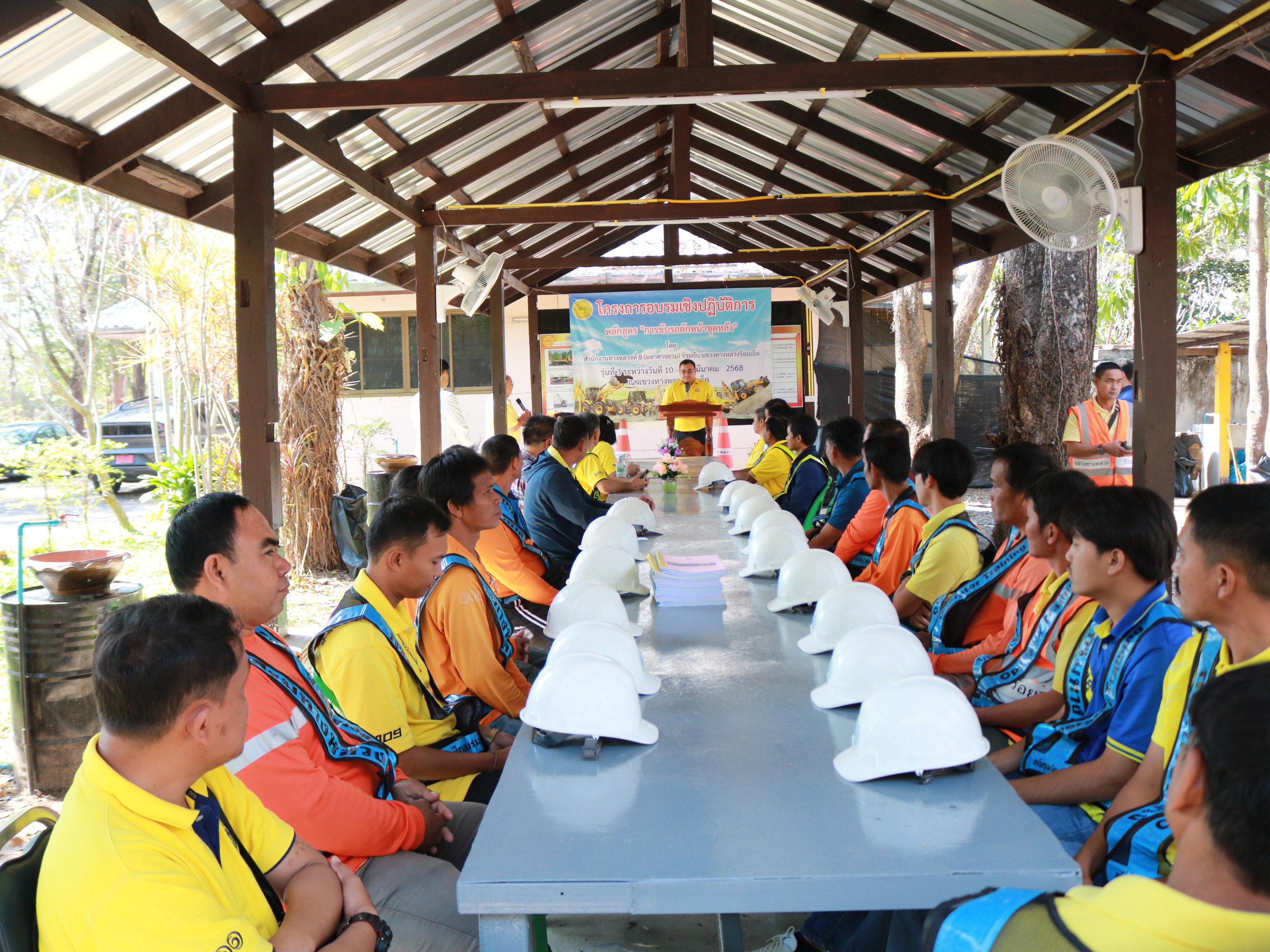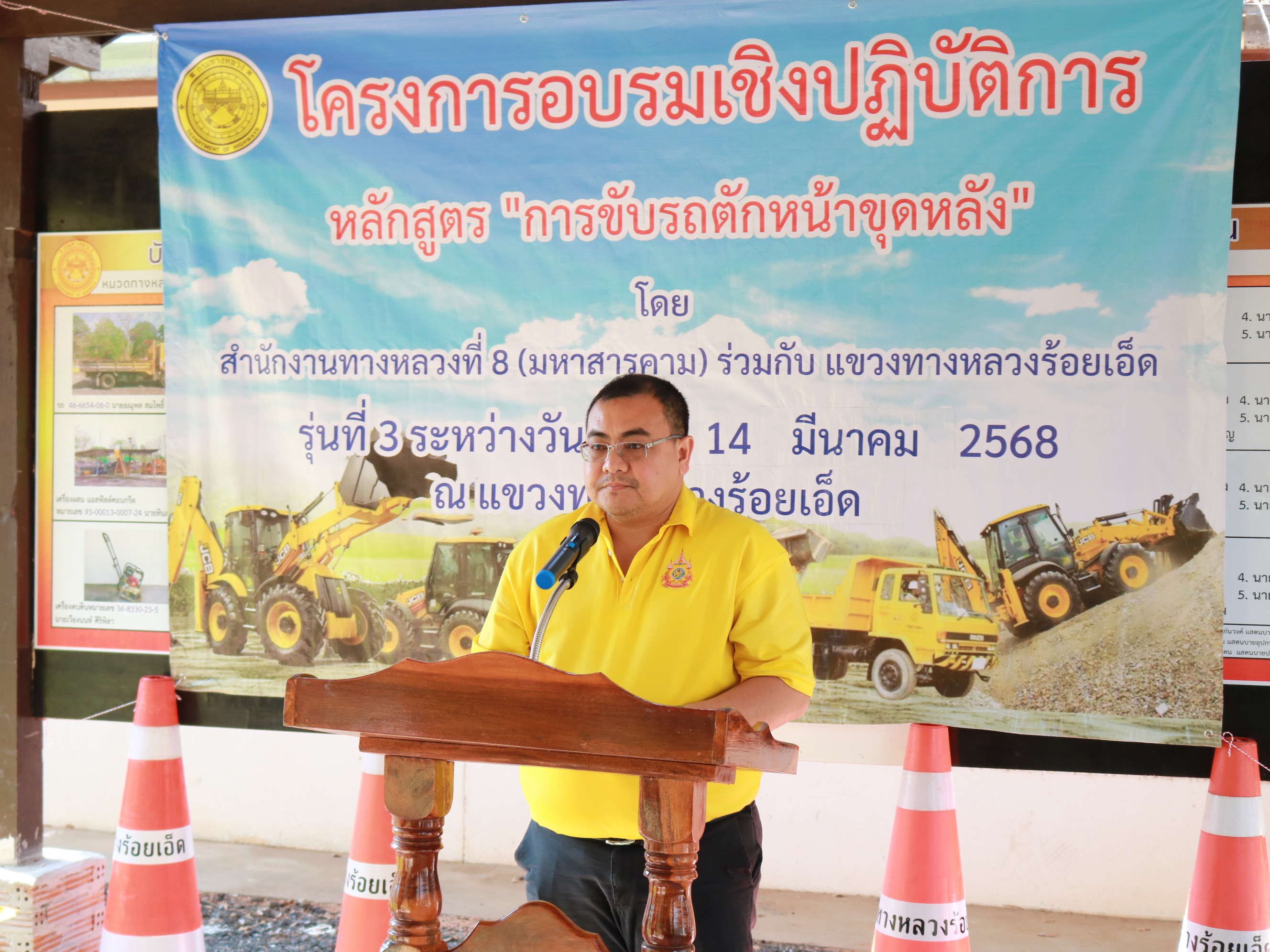 นายราชศักดิ์ สุทธินวล ผู้อำนวยการสำนักงานทางหลวงที่ 8 เป็นประธานในพิธี พร้อมด้วยนายวุฒิพงศ์ คำภูแสน ผู้อำนวยการแขวงทางหลวงร้อยเอ็ด และรองผู้อำนวยการแขวงทางหลวงร้อยเอ็ด ร่วมเปิดโครงการอบรมเชิงปฏิบัติการหลักสูตร “การขับรถตักหน้าขุดหลัง” รุ่นที่ 3 ระหว่าง วันที่ 10 – 14 มีนาคม 256 ดำเนินการฝึกอบรมโดย ส่วนเครื่องกล สำนักงานทางหลวงที่ 8 (มหาสารคาม) ณ หมวดทางหลวงเมืองสรวง แขวงทางหลวงร้อยเอ็ด