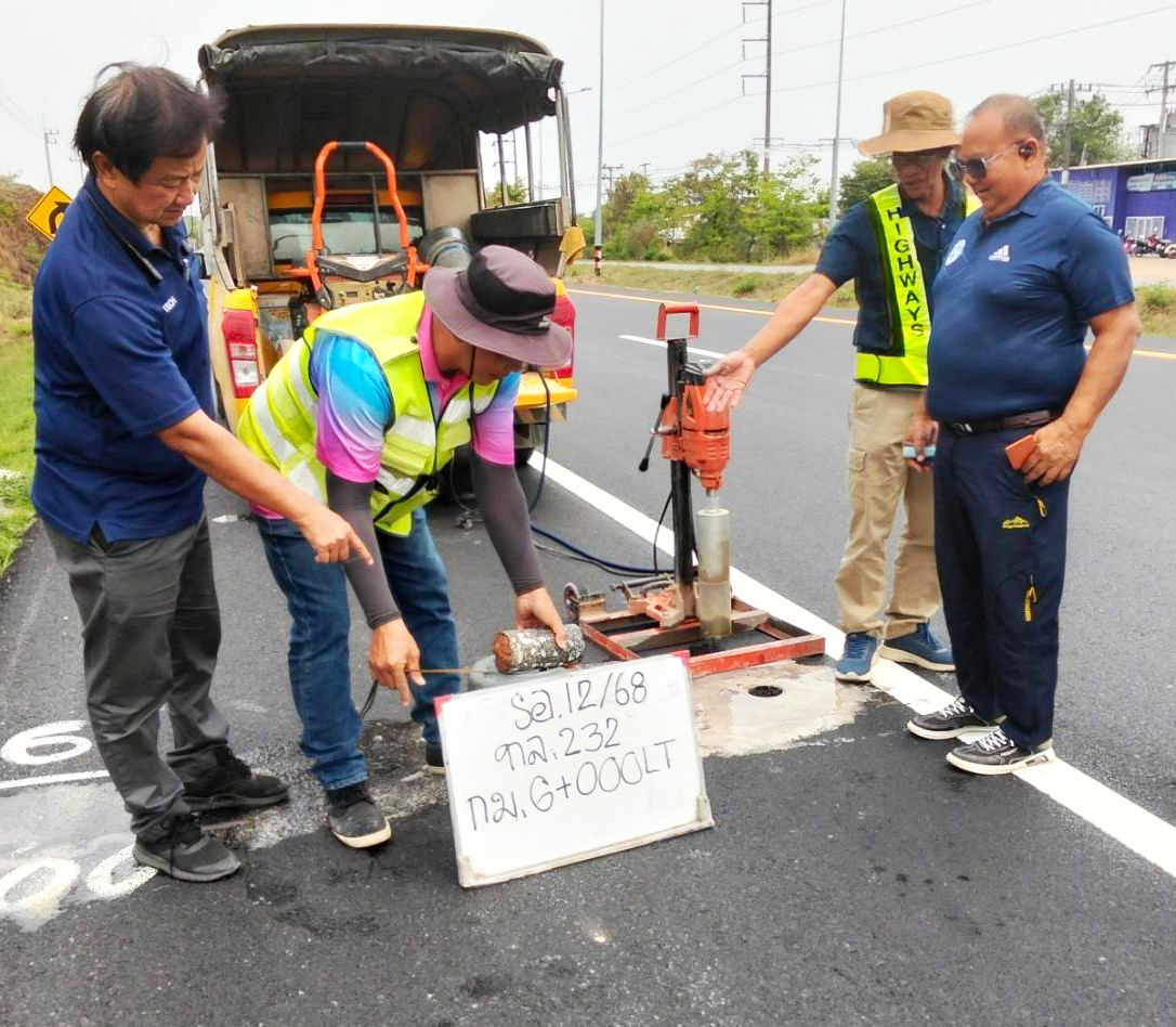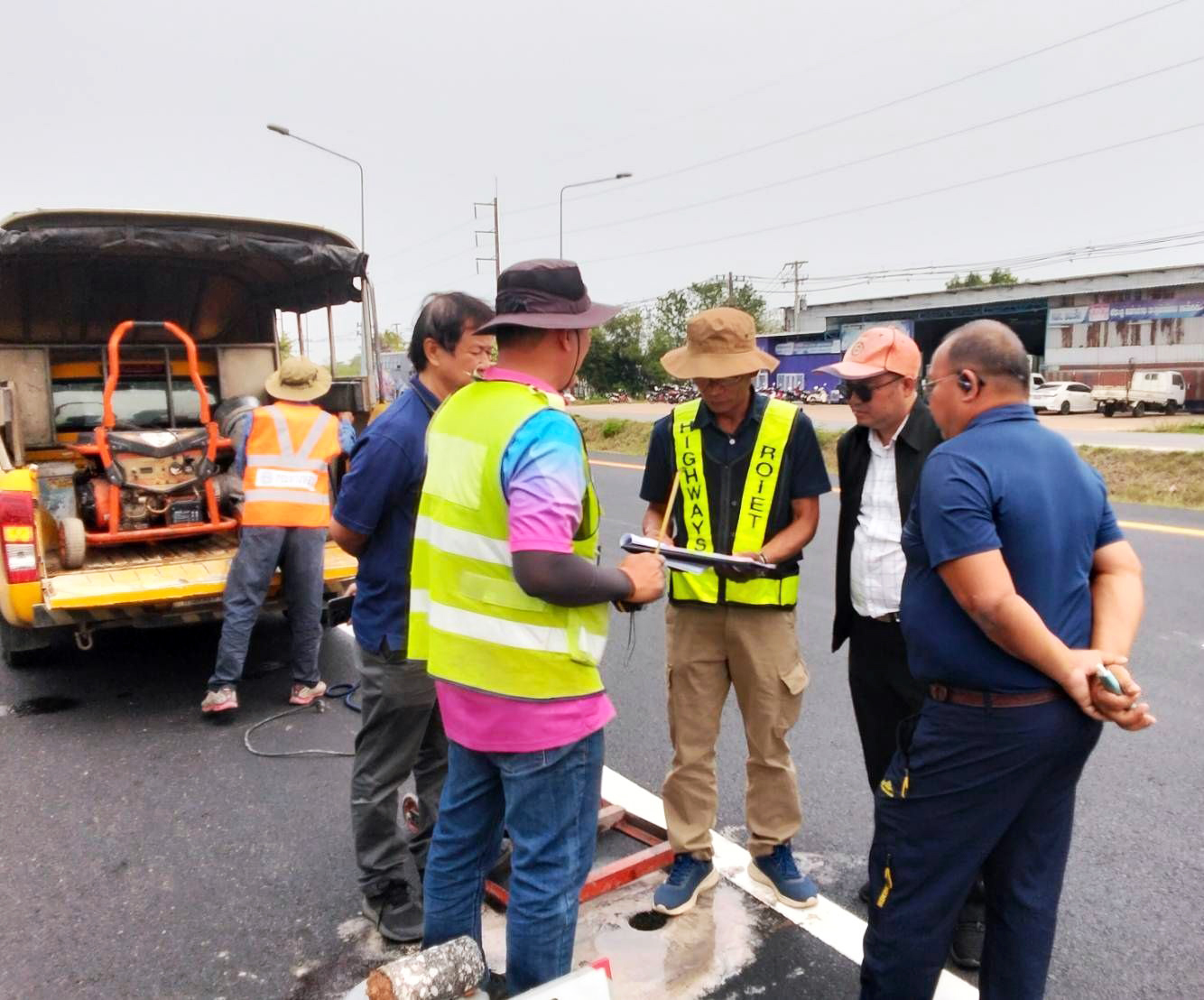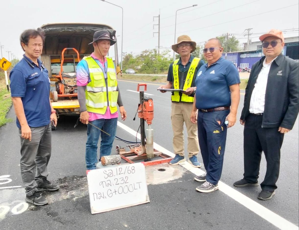 ร่วมตรวจรับงานก่อสร้าง ตามสัญญา ที่ รอ.12/2568 กิจกรรมบำรุงรักษาทางหลวง ปี 2568 งานปรับปรุงผิวทางแอสฟัลต์คอนกรีตเดิม นำกลับมาใช้ใหม่ (IN PLACE) ในทางหลวงหมายเลข 232 ตอน ถนนวงแหวนรอบเมืองร้อยเอ็ด ตอน 8 ระหว่าง กม.5+400 - กม.8+280 (LT) โดยมี ห้างหุ้นส่วนจำกัด เซ่งฮวดโพนทอง เป็นผู้รับจ้าง