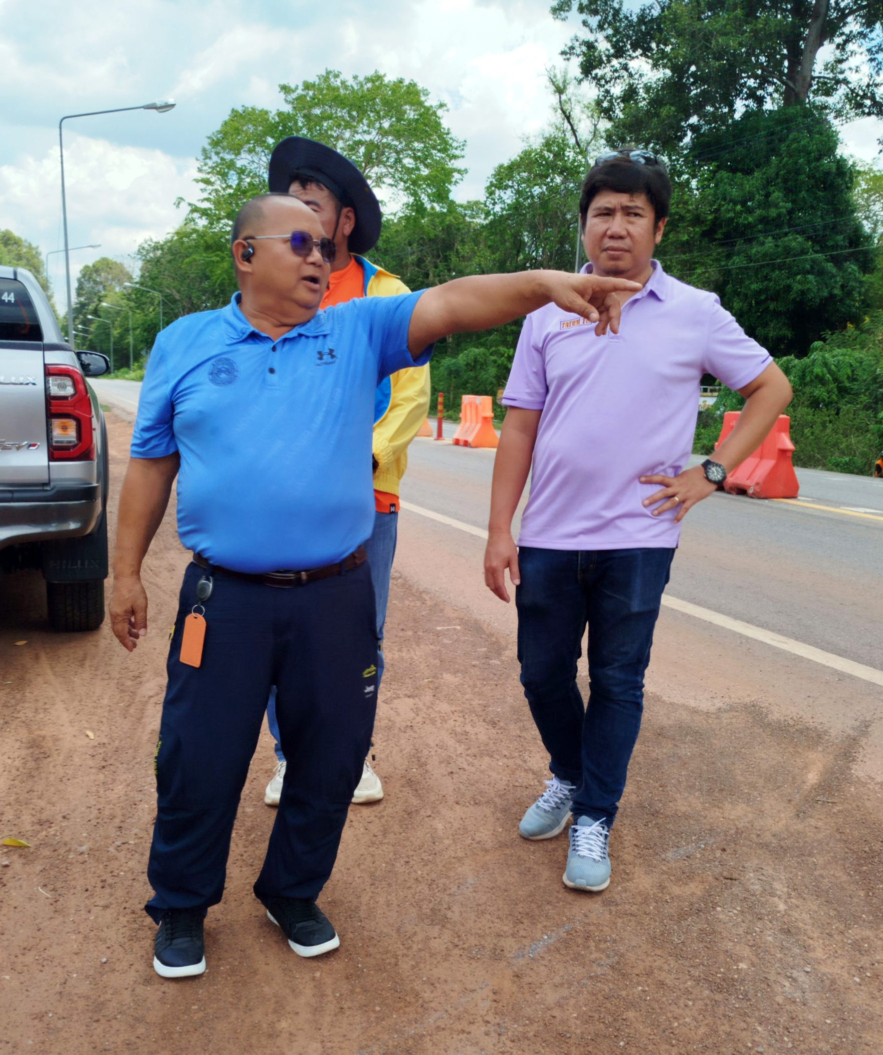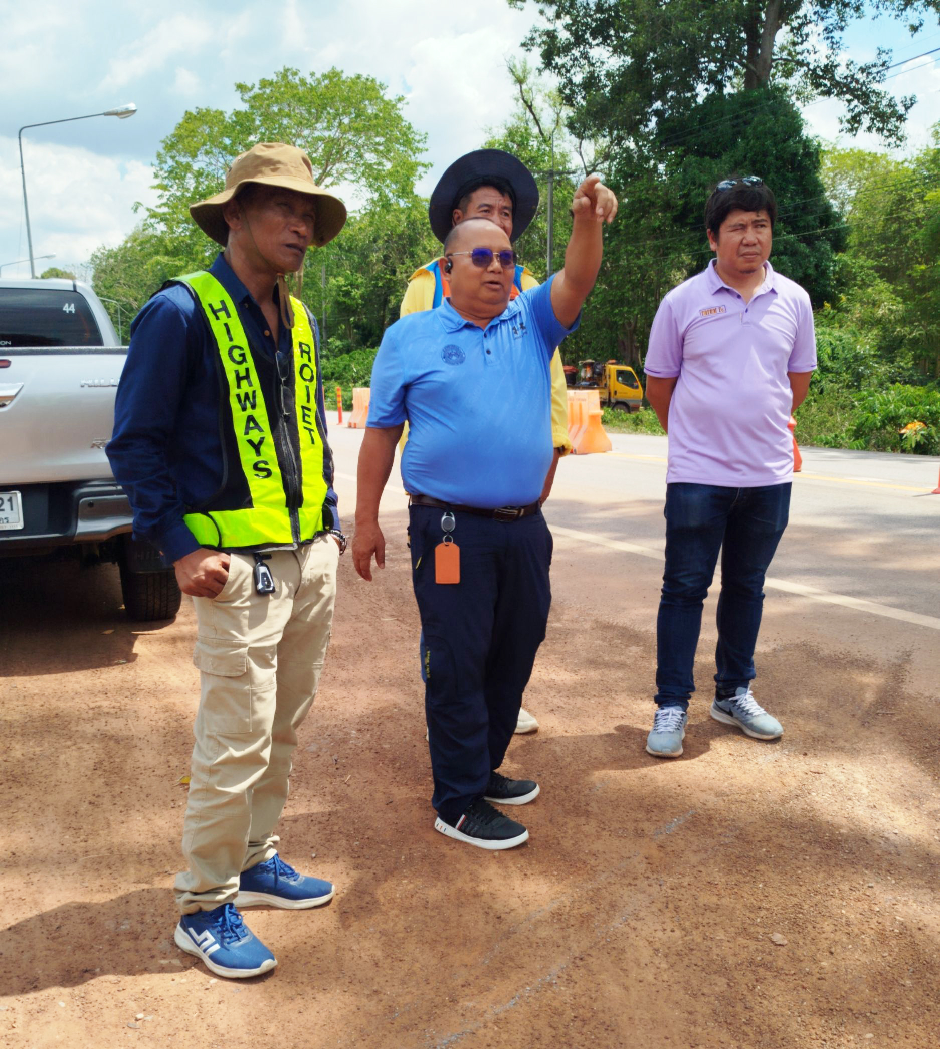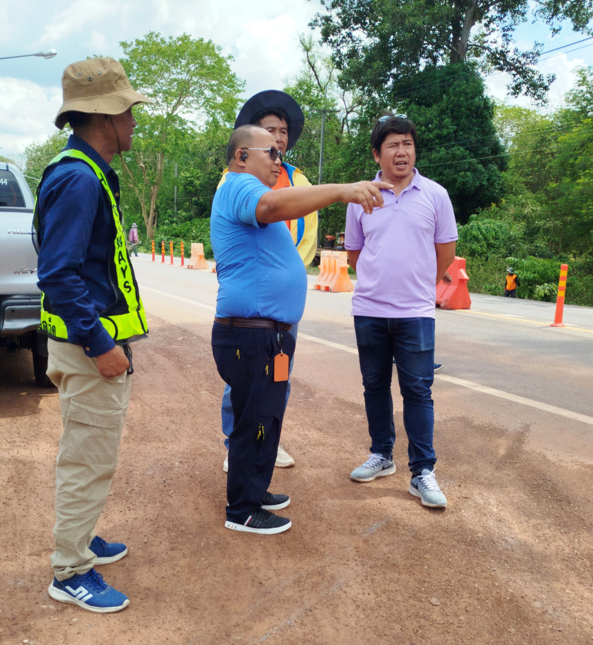 “ร่วมลงพื้นที่ตรวจสอบกายภาพทางหลวงบริเวณที่เกิดอุบัติเหตุบ่อยครั้ง บริเวณแยกเทศบาลโนนชัยศรี ในทางหลวงหมายเลข 2046 ตอน บ้านงิ้ว - ลำน้ำยัง ที่กม.18+200”