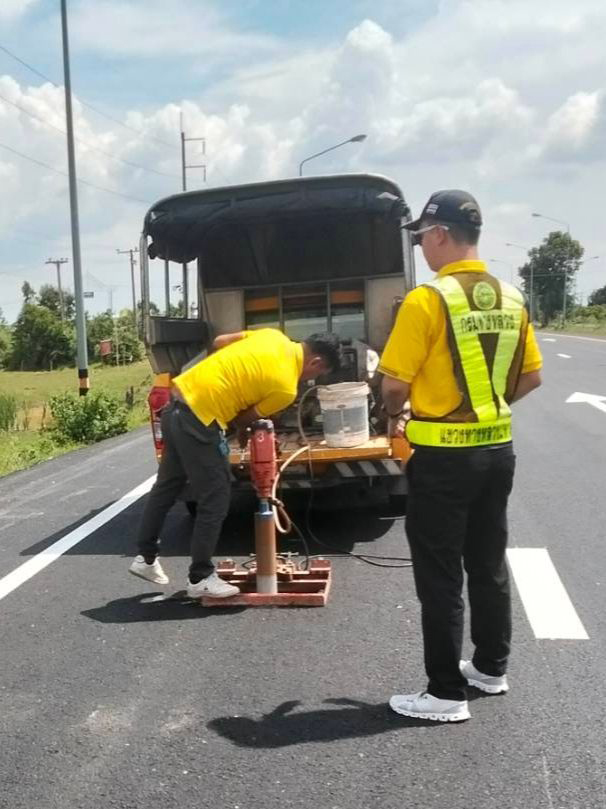 นายวริทธิ์ธร สุทธมาตย์ วิศวกรโยธาปฏิบัติการ และนายพิทักษ์ ทาตะนาม หัวหน้าหมวดทางหลวงเกษตรวิสัย ผู้ควบคุมงาน