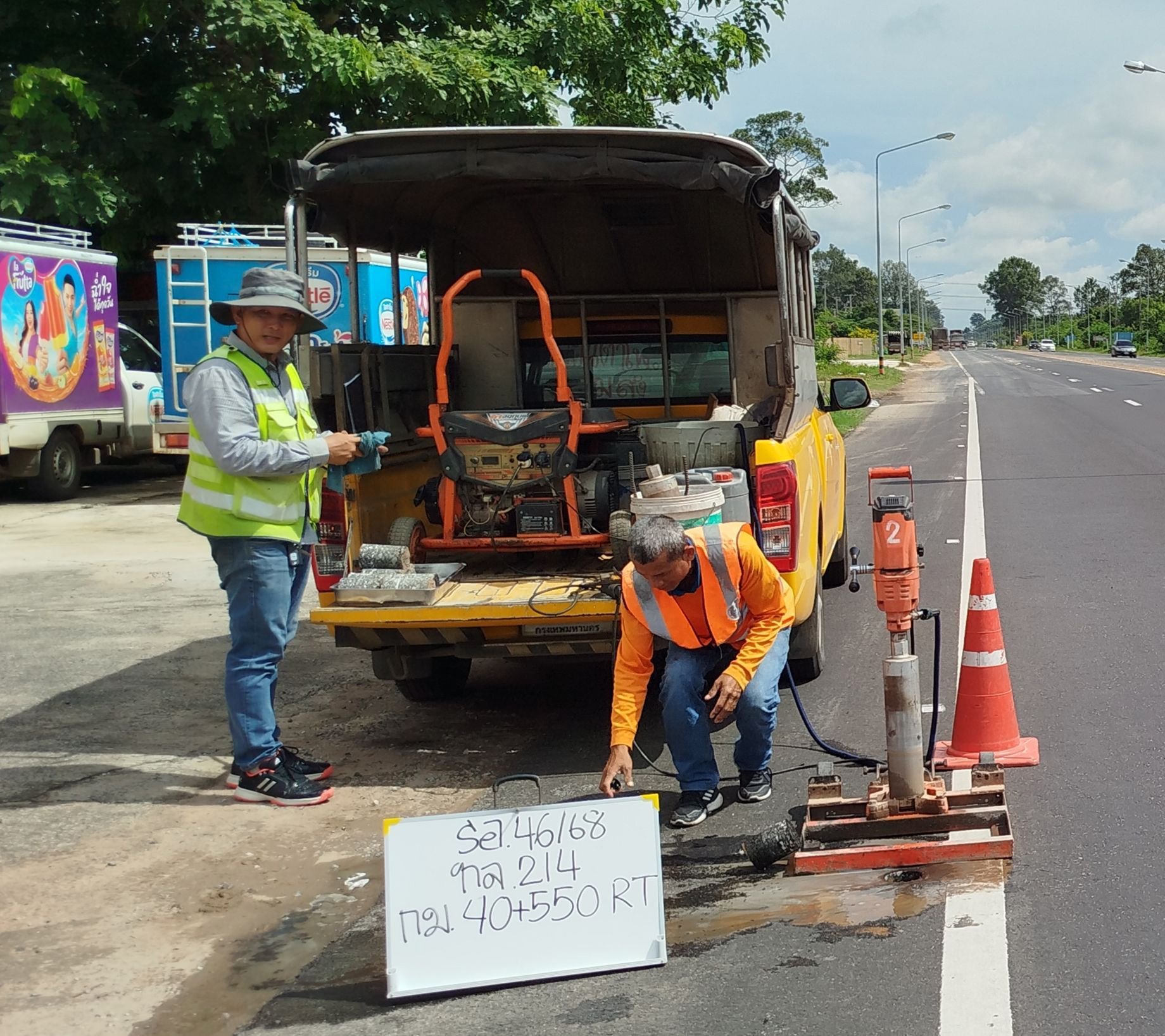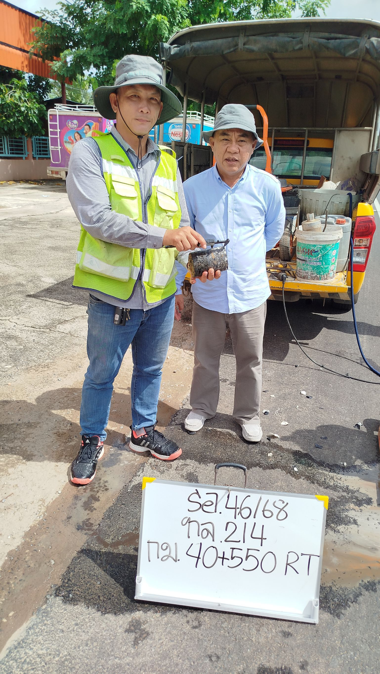 ร่วมตรวจรับงานก่อสร้าง ตามสัญญา ที่ รอ.46/2568 กิจกรรมอำนวยความปลอดภัยทางถนนประจำปี 2568 งานอำนวยความปลอดภัยเพื่อป้องกันและแก้ไขอุบัติเหตุทางถนน งานปรับปรุงทางหลวง ในทางหลวงหมายเลข 214 ตอน ลำชี - ร้อยเอ็ด ตอน 2 ระหว่าง กม.40+150 - กม.40+600 โดยมี บริษัท วรัญญาเรียลเอสเตท จำกัด เป็นผู้รับจ้าง