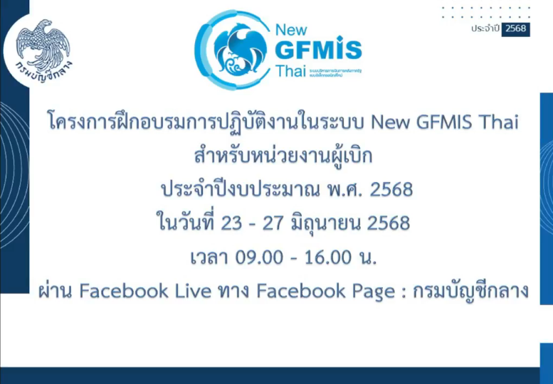 “เข้าร่วมโครงการฝึกอบรมการปฏิบัติงานในระบบ New GFMIS Thai สำหรับหน่วยงานผู้เบิก ประจำปีงบประมาณ พ.ศ. 2568”