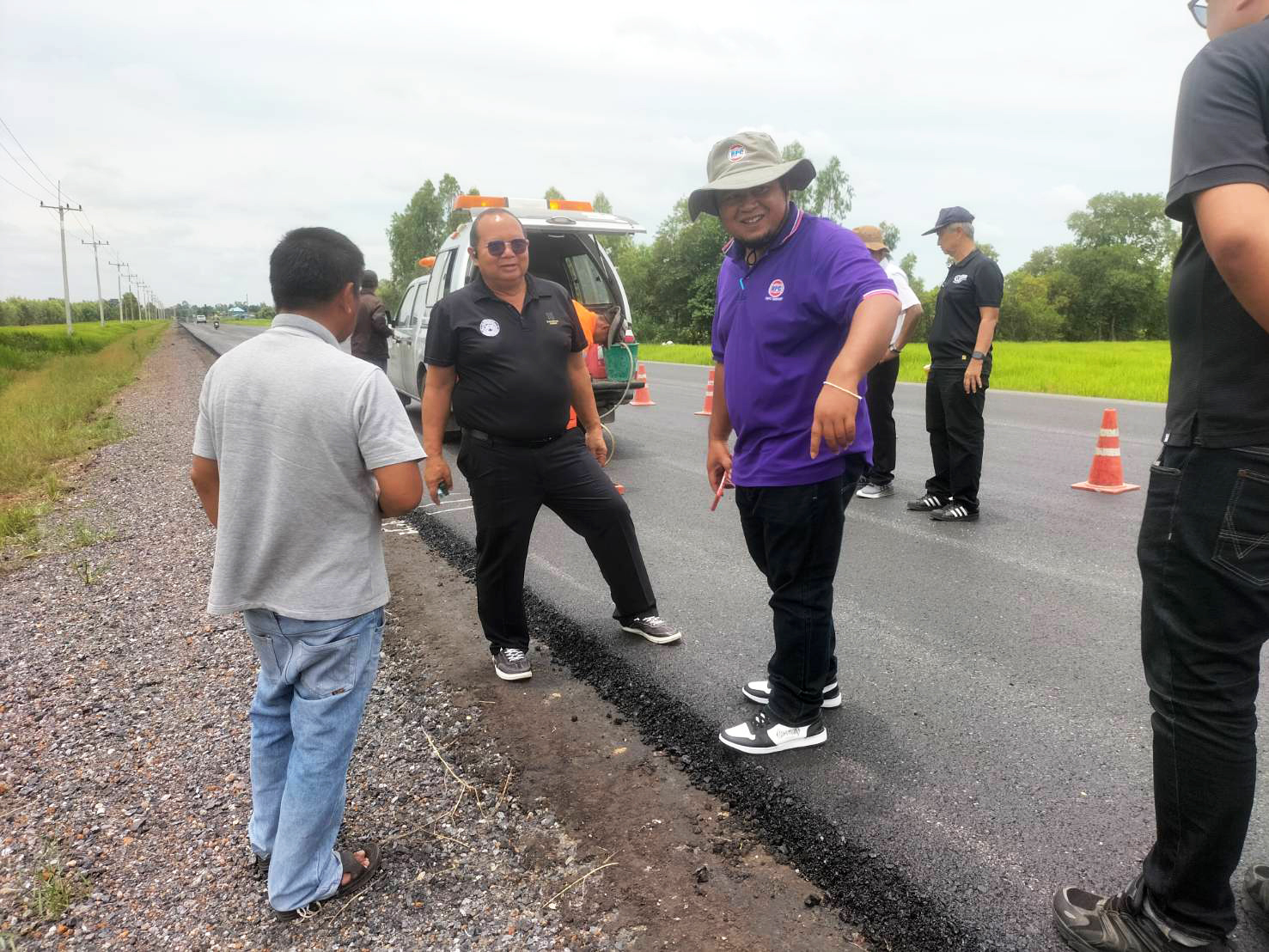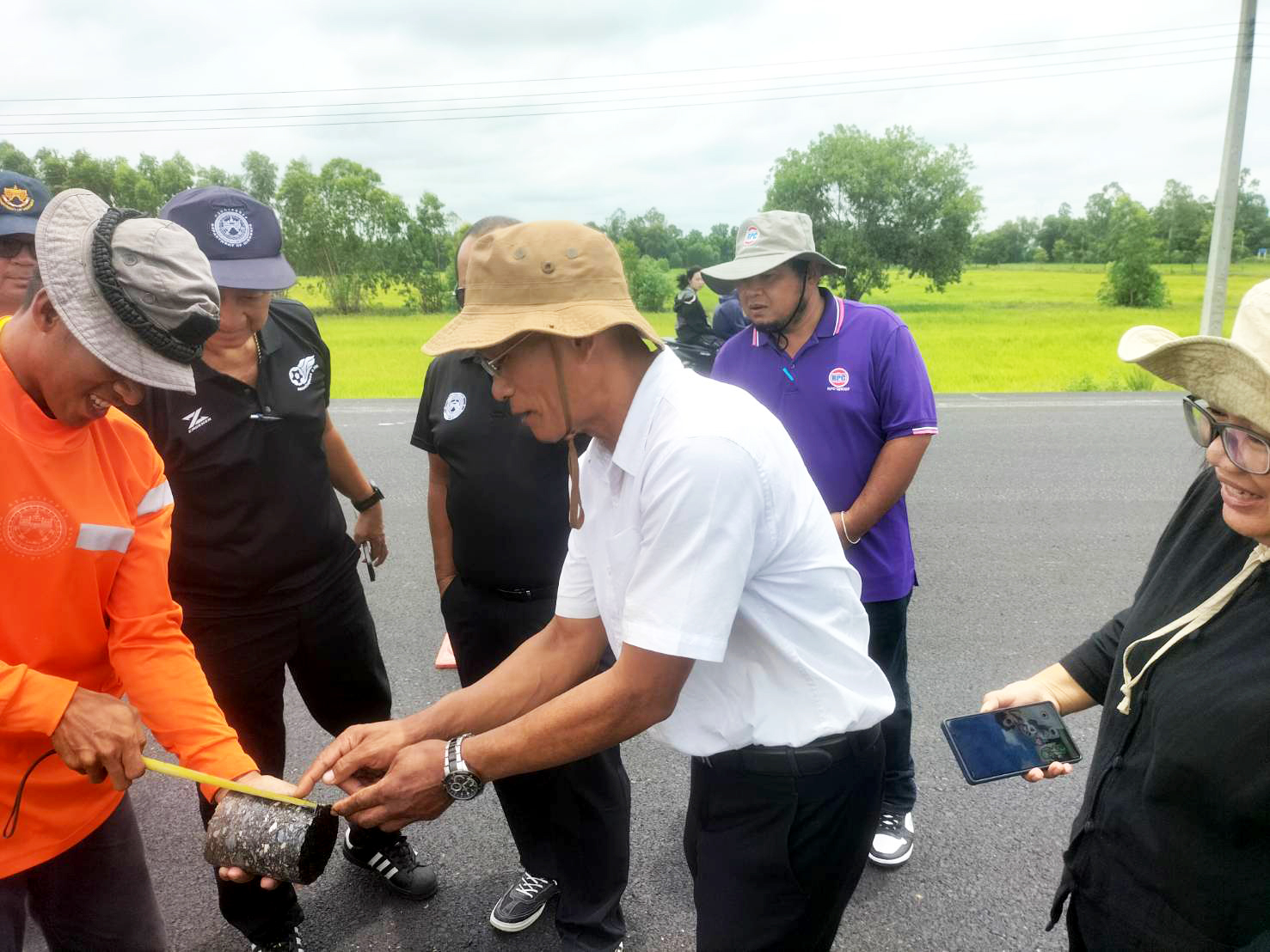 ร่วมตรวจรับงานก่อสร้าง ตามสัญญา ที่ รอ.14/2568 (งวดที่ 2) โครงการก่อสร้างโครงข่ายทางหลวงแผ่นดิน ประจำปีงบประมาณ พ.ศ. 2568 กิจกรรมก่อสร้างเพิ่มไหล่ทาง ในทางหลวงหมายเลข 214 ตอน จตุรพักตพิมาน – ห้วยพลับพลา ระหว่าง กม.103+209 - กม.109+975 โดยมี ห้างหุ้นส่วนจำกัด อาร์พีซี แอสฟัลท์ เป็นผู้รับจ้าง