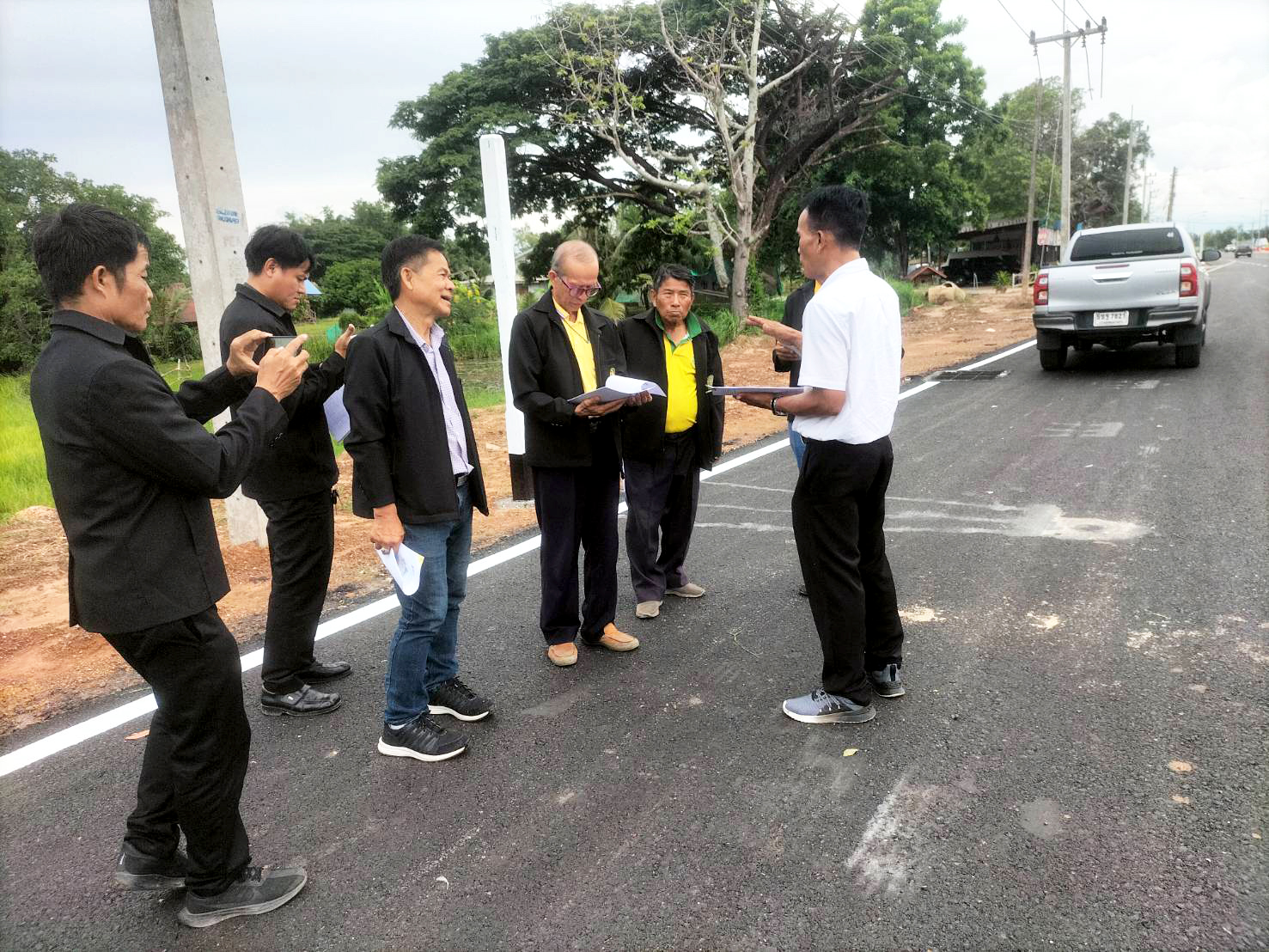 นายสถิต คำพิชิต รองผู้อำนวยการแขวงทางหลวงร้อยเอ็ด ฝ่ายปฏิบัติการ ให้การต้อนรับคณะกรรมการธรรมาภิบาลจังหวัดร้อยเอ็ด ลงพื้นที่สอดส่องโครงการตามแผนปฏิบัติราชการกลุ่มจังหวัดภาคตะวันออกเฉียงเหนือตอนกลาง ประจำปีงบประมาณ พ.ศ. 2568 โครงการพัฒนาโครงข่ายคมนาคมทางบกเชื่อมโยงกลุ่มจังหวัดและภูมิภาค กิจกรรมเพิ่มประสิทธิภาพทางหลวงหมายเลข 2044 ตอน หนองดง - โพนทอง ระหว่าง กม.42+800 - กม.44+198 ตำบลสระนกแก้ว อำเภอโพนทอง จังหวัดร้อยเอ็ด