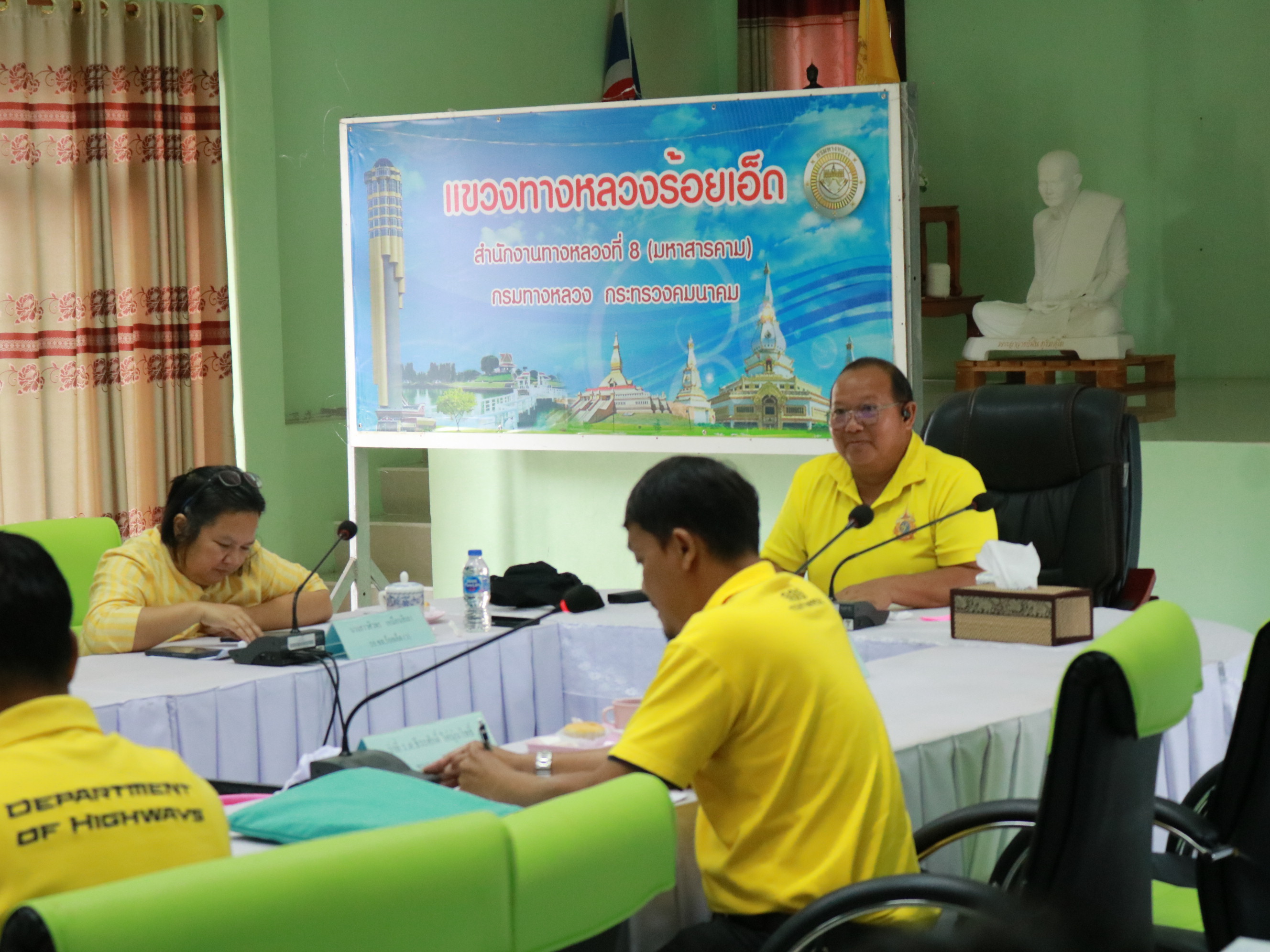 นายวุฒิพงศ์ คำภูแสน ผู้อำนวยการแขวงทางหลวงร้อยเอ็ด พร้อมด้วย นายสถิต คำพิชิต รองผู้อำนวยการแขวงทางหลวงร้อยเอ็ด ฝ่ายปฏิบัติการ ,นางสาวศิวพร เหมือนสีเลา รองผู้อำนวยการแขวงทางหลวงร้อยเอ็ด ฝ่ายวิศวกรรม ,นางรฐา ชำนาญยงค์ รองผู้อำนวยการแขวงทางหลวงร้อยเอ็ด ฝ่ายบริหาร และคณะเจ้าหน้าที่แขวงทางหลวงร้อยเอ็ด ได้ร่วมประชุมประจำเดือนกันยายน 2568 เพื่อสรุปผลการเบิกจ่ายงบประมาณปี 2568 ,สรุปความก้าวหน้างานโครงการฯ ปี 2568 และสรุปผลการดำเนินงาน ปัญหาและอุปสรรคในการดำเนินงาน ณ ห้องประชุมจุลละโพธิ แขวงทางหลวงร้อยเอ็ด