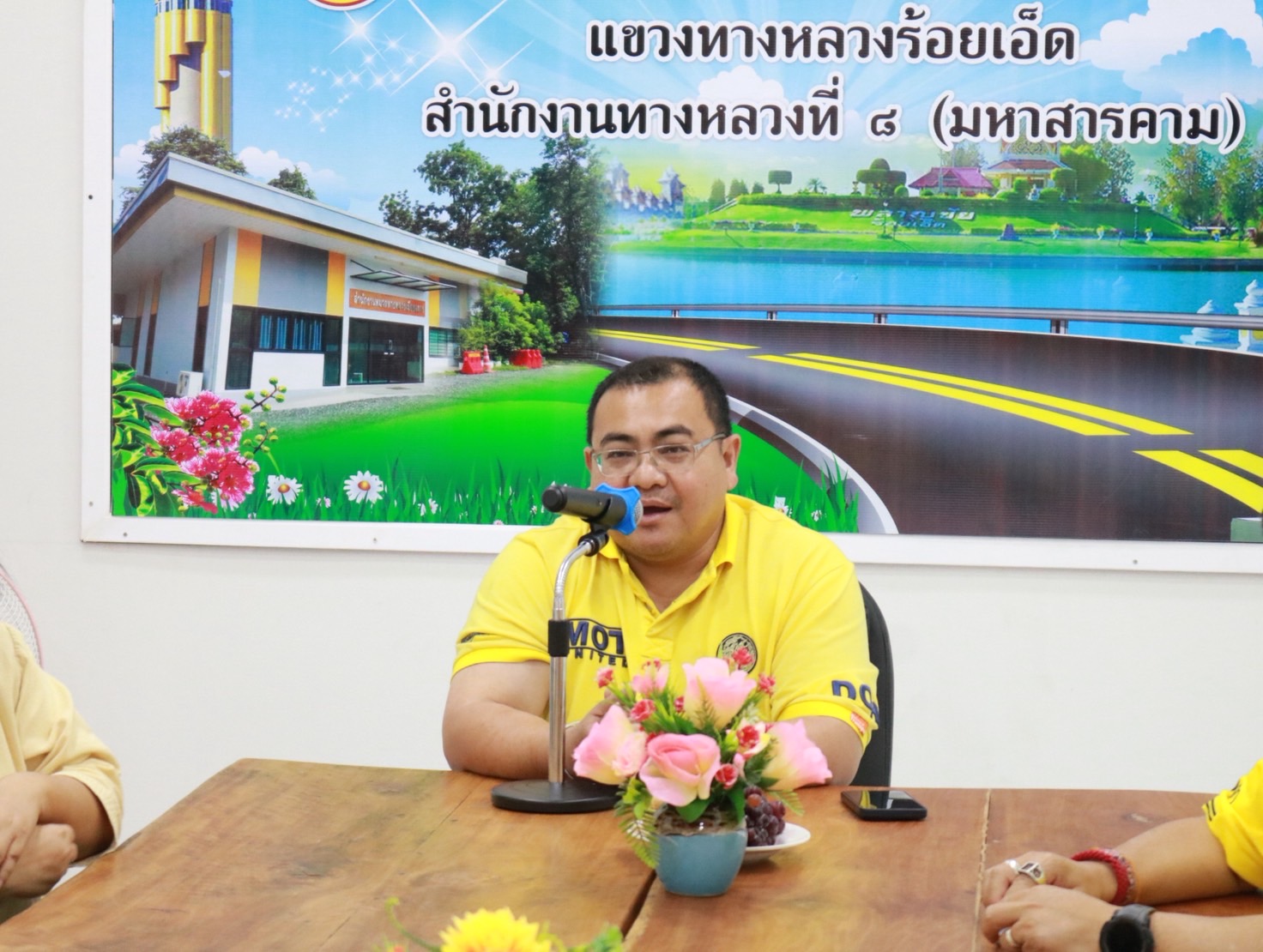 นายราชศักดิ์ สุทธินวล ผู้อำนวยการสำนักงานทางหลวงที่ 8 (มหาสารคาม) พร้อมคณะฯ ลงพื้นที่ตรวจเยี่ยม หมวดทางหลวงเมืองสรวง แขวงทางหลวงร้อยเอ็ด เพื่อเป็นการสร้างขวัญและกำลังใจในการปฏิบัติงานของเจ้าหน้าที่หมวดทางหลวงเมืองสรวง โดยมี นางสาวศิวพร เหมือนสีเลา รองผู้อำนวยการแขวงทางหลวงร้อยเอ็ด ฝ่ายวิศวกรรม ,นายศุภพรชัย ขามรัตน์ หัวหน้าหมวดทางหลวงเมืองสรวง และเจ้าหน้าที่แขวงทางหลวงร้อยเอ็ด ร่วมให้การต้อนรับ พร้อมรับฟังบรรยายสรุปปัญหา อุปสรรค และข้อคิดเห็น ณ ห้องประชุมหมวดทางหลวงเมืองสรวง