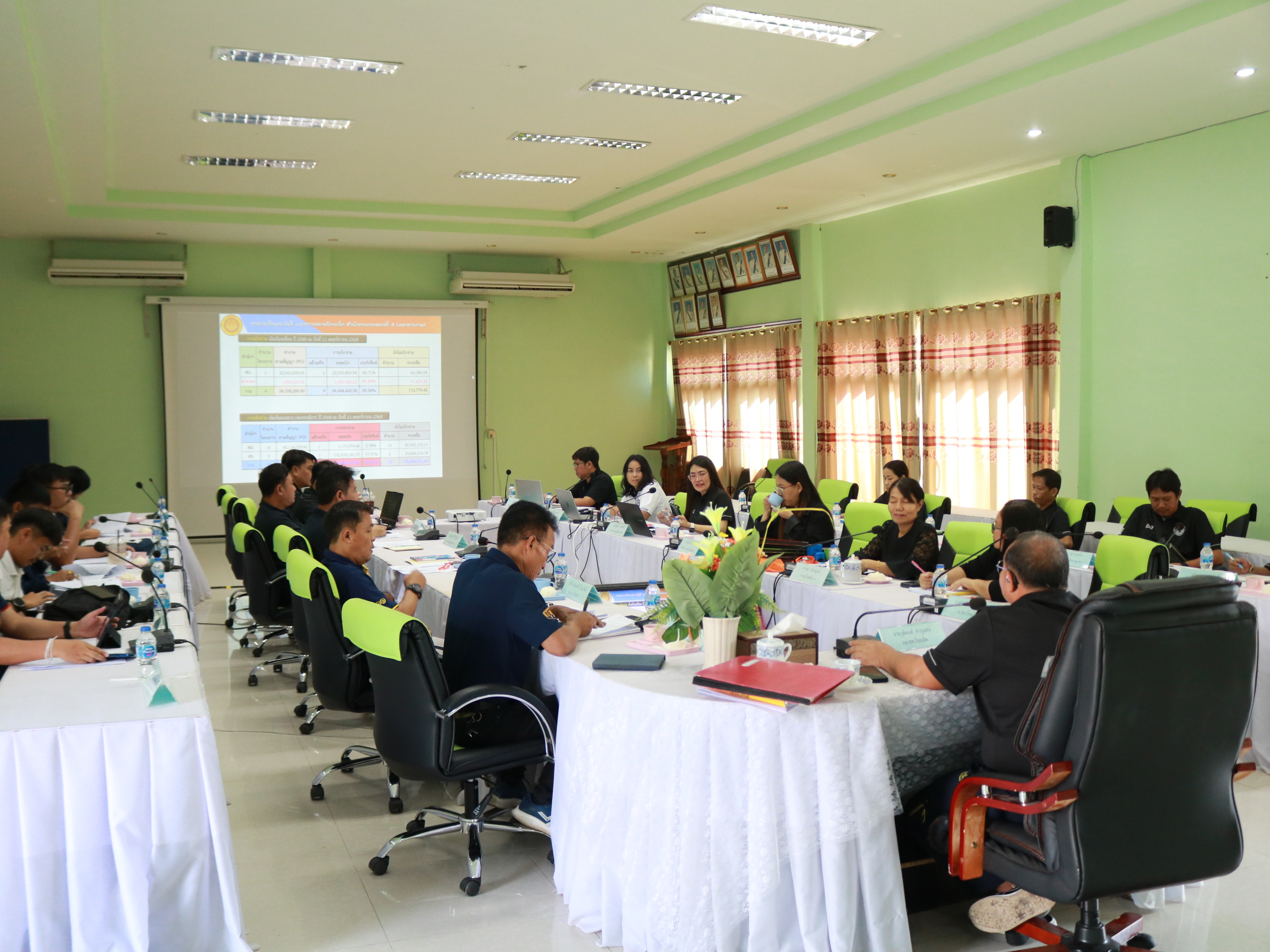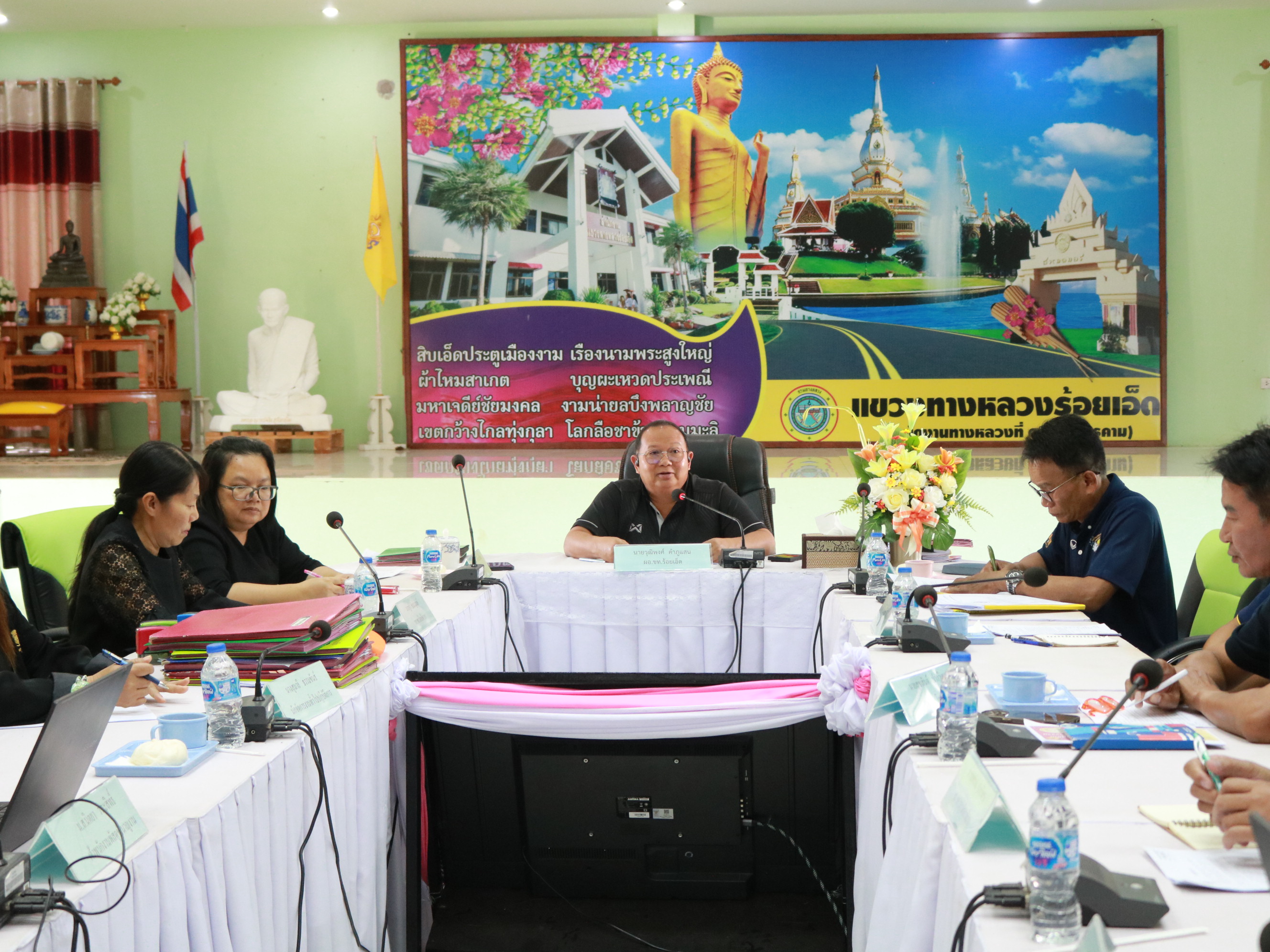 นายวุฒิพงศ์ คำภูแสน ผู้อำนวยการแขวงทางหลวงร้อยเอ็ด พร้อมด้วย นายสถิต คำพิชิต รองผู้อำนวยการแขวงทางหลวงร้อยเอ็ด ฝ่ายปฏิบัติการ ,นางสาวศิวพร เหมือนสีเลา รองผู้อำนวยการแขวงทางหลวงร้อยเอ็ด ฝ่ายวิศวกรรม ,นางรฐา ชำนาญยงค์ รองผู้อำนวยการแขวงทางหลวงร้อยเอ็ด ฝ่ายบริหาร และคณะเจ้าหน้าที่แขวงทางหลวงร้อยเอ็ด ได้ร่วมประชุมประจำเดือนพฤศจิกายน 2568 เพื่อสรุปผลการเบิกจ่ายเงินกัน งบประมาณปี 2568 ,ติดตามการจัดซื้อจัดจ้าง พรบ. 2569 และสรุปผลการดำเนินงาน ปัญหาและอุปสรรคในการดำเนินงาน ณ ห้องประชุมจุลละโพธิ แขวงทางหลวงร้อยเอ็ด