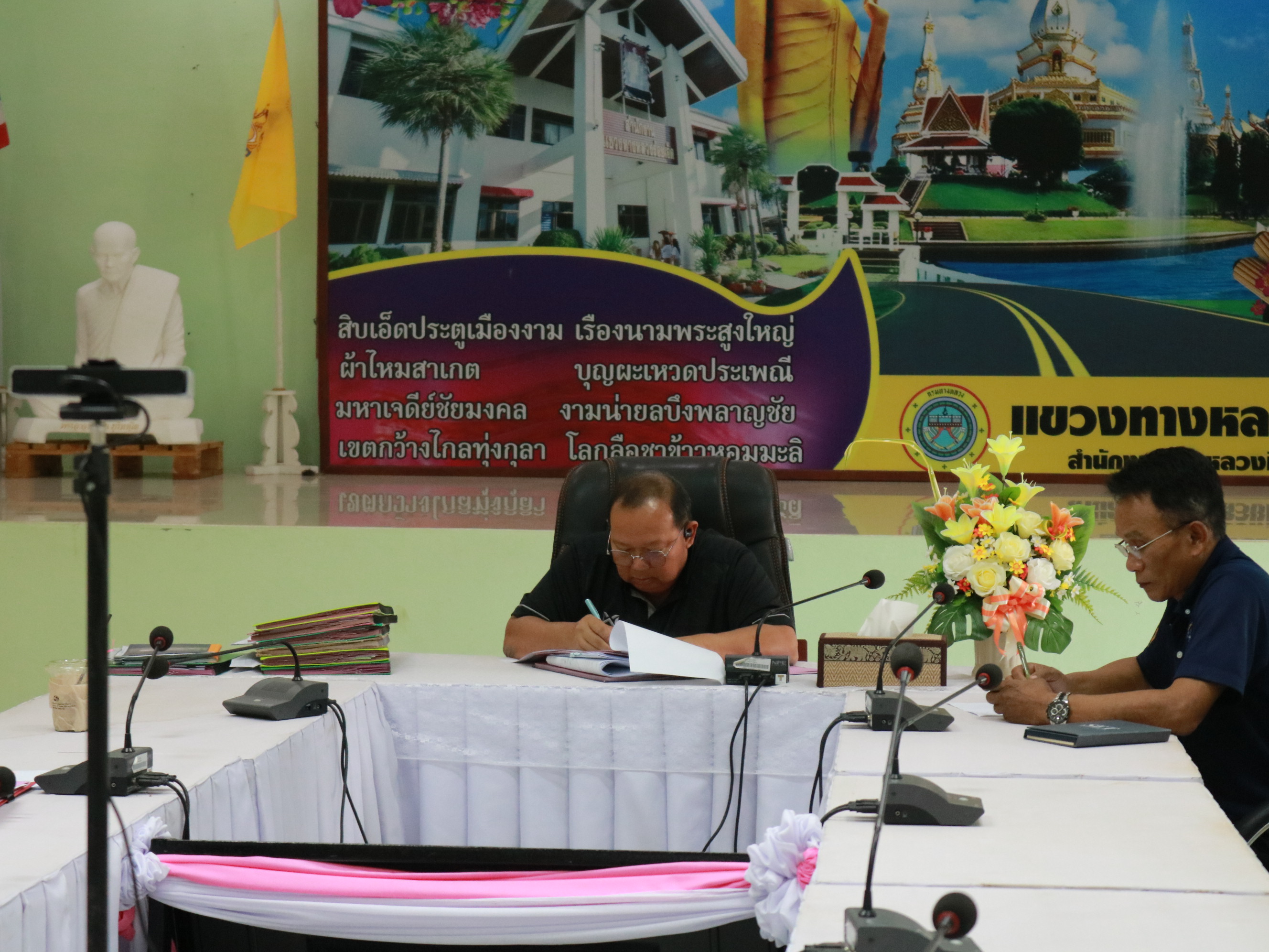 นายวุฒิพงศ์ คำภูแสน ผู้อำนวยการแขวงทางหลวงร้อยเอ็ด พร้อมด้วย รองผู้อำนวยการแขวงทางหลวงร้อยเอ็ด และเจ้าหน้าที่แขวงทางหลวงร้อยเอ็ด เข้าร่วมประชุมติดตามงบกลาง ปีงบประมาณ พ.ศ.2568 ,งบฟื้นฟู/งบกระตุ้นเศรษฐกิจ และงานปีเดียว ปีงบประมาณ พ.ศ.2569 โดยมี นายเสริมศักดิ์ นัยนันท์ รองอธิบดีฝ่ายบำรุงทาง กรมทางหลวง เป็นประธานในการประชุม ผ่านสื่ออิเล็กทรอนิกส์แอปพลิเคชั่น Zoom Cloud Meeting ณ ห้องประชุมจุลละโพธิ แขวงทางหลวงร้อยเอ็ด