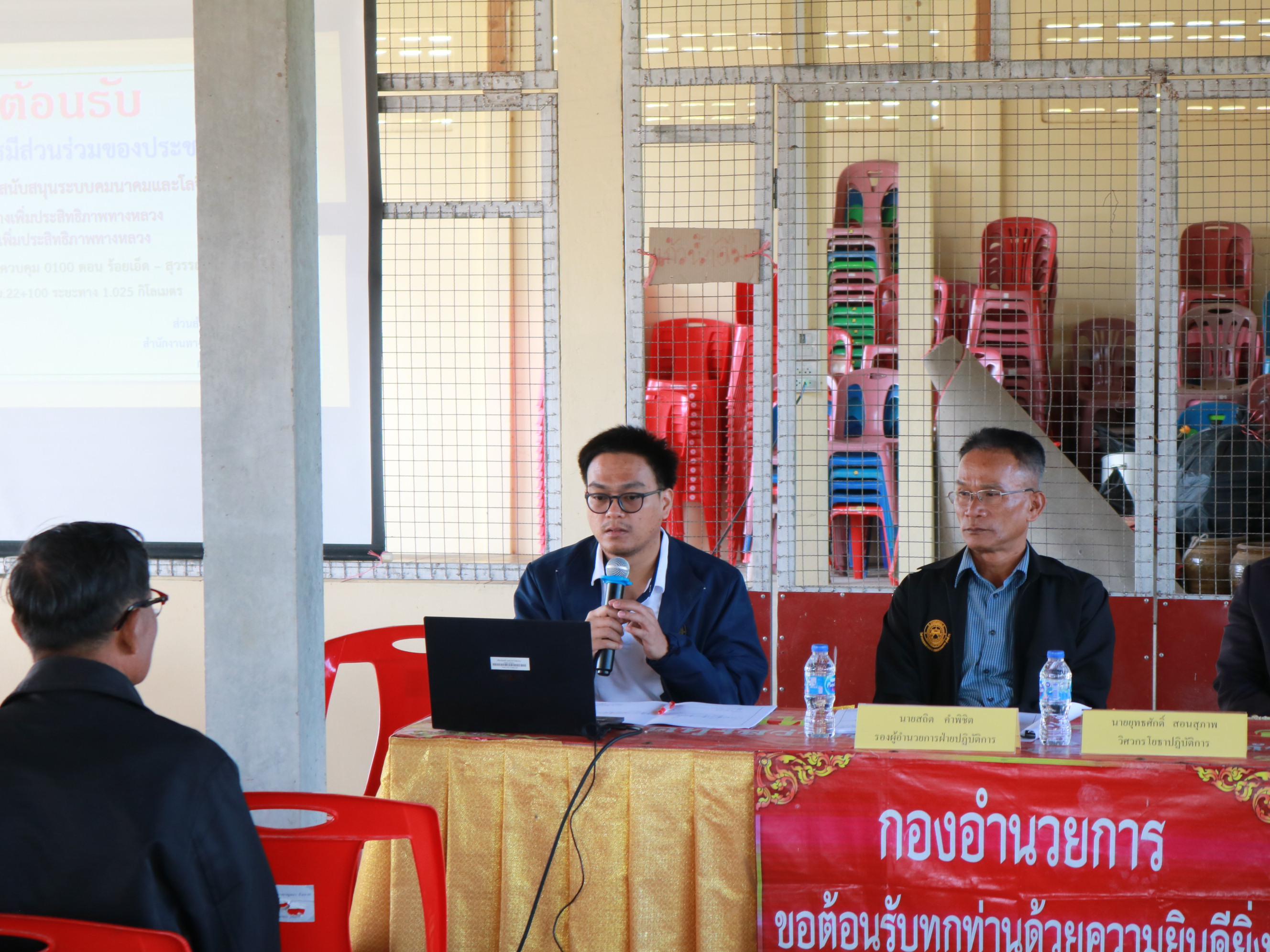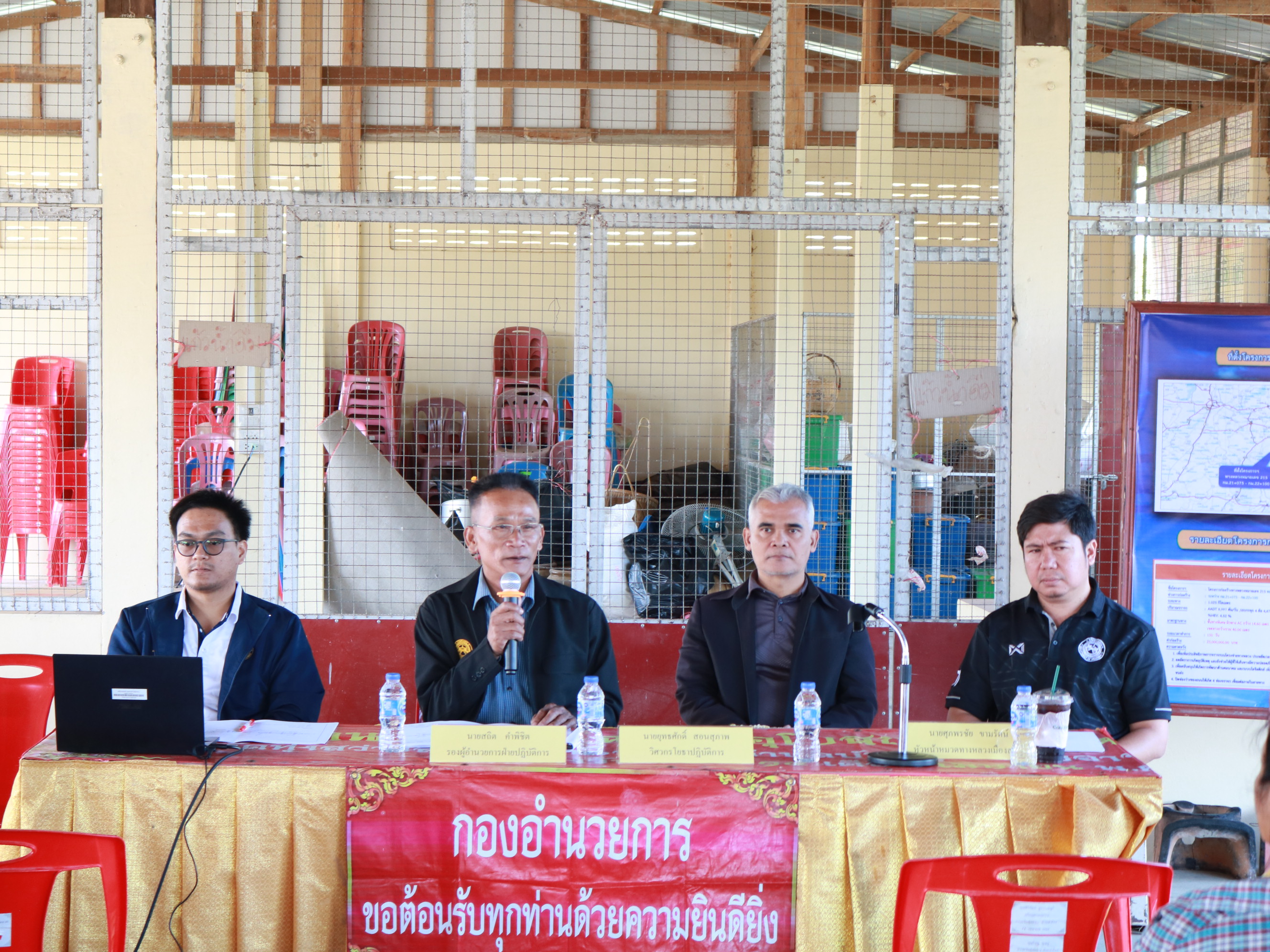 “ร่วมประชุมการมีส่วนร่วมของประชาชน เพื่อรับฟังความคิดเห็นของทุกภาคส่วน ในการดำเนินงานก่อสร้าง โครงการก่อสร้างโครงข่ายทางหลวงแผ่นดิน กิจกรรมก่อสร้างเพิ่มช่องจราจร ทางหลวงหมายเลข 215 ตอน ร้อยเอ็ด - สุวรรณภูมิ ระหว่าง กม.21+075 - กม.22+100”