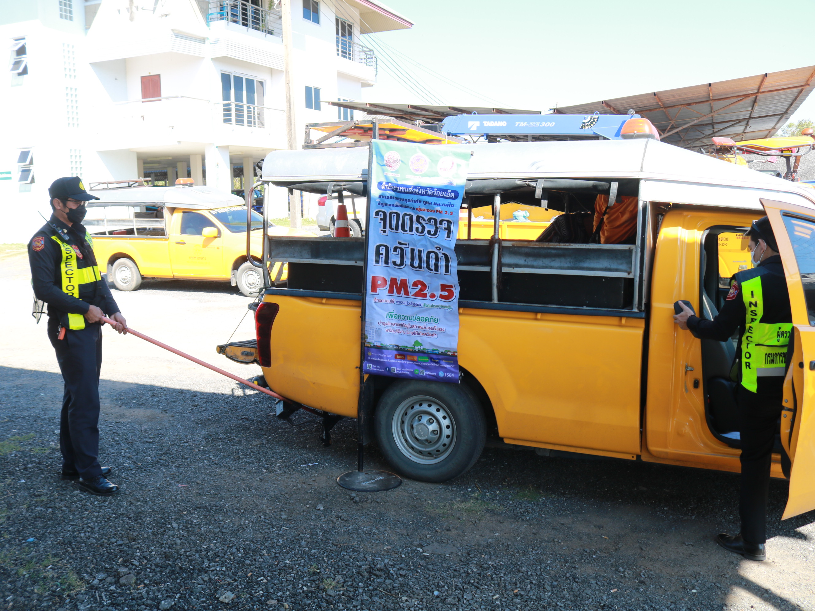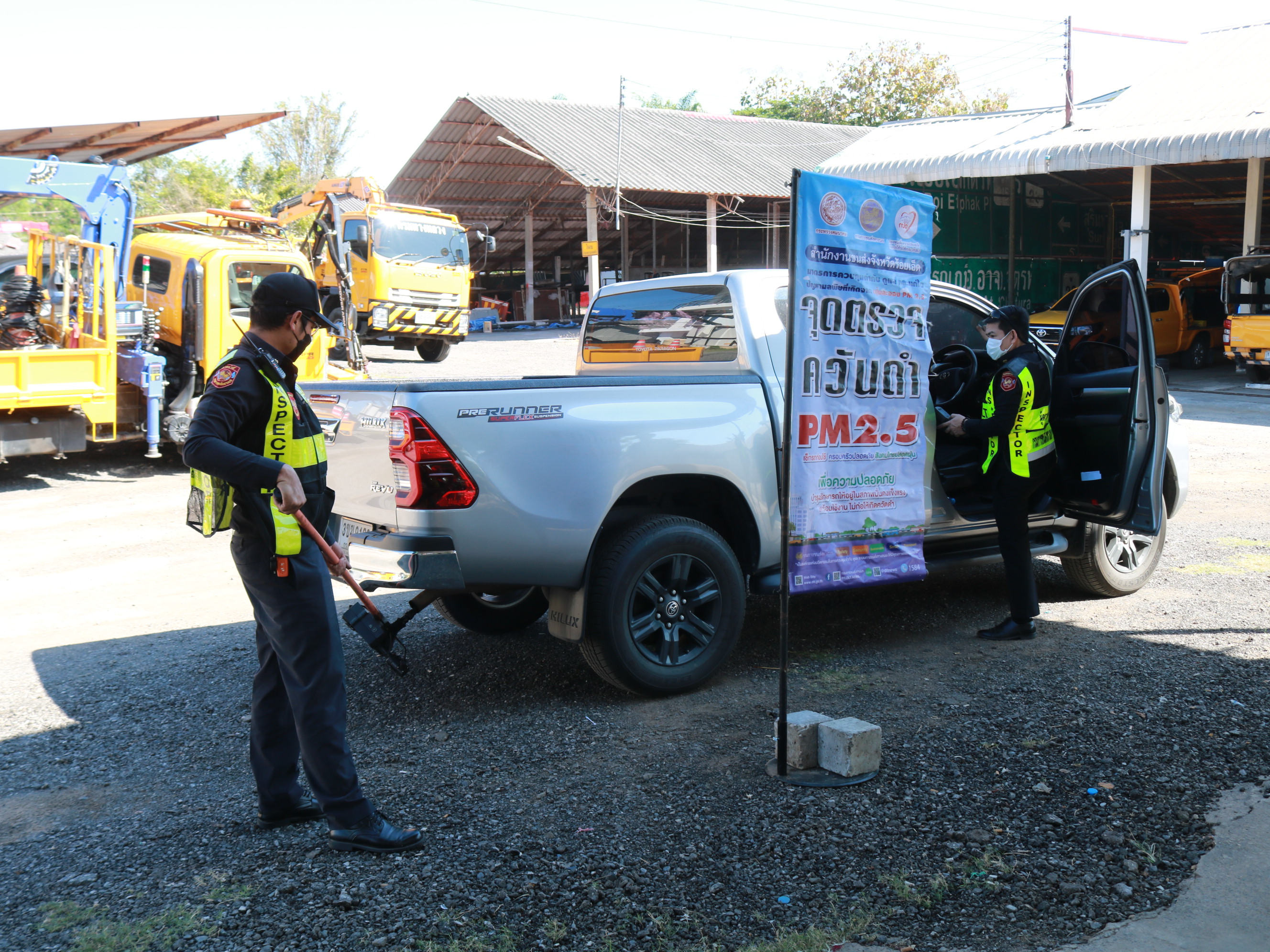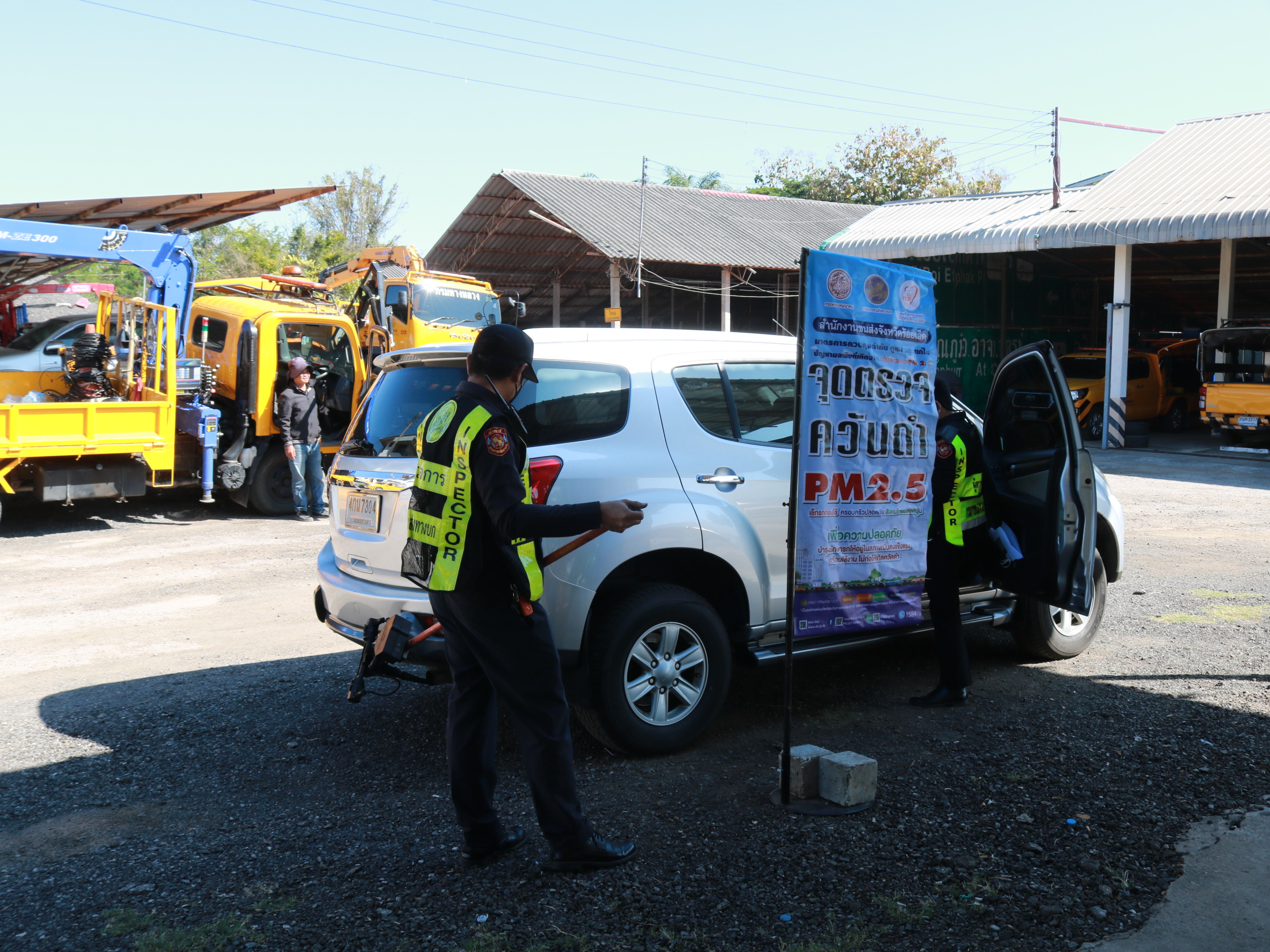 "ร่วมตรวจวัดควันดำของเครื่องจักรยานพาหนะของแขวงทางหลวงร้อยเอ็ด เพื่อป้องกันและแก้ไขปัญหาฝุ่นละอองขนาดเล็ก PM 2.5"