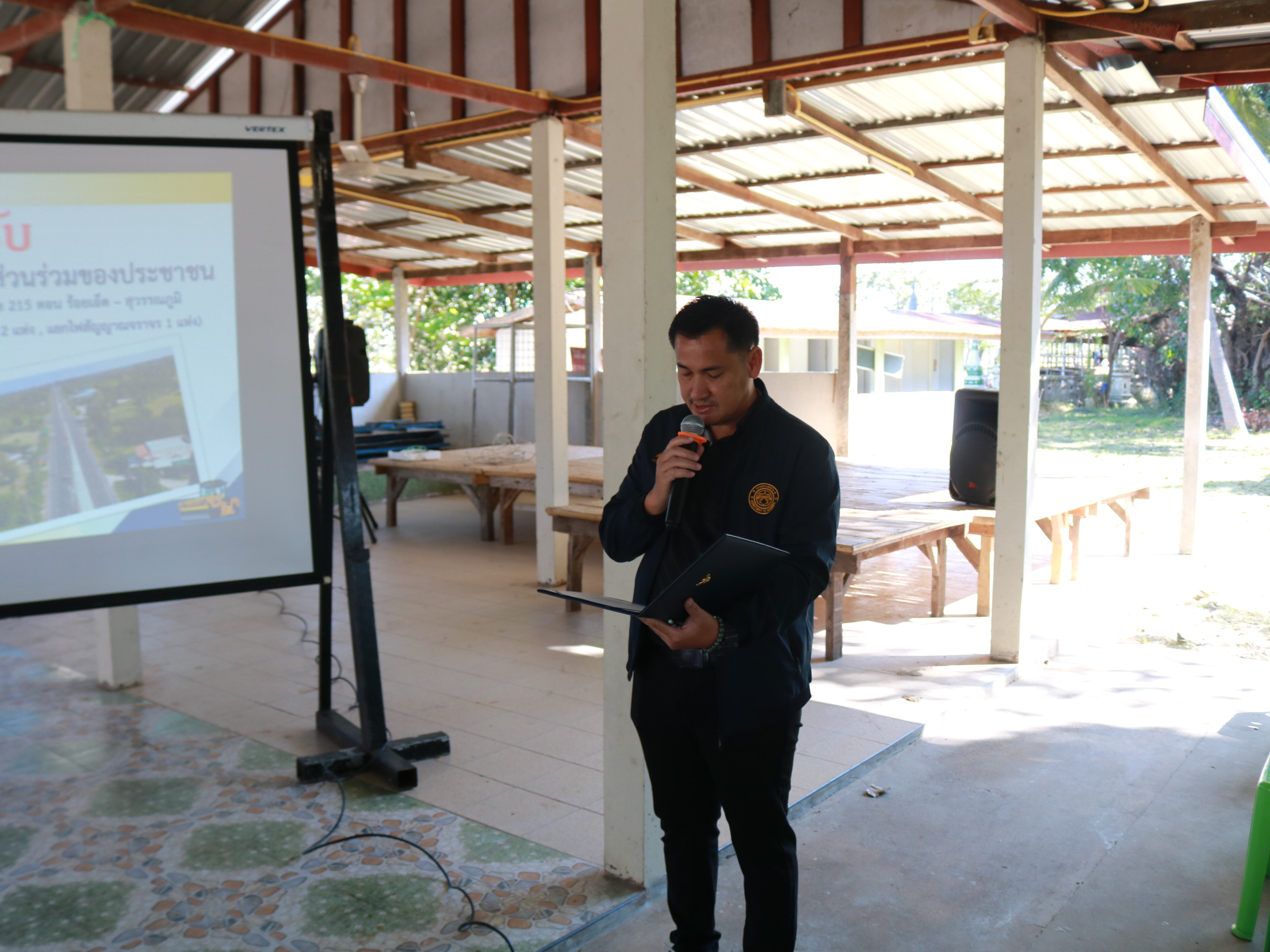 “ร่วมประชุมการมีส่วนร่วมของประชาชน เพื่อรับฟังความคิดเห็นของทุกภาคส่วน ในการดำเนินงานก่อสร้าง โครงการก่อสร้างโครงข่ายทางหลวงแผ่นดิน กิจกรรมปรับปรุงการแบ่งทิศทางจราจรเพื่อความปลอดภัย ทล.215 ตอน ร้อยเอ็ด - สุวรรณภูมิ ระหว่าง กม.5+000 - กม.15+000”