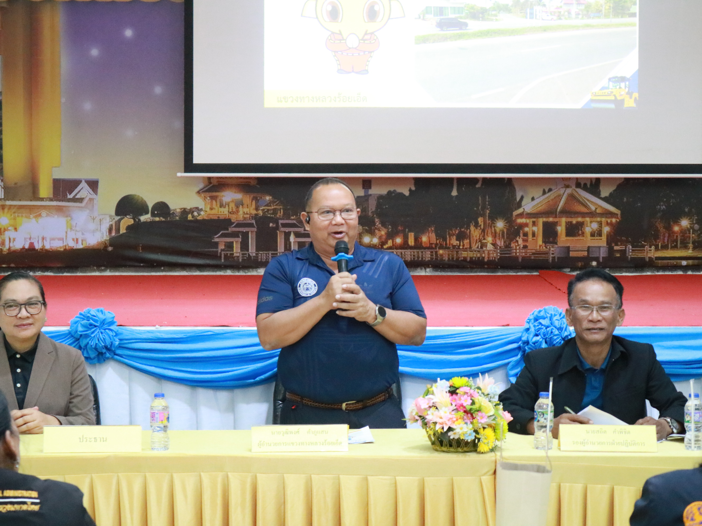 “ร่วมประชุมการมีส่วนร่วมของประชาชน เพื่อรับฟังความคิดเห็นของทุกภาคส่วน ในการดำเนินงานก่อสร้าง โครงการก่อสร้างโครงข่ายทางหลวงแผ่นดิน กิจกรรมปรับปรุงความปลอดภัยบริเวณทางแยกอันตรายโดยกายภาพ ในทางหลวงหมายเลข 23 ตอน ร้อยเอ็ด - เสลภูมิ ที่ กม.133+843”
