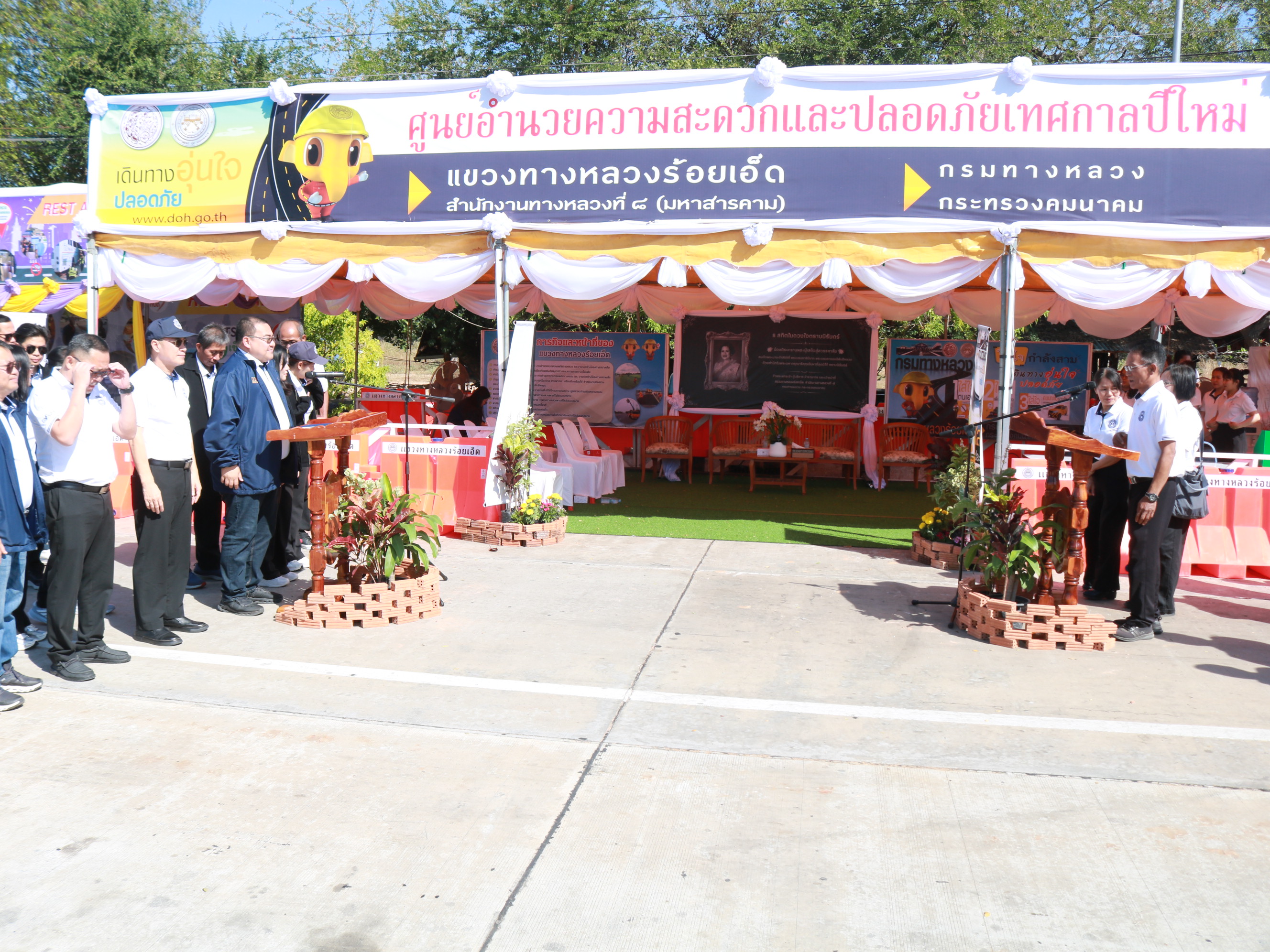 นายสถิต คำพิชิต รองผู้อำนวยแขวงทางหลวงร้อยเอ็ด ฝ่ายปฏิบัติการ ,นางสาวศิวพร เหมือนสีเลา รองผู้อำนวยการแขวงทางหลวงร้อยเอ็ด ฝ่ายวิศวกรรม ,นางรฐา ชำนาญยงค์ รองผู้อำนวยการแขวงทางหลวงร้อยเอ็ด ฝ่ายบริหาร ,เจ้าหน้าที่ตำรวจทางหลวง 1 กองกำกับการ 4 และคณะเจ้าหน้าที่แขวงทางหลวงร้อยเอ็ด เข้าร่วมพิธีเปิดศูนย์อำนวยความสะดวกและปลอดภัย และจุดให้บริการทั่วไทยในช่วงเทศกาลปีใหม่ 2569 (ระหว่างวันที่ 26 ธันวาคม 2568 - วันที่ 5 มกราคม 2569) โดยมี นายราชศักดิ์ สุทธินวล ผู้อำนวยการสำนักงานทางหลวงที่ 8 เป็นประธานในพิธีเปิดศูนย์ฯ พร้อมคณะฯ ณ บริเวณจุดพักรถบ้านดงยาง ในทางหลวงหมายเลข 23 ตอน ห้วยแอ่ง - ร้อยเอ็ด ที่ กม.103+750 ด้านซ้ายทาง
